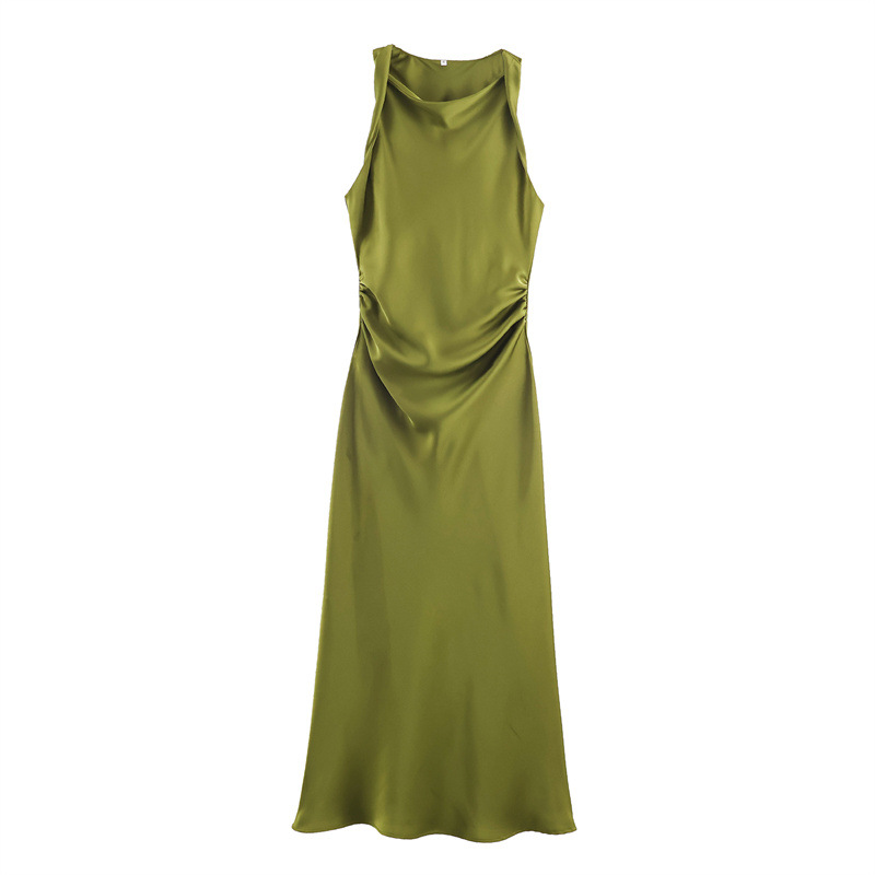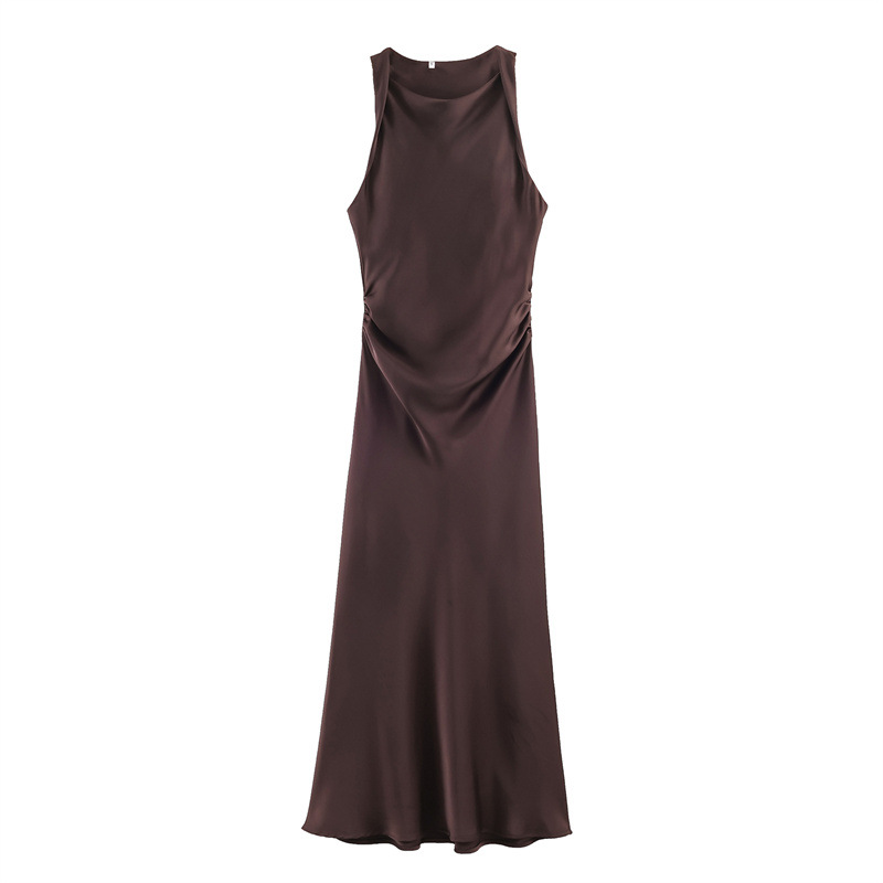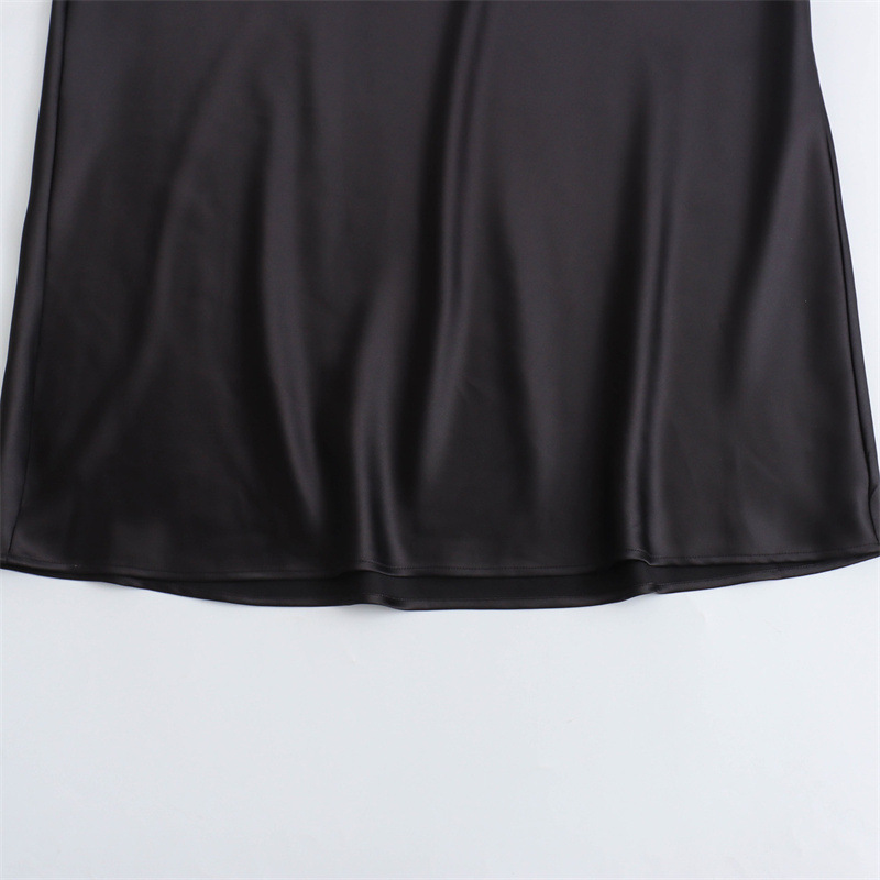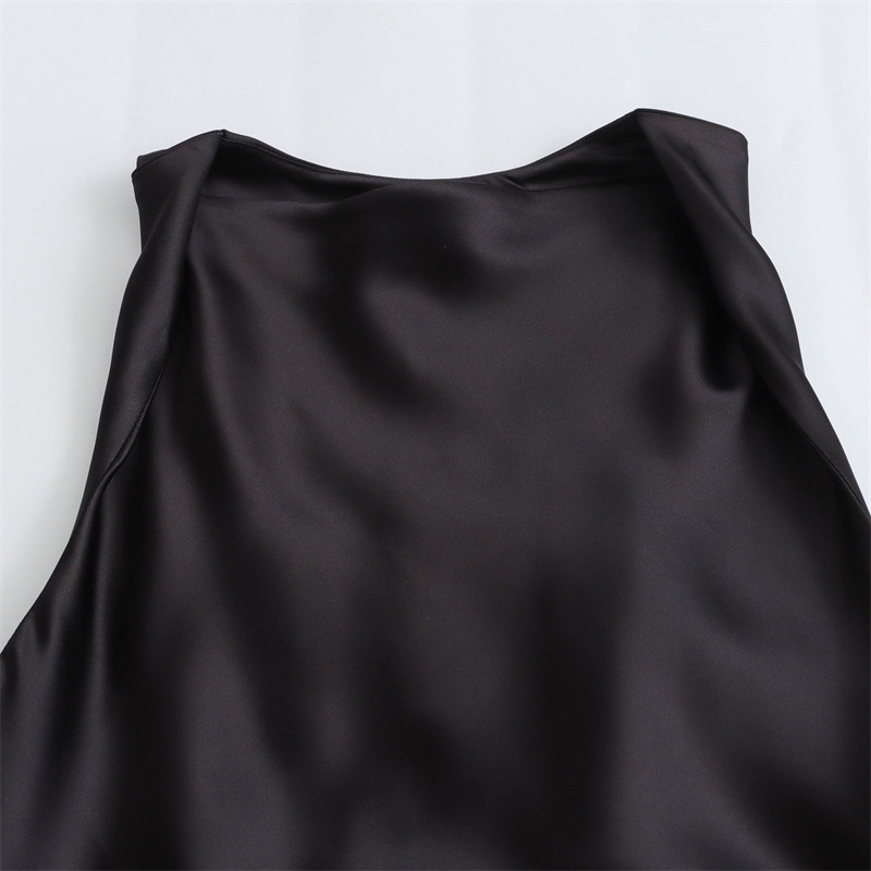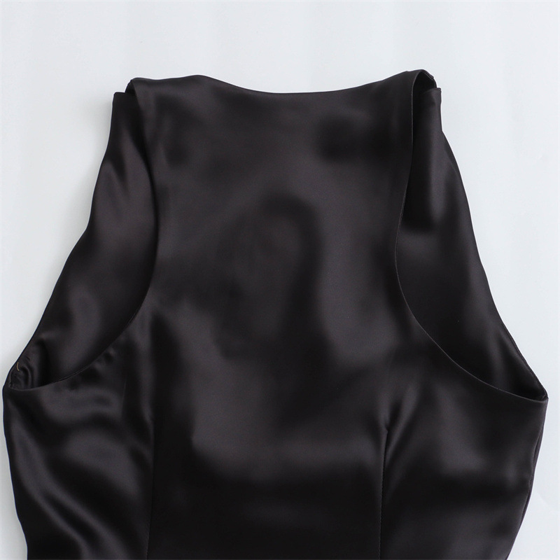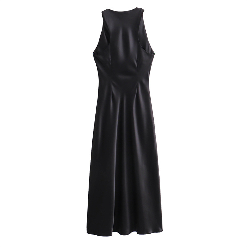대외 무역 2024 봄 새로운 유럽과 미국의 패션 라운드 넥 민소매 블랙 실크 새틴 질감 원피스 여성 8372090