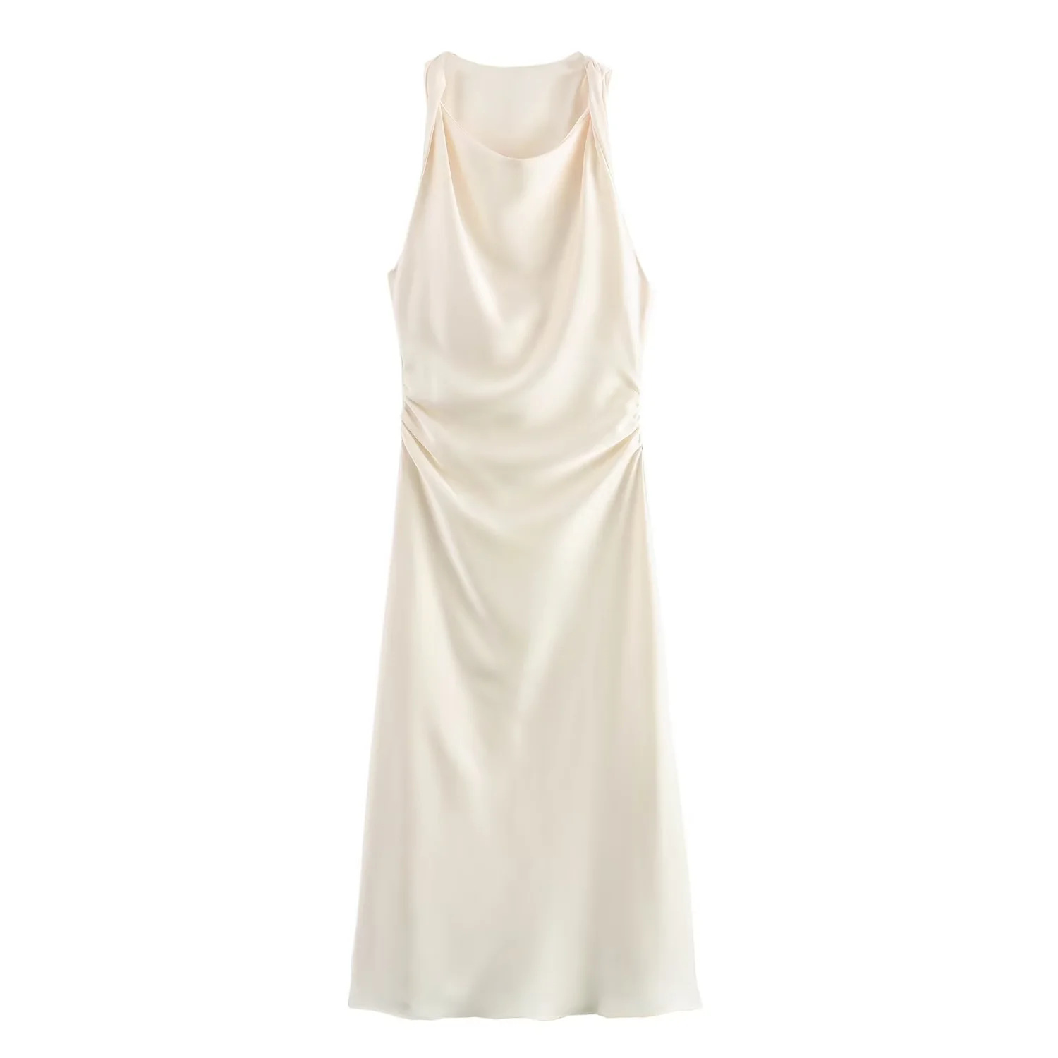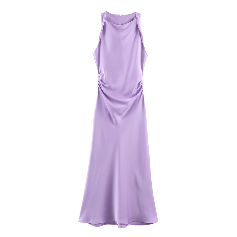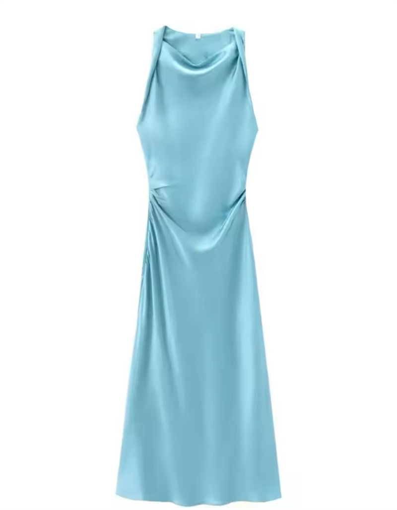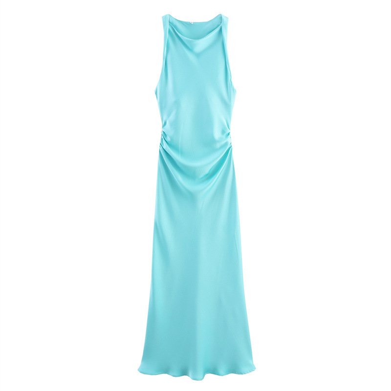 대외 무역 2024 봄 새로운 유럽과 미국의 패션 라운드 넥 민소매 블랙 실크 새틴 질감 원피스 여성 8372090