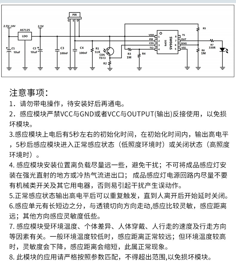 • 2mA 전원 공급 장치/감지 거리 6-8m/지연 30s