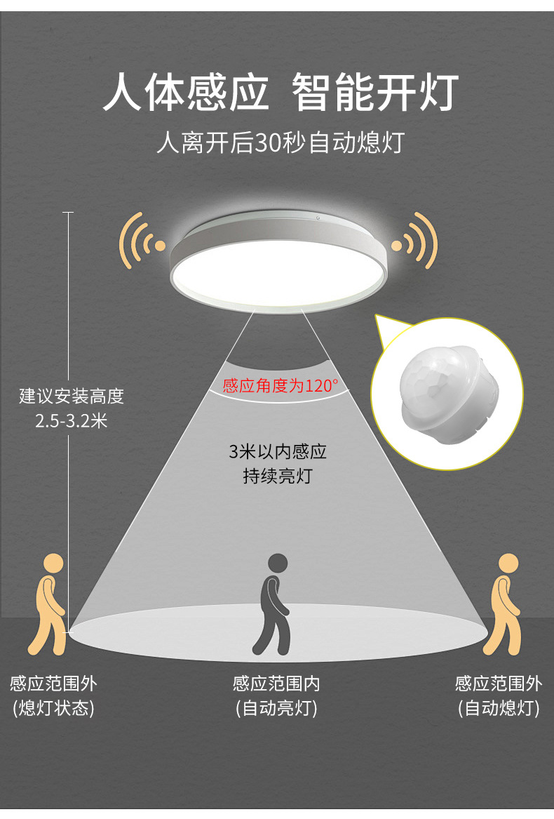 마이크로파 레이더 감지 적외선 인체 모듈 램프 스마트 홈 센서 LED 조명 스마트 센서 램프스토어 가기