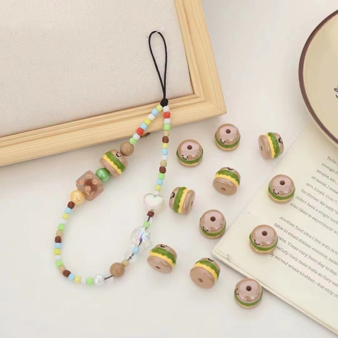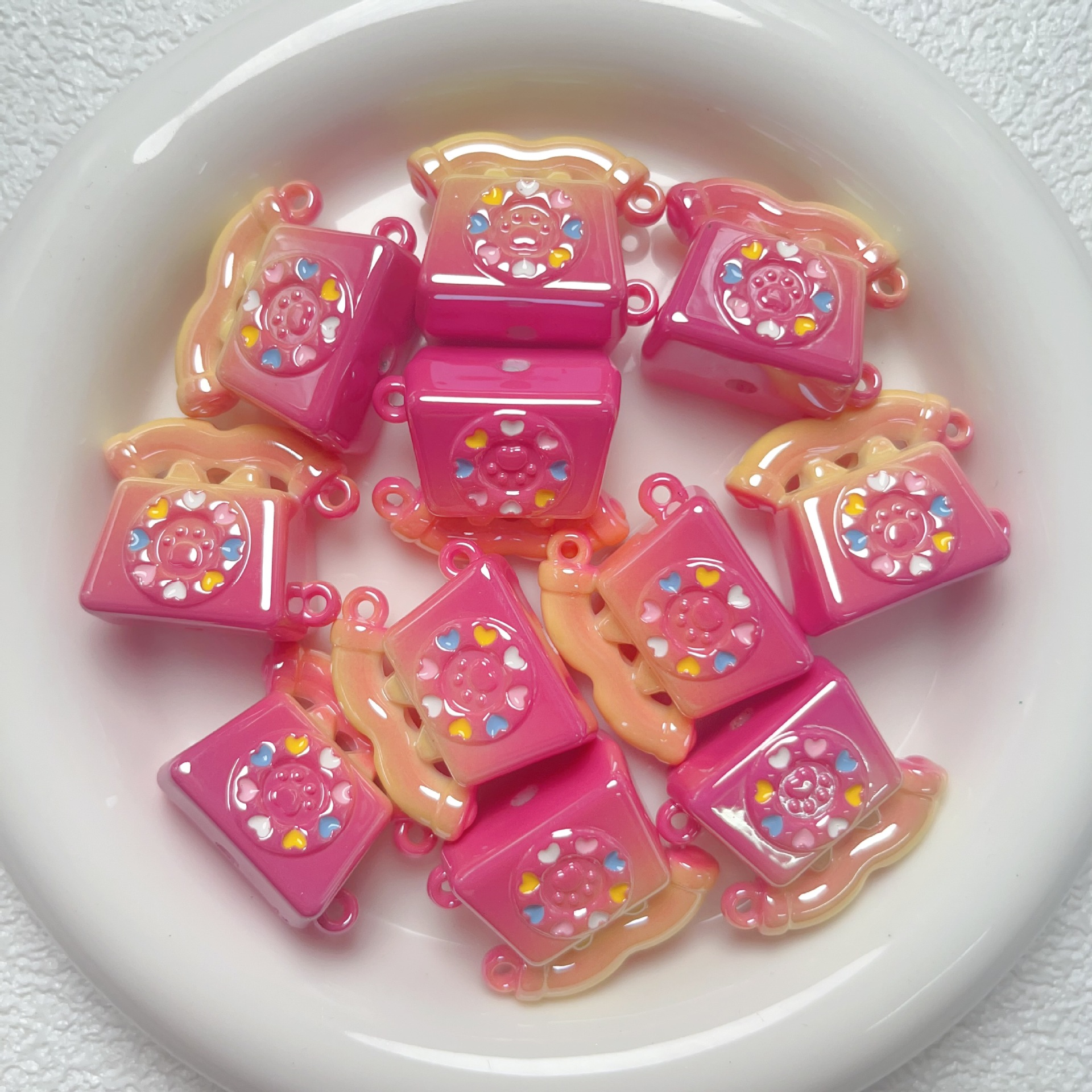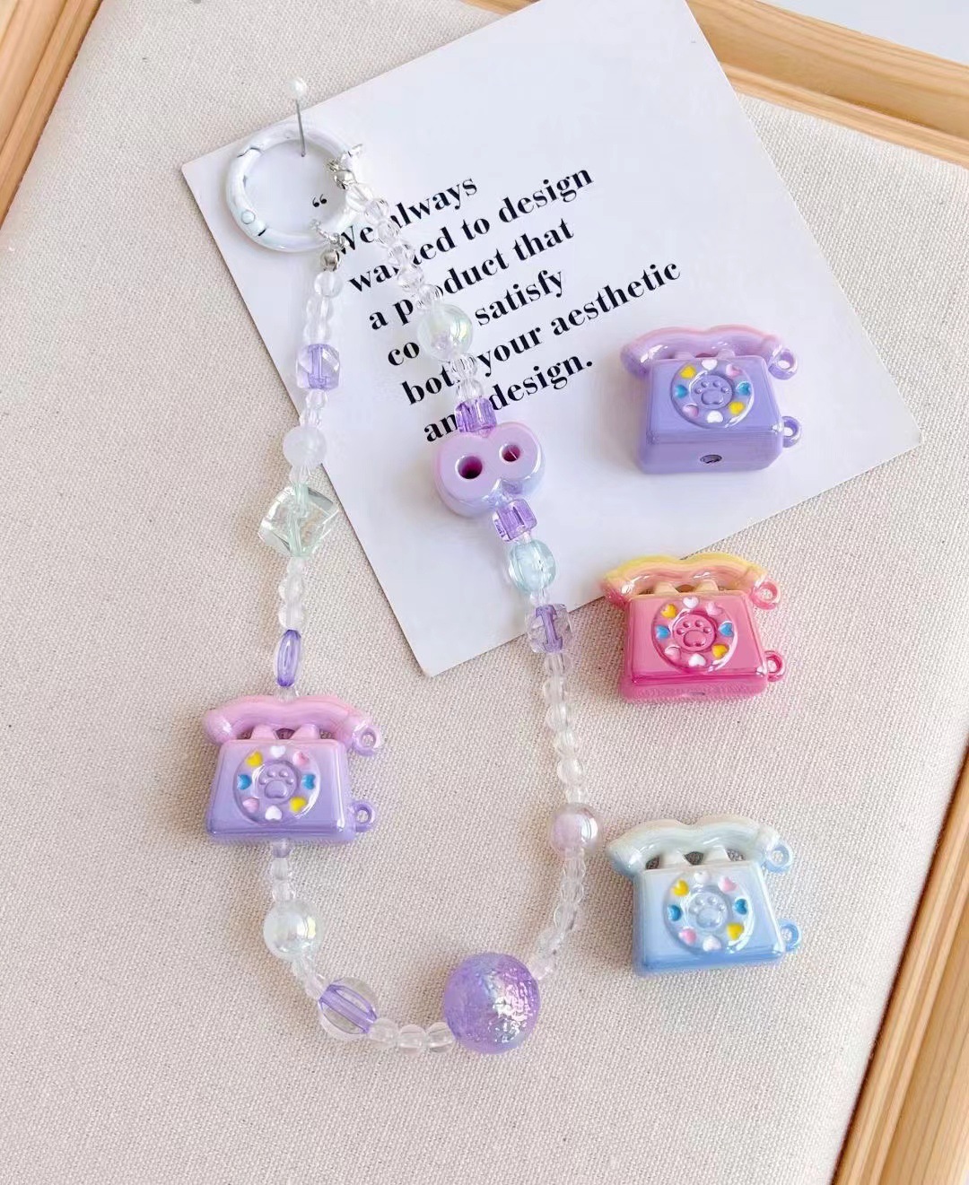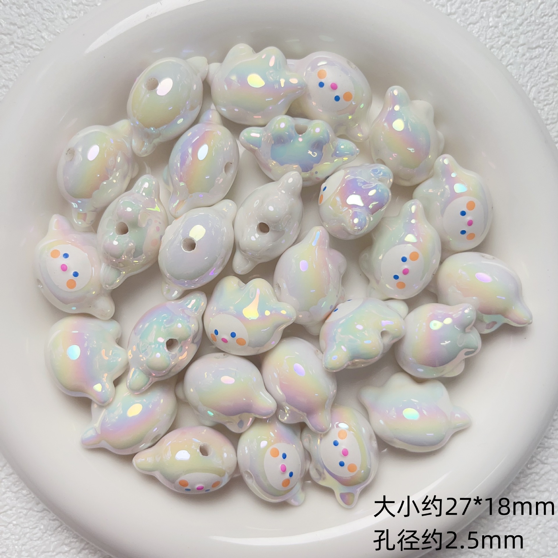 고품질 uv 컬러 도금 귀여운 만화 구슬 손으로 그린 바닥 배아 스트레이트 홀 비즈 diy 휴대 전화 체인 소재 보석 액세서리