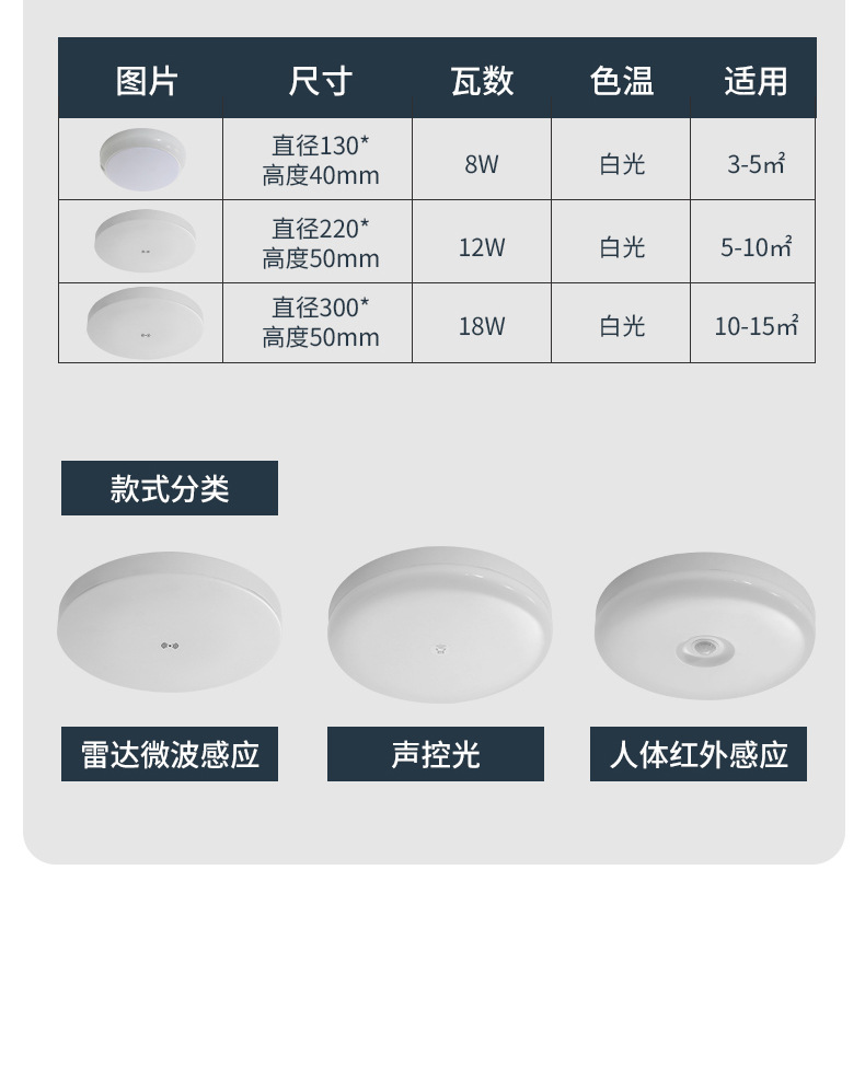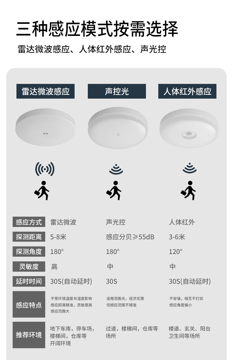 새로운 간단한 LED 인체 적외선 소리 및 조명 제어 레이더 센서 천장 조명은 사람들이 올 때 켜지고 사람들이 떠날 때 꺼집니다.스토어 가기