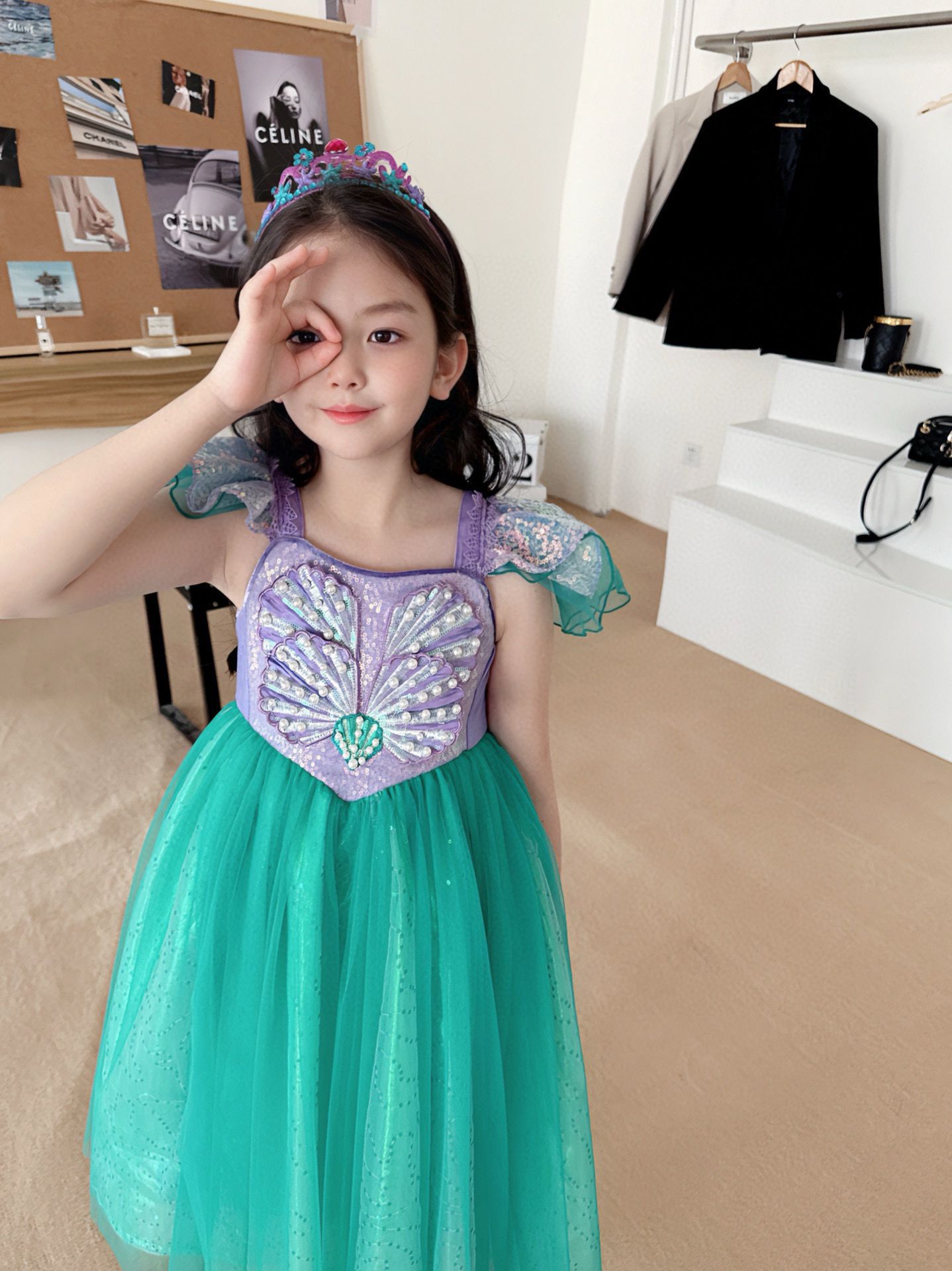25 여아 환상적인 인어공주 드레스 61 자수 공주 드레스 생일 드레스 퍼프 소매 A라인 스플라이싱 스타일