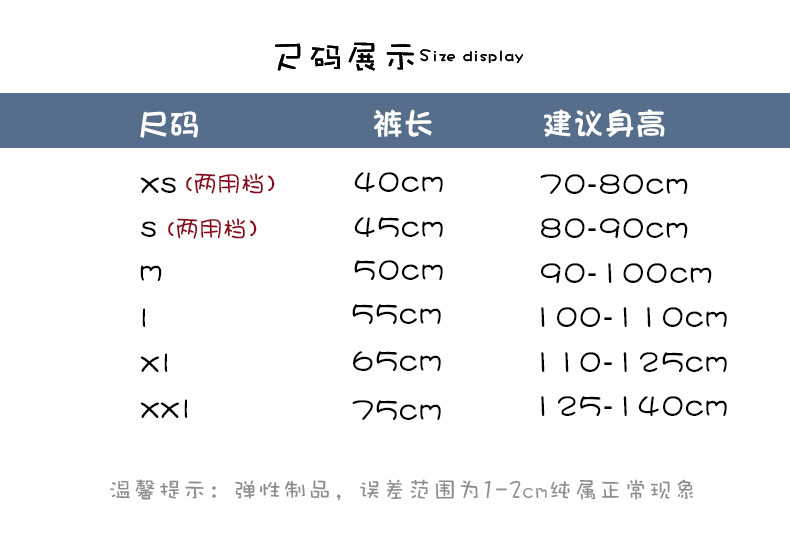 • XS 크기 (분리 가능한 가랑이) 바지 길이 40cm [권장 높이 70-80cm]]