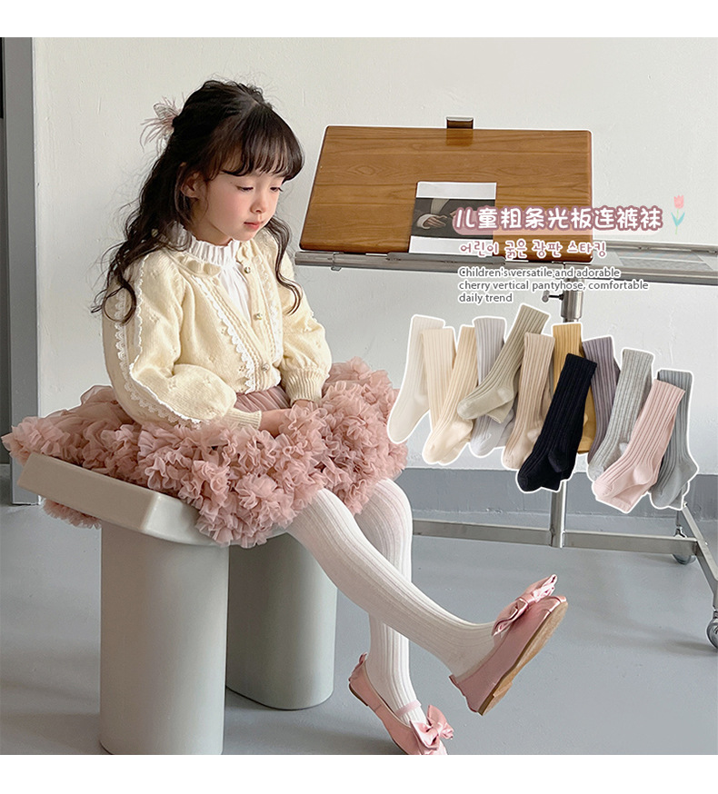 봄 소녀 팬티 스타킹 레깅스 한국식 단색 두꺼운 스트라이프 스텝 온 바지 다재다능한 소녀 팬티 스타킹 얇은스토어 가기