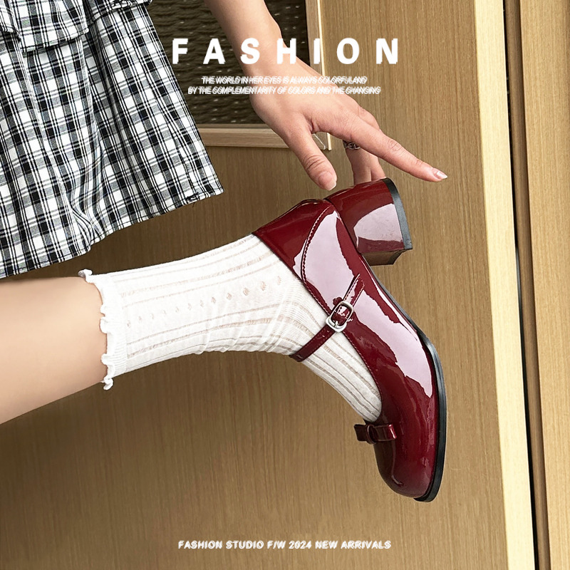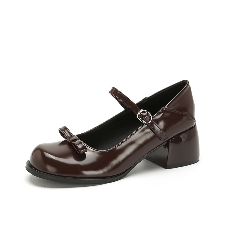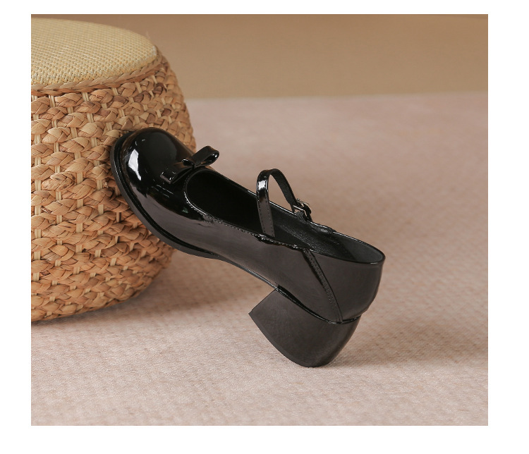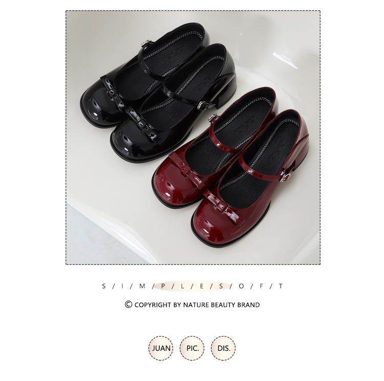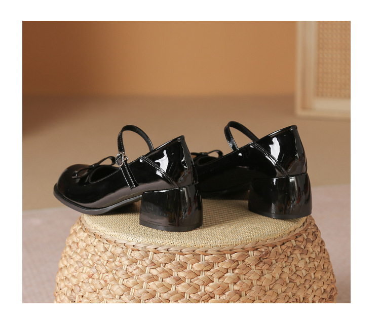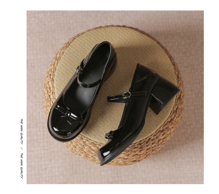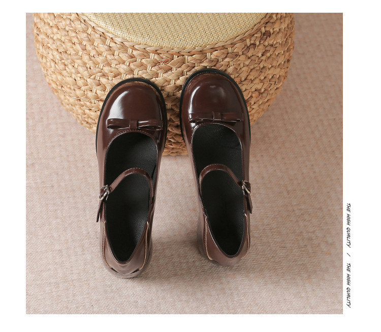 정품 가죽 봄 새로운 대학 스타일 청키 힐 메리 제인 솔리드 컬러 활 웨딩 신발 JK 싱글 레이어 신발 라운드 토 작은 가죽 신발스토어 가기