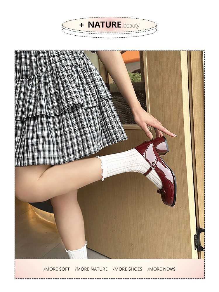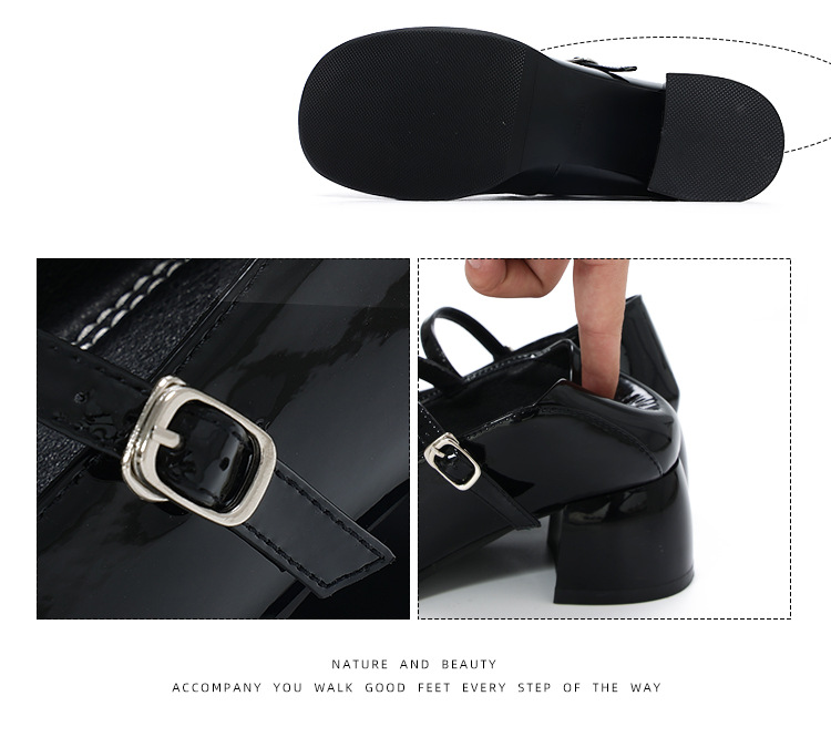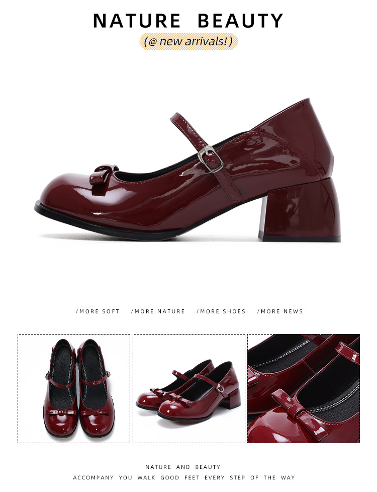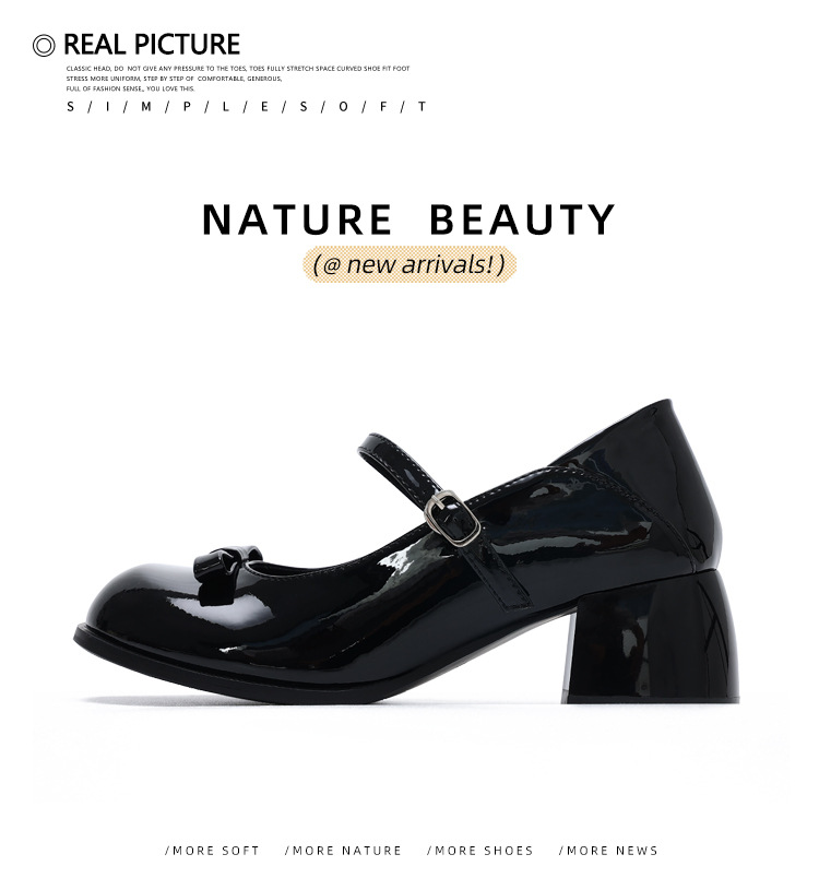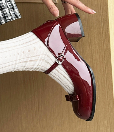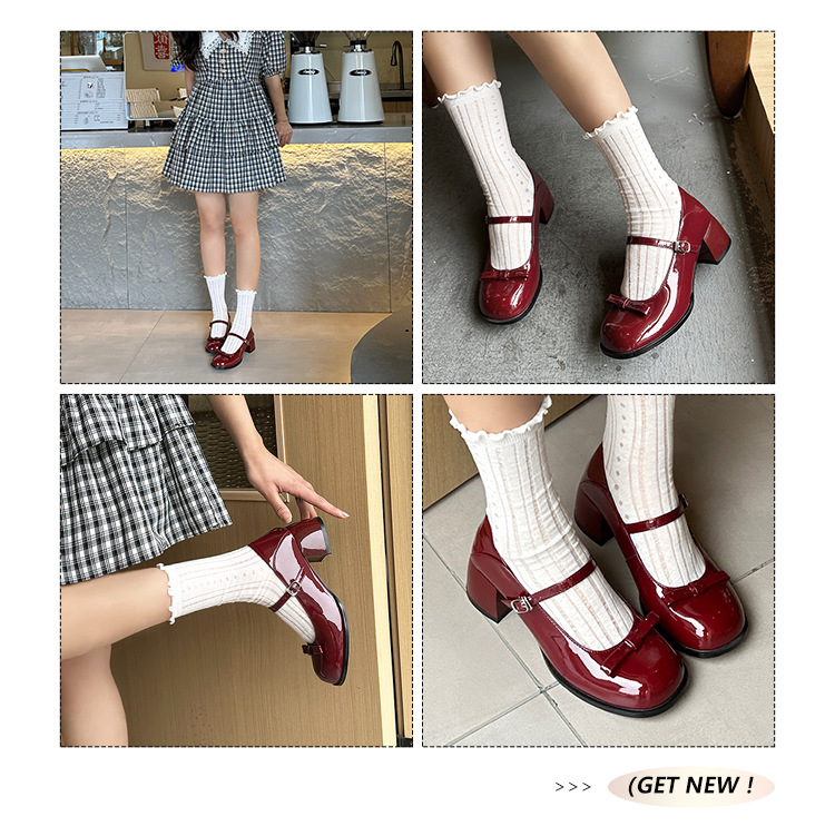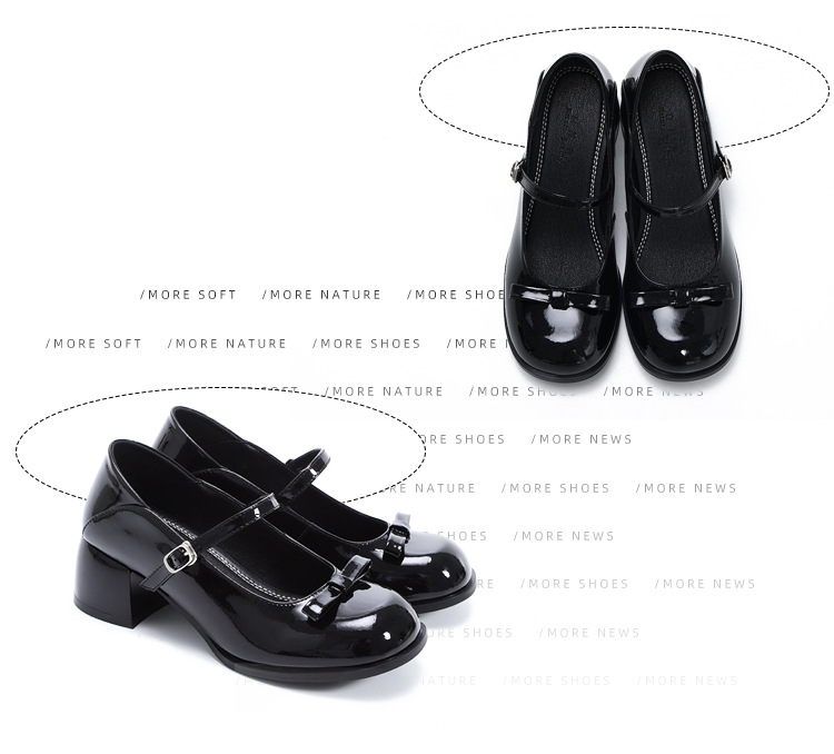정품 가죽 봄 새로운 대학 스타일 청키 힐 메리 제인 솔리드 컬러 활 웨딩 신발 JK 싱글 레이어 신발 라운드 토 작은 가죽 신발스토어 가기