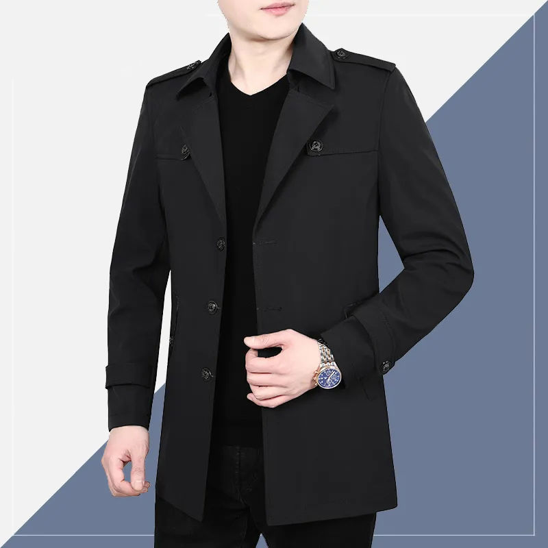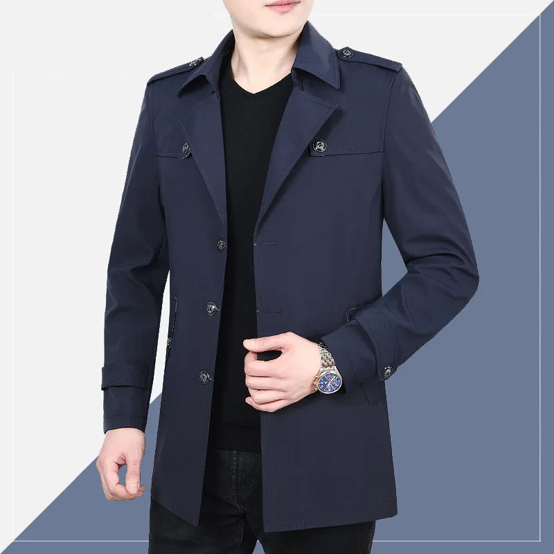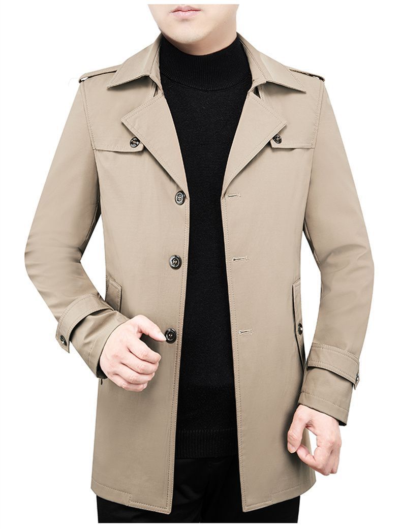 봄과 가을 트렌치 코트 남성용 세트 중장 코트 아빠는 고급 비즈니스 캐주얼 중년 코트를 입습니다.스토어 가기