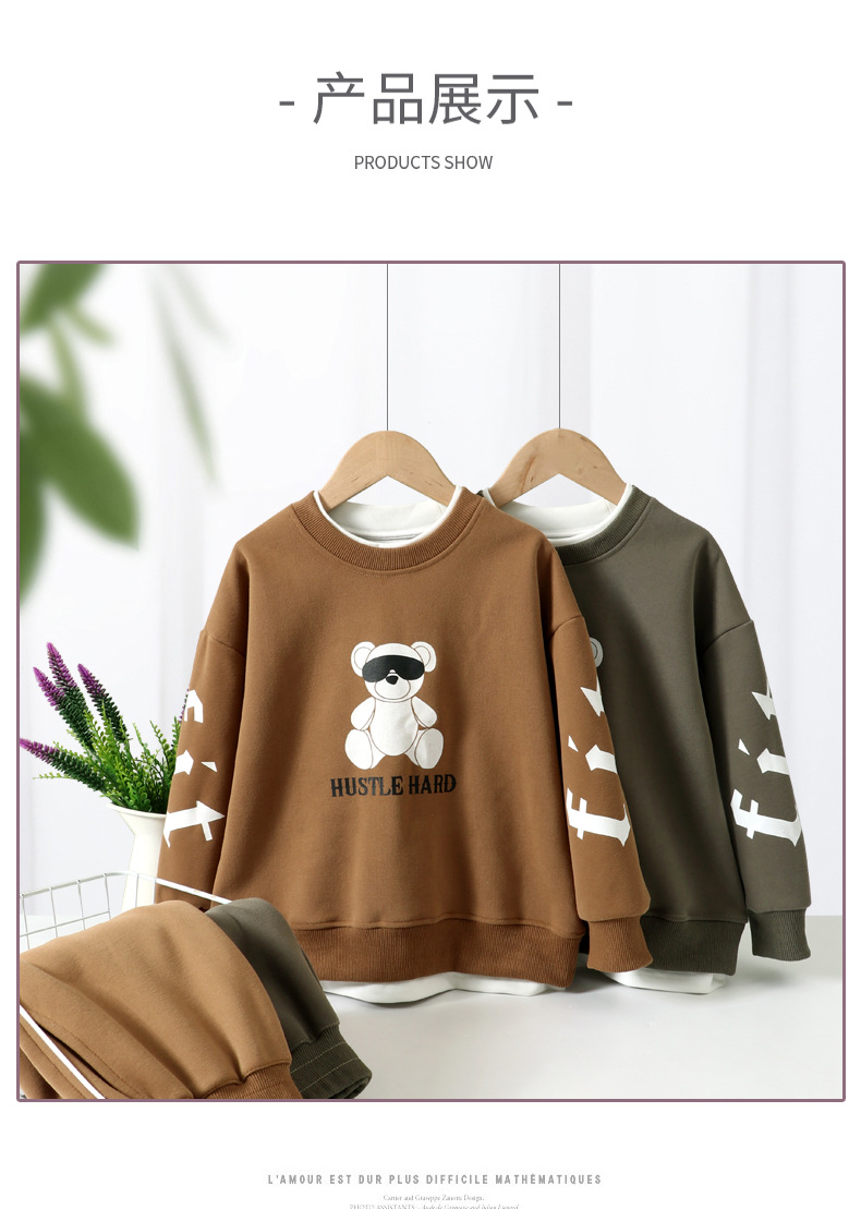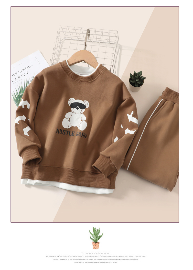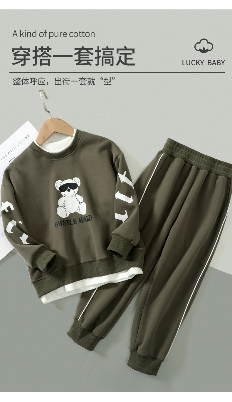 어린이 봄 세트 스웨터 스웻 팬츠 투피스 한국식 느슨한 서양식 소년 소녀 봄과 가을 탑 팬츠 뉴스토어 가기