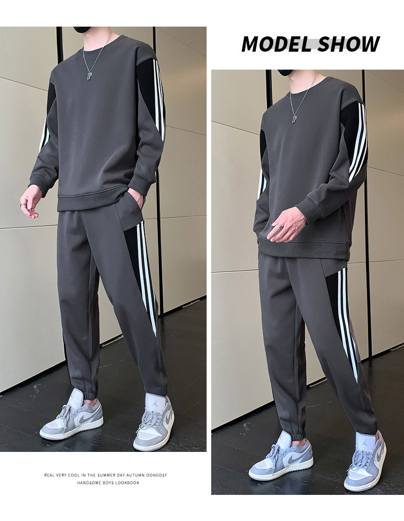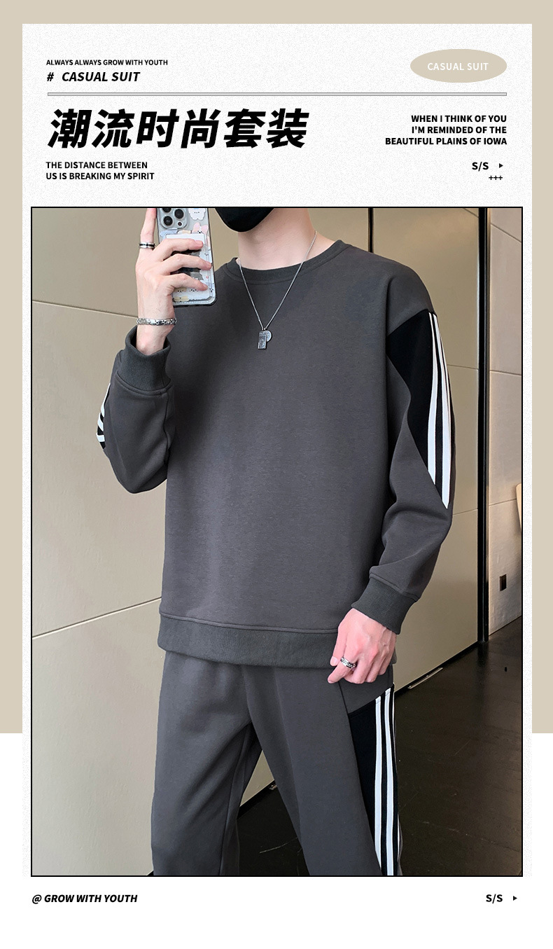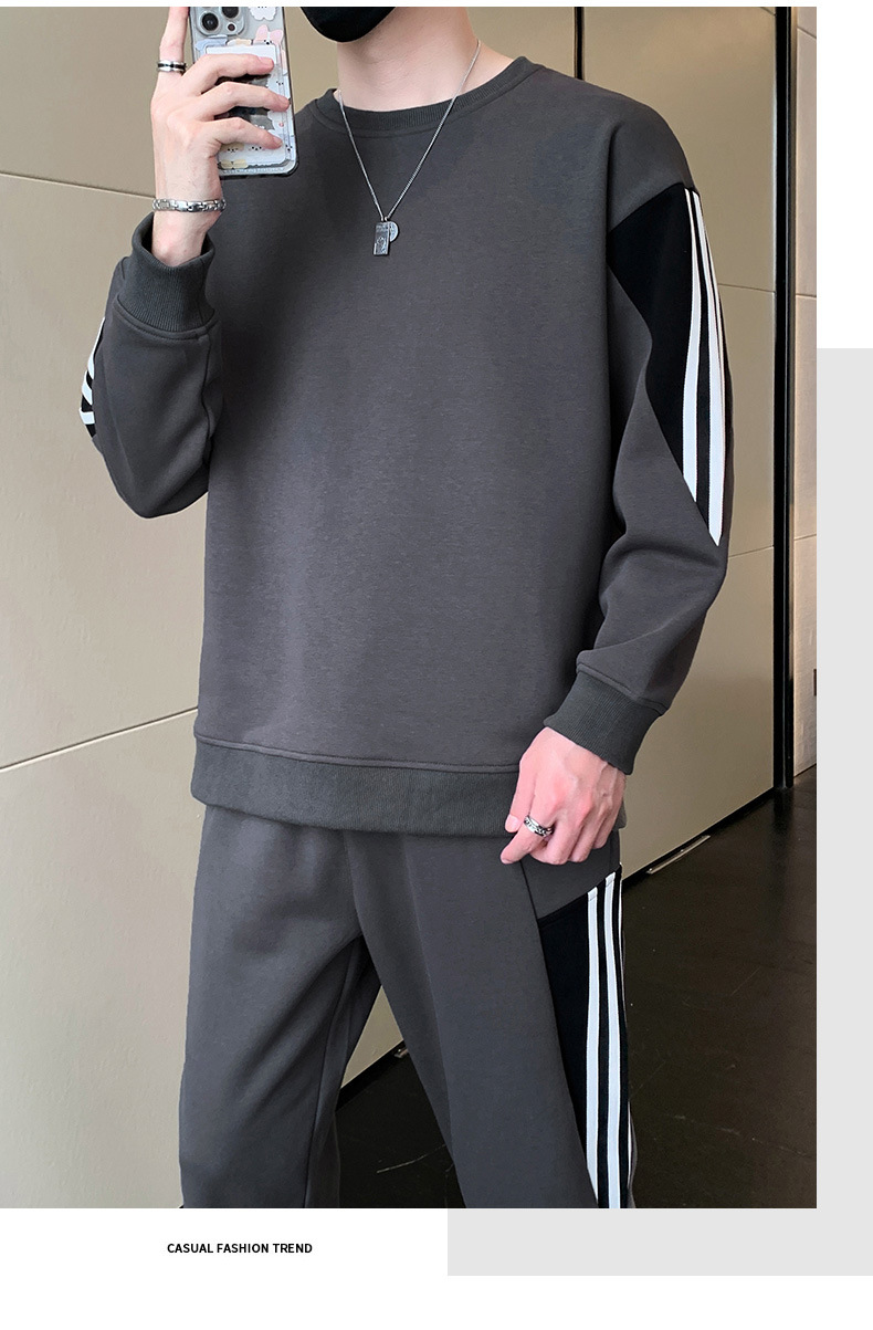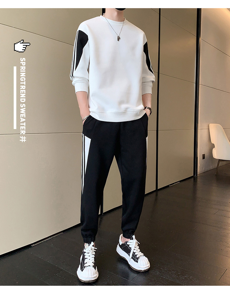 2025년 봄/가을 신상 남성 캐주얼 라운드넥 스웨트셔츠 투피스 세트, 멋진 남성복 세트스토어 가기