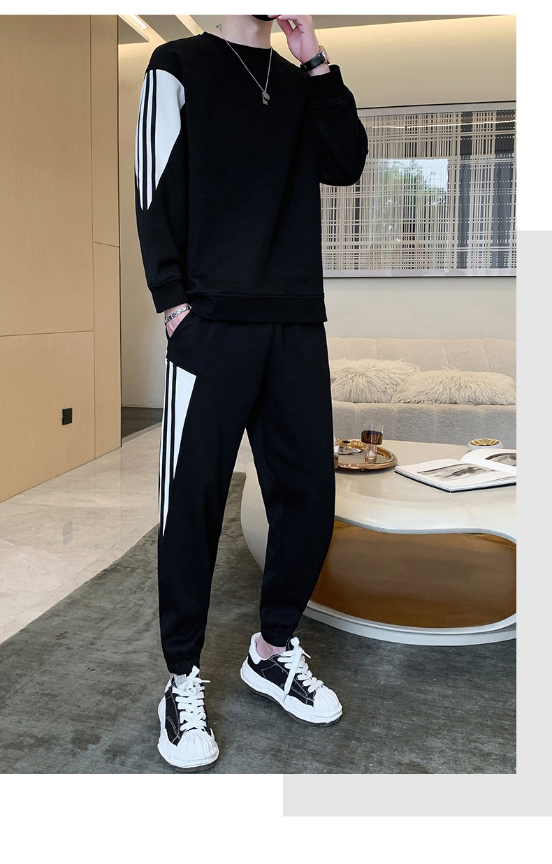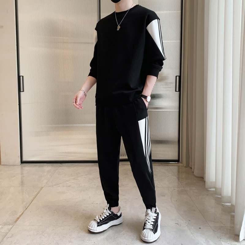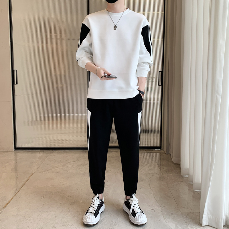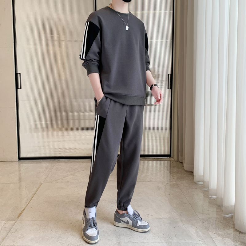 2025년 봄/가을 신상 남성 캐주얼 라운드넥 스웨트셔츠 투피스 세트, 멋진 남성복 세트스토어 가기