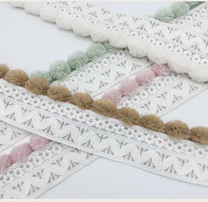 공장 직접 도매 커튼 레이스 그물 붉은 양모 공 자수 레이스 수용성 가장자리 프랑스 측면 장식