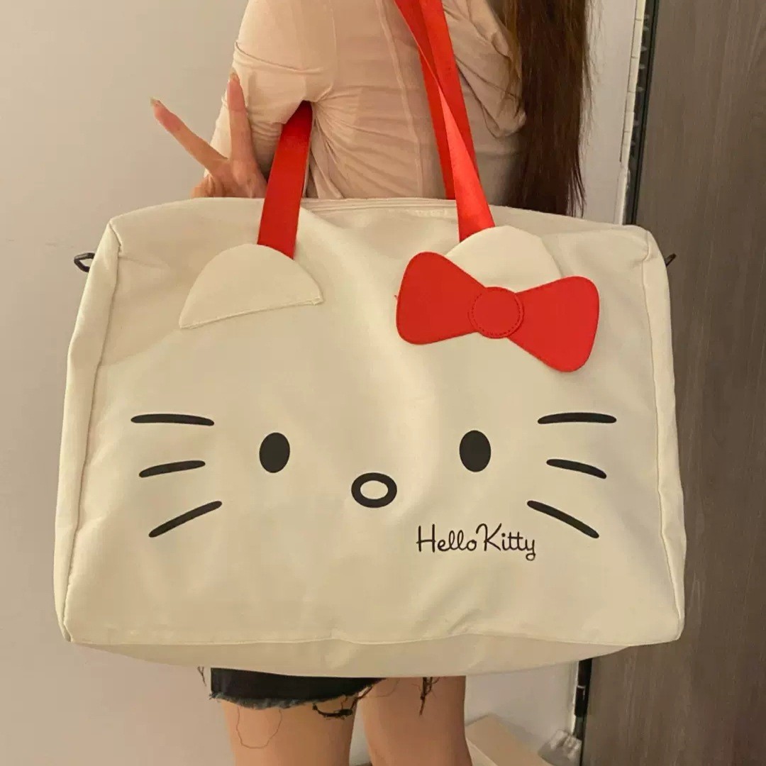 원래 키티 고양이 소녀 캠퍼스 의류 보관 가방 경량 트롤리 여행 여행 핸드백 수하물 가방스토어 가기