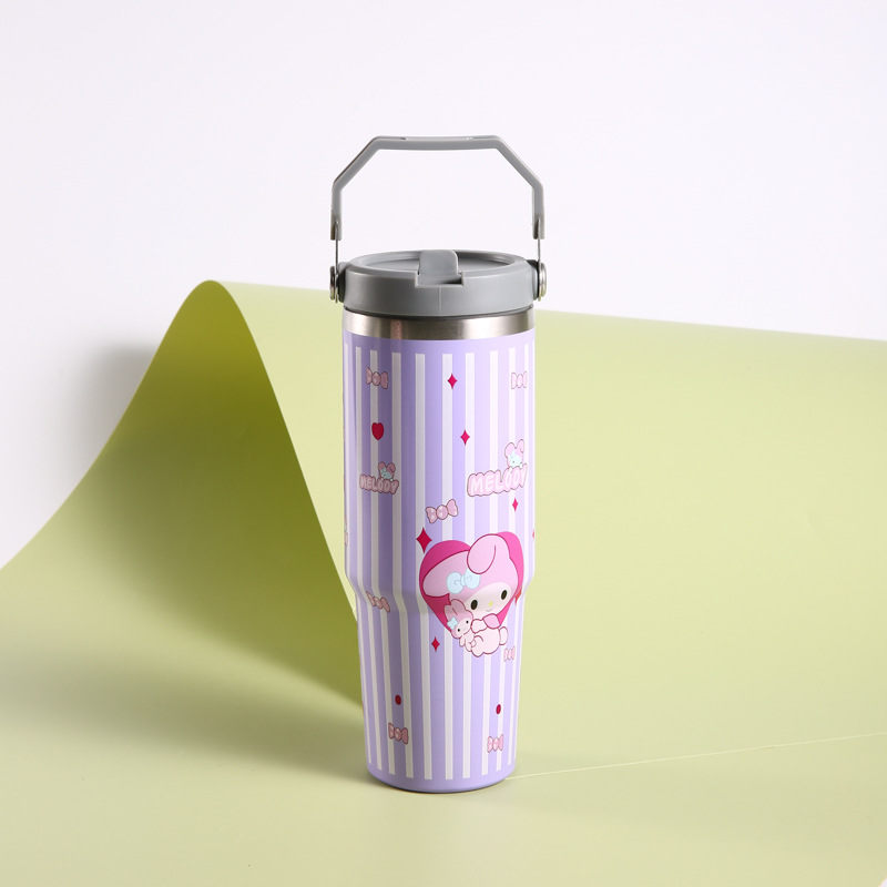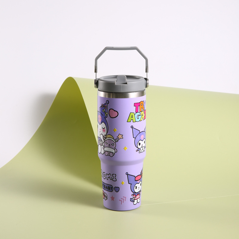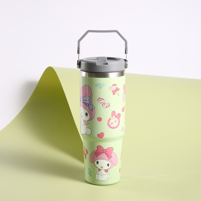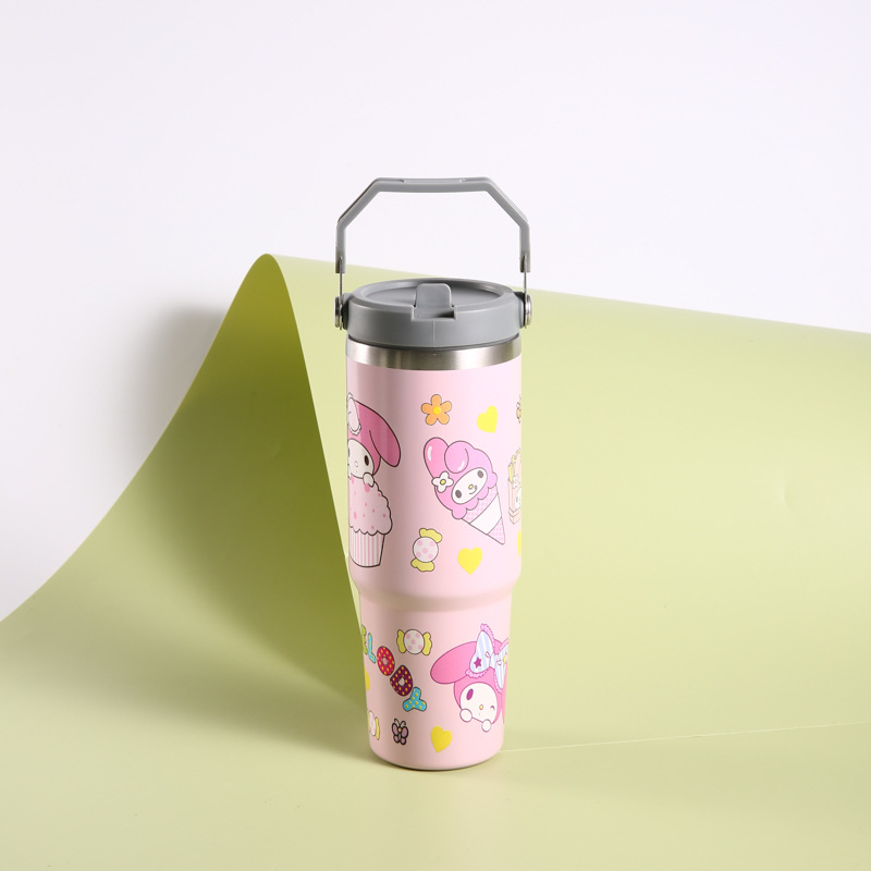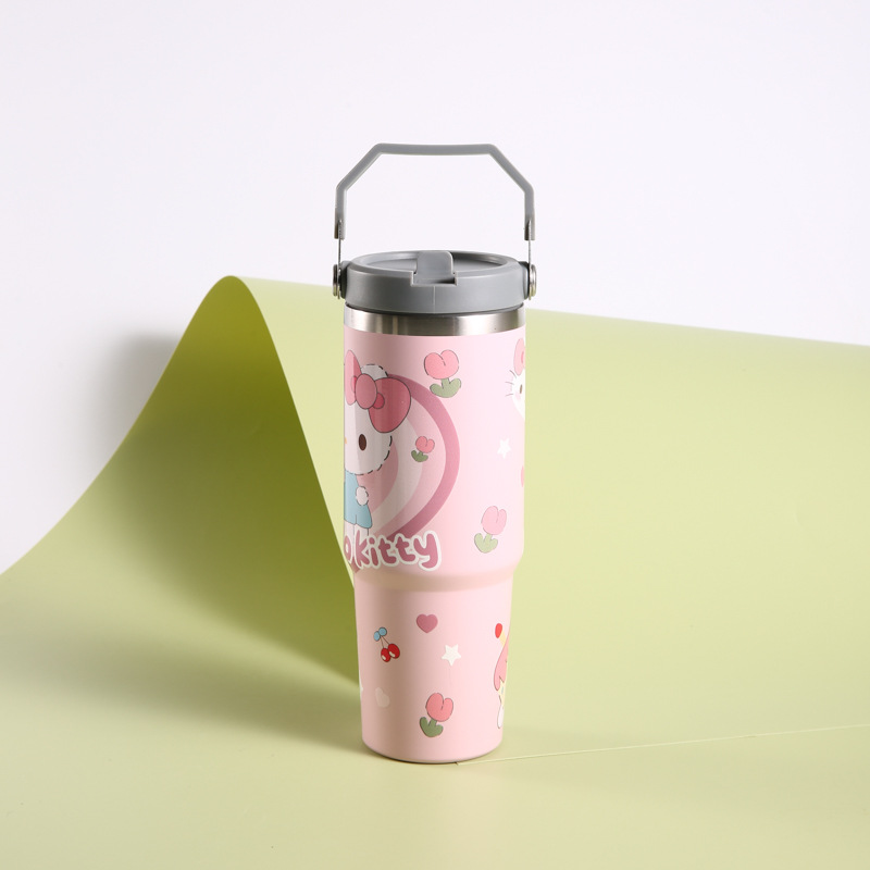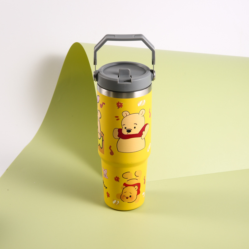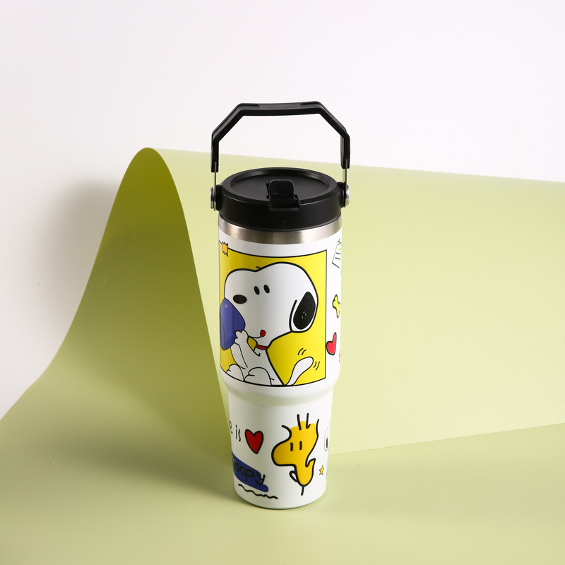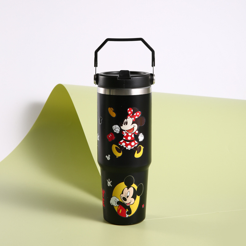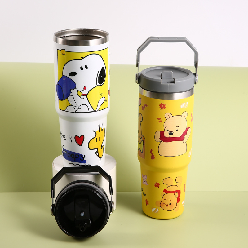 30OZ 자동차 컵 만화 패턴 대용량 스테인레스 스틸 진공 절연 컵 높은 색상 가치 휴대용 핸들 아이스 컵
