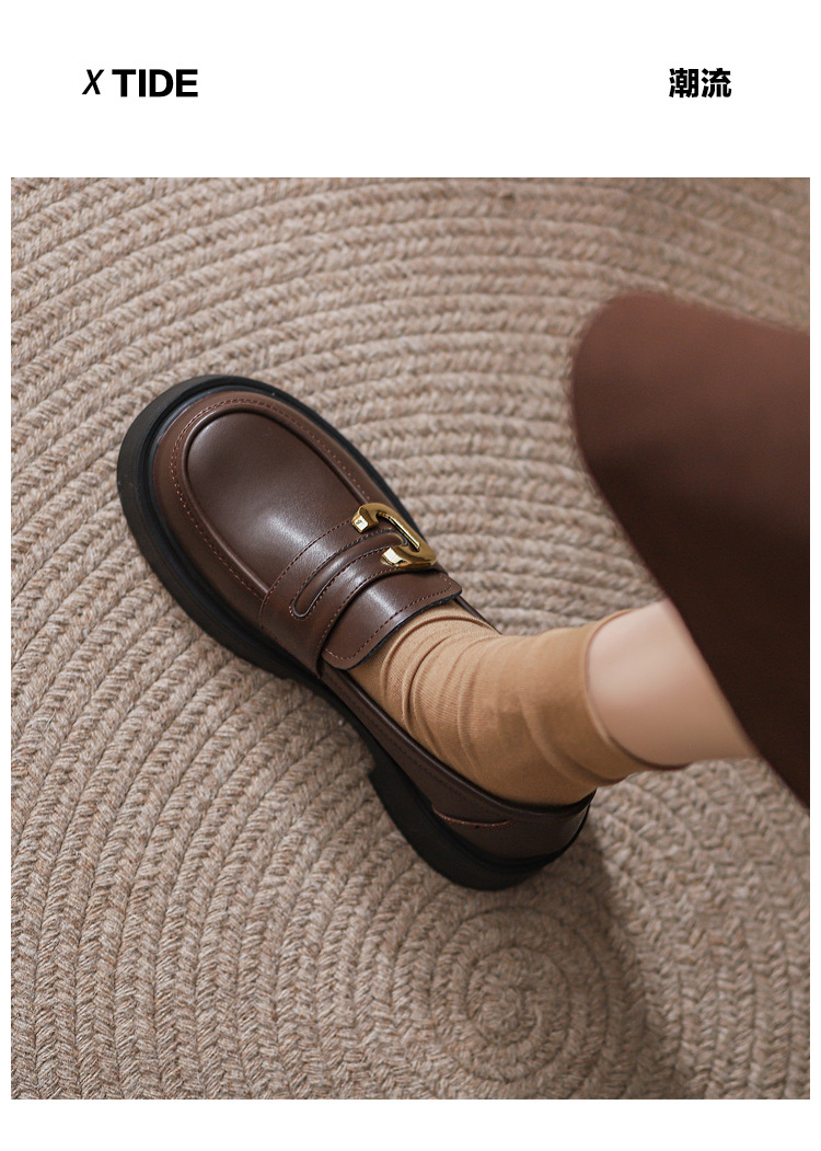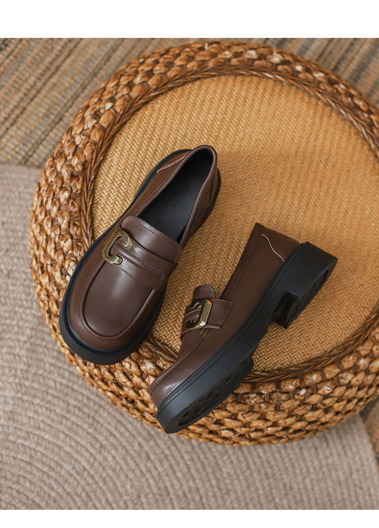 여성용 천연 가죽 영국풍 레트로 가죽신발 2026년 봄 신상 만능 두꺼운 밑창 슬립온 로퍼스토어 가기