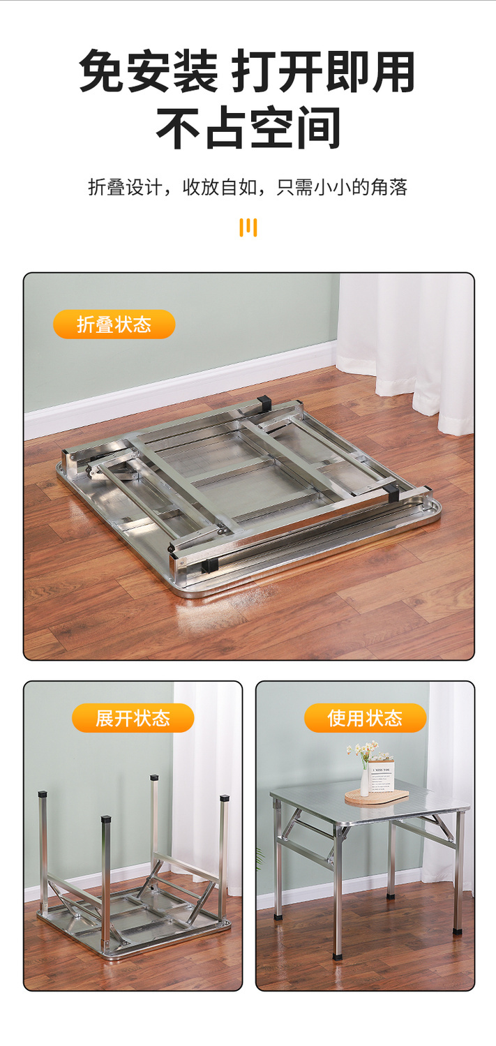여분의 두꺼운 스테인레스 스틸 접이식 테이블 사각형 직사각형 테이블 식탁 홈 식탁 휴대용 야외 바베큐 마구간스토어 가기