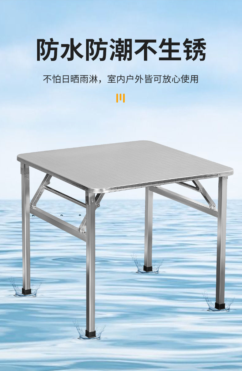 여분의 두꺼운 스테인레스 스틸 접이식 테이블 사각형 직사각형 테이블 식탁 홈 식탁 휴대용 야외 바베큐 마구간