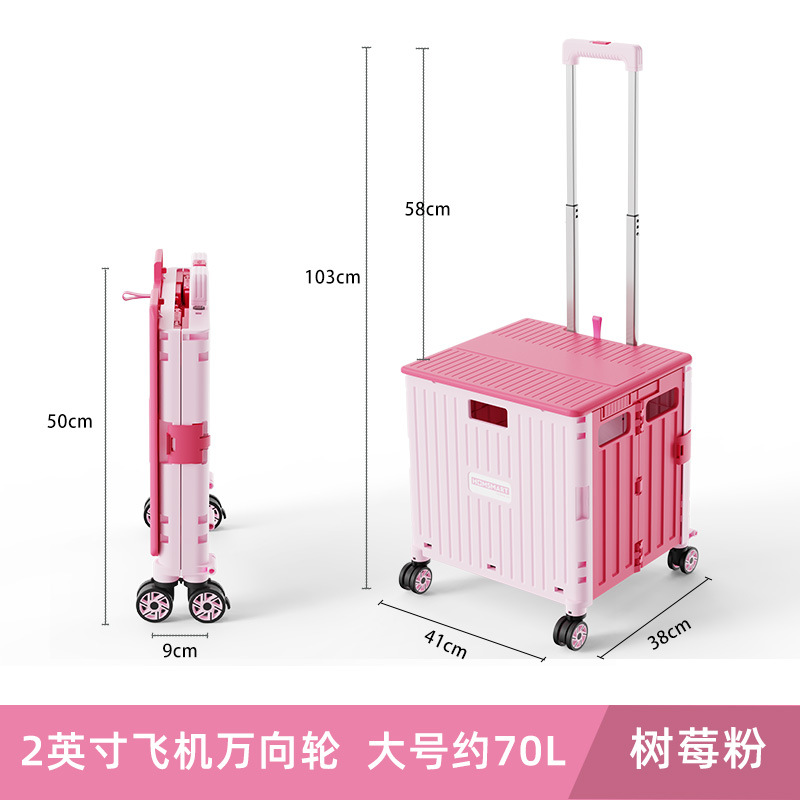 • 대형 4 륜 유니버설 슬라이드 65L 쇼핑 카트 라즈베리 파우더