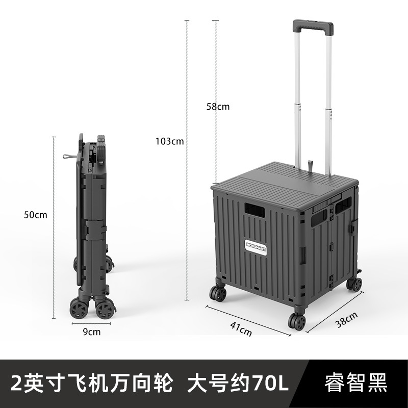 • 대형 4 륜 유니버설 슬라이딩 커버 65L 쇼핑 카트 스마트 블랙