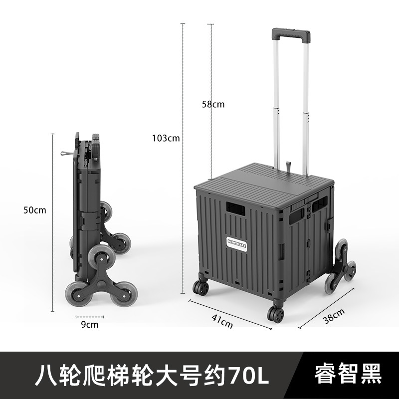 • 대형 8 륜 사다리 통합 슬라이딩 커버 65L 쇼핑 카트 스마트 블랙