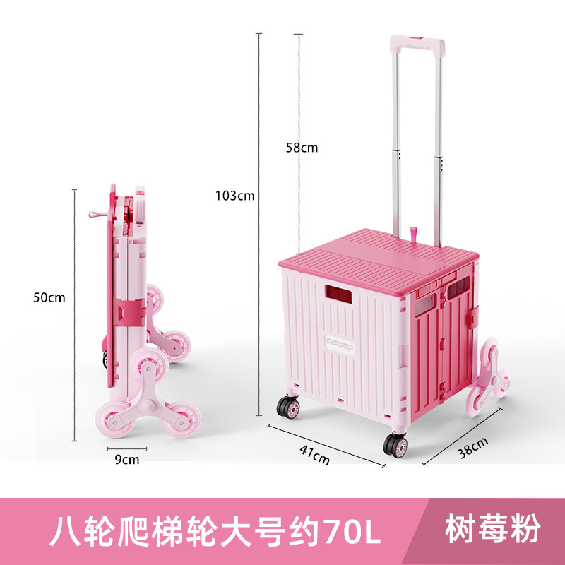 • 대형 8 륜 사다리 통합 슬라이딩 커버 65L 쇼핑 카트 라즈베리 파우더