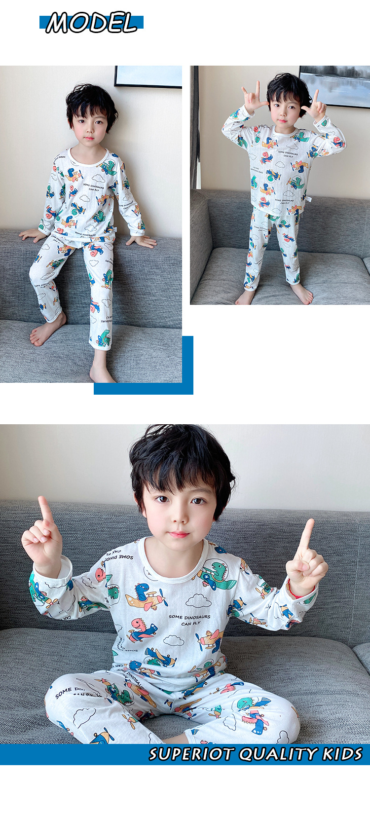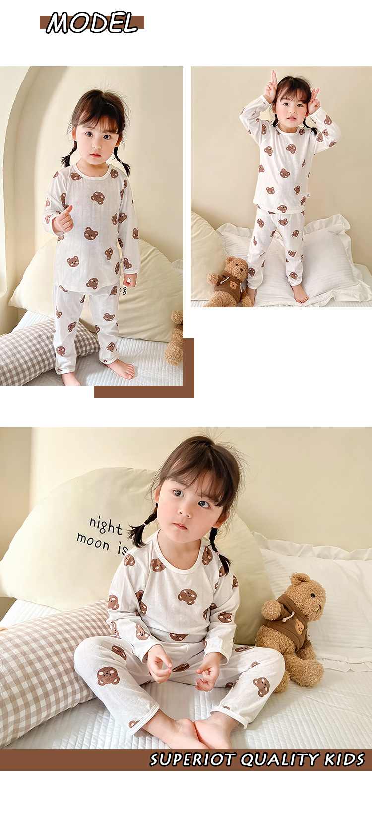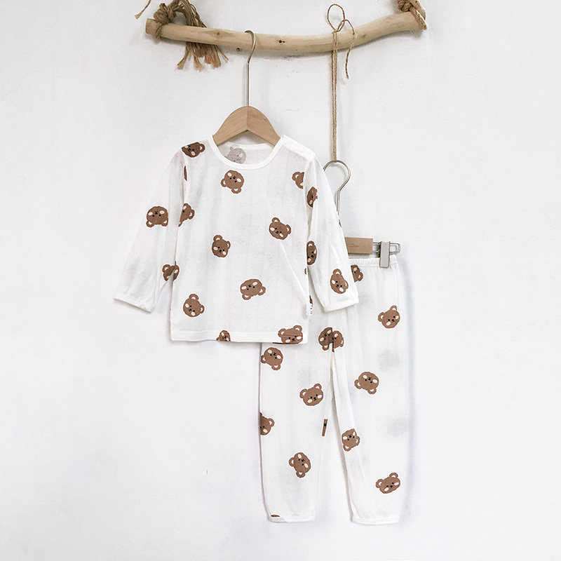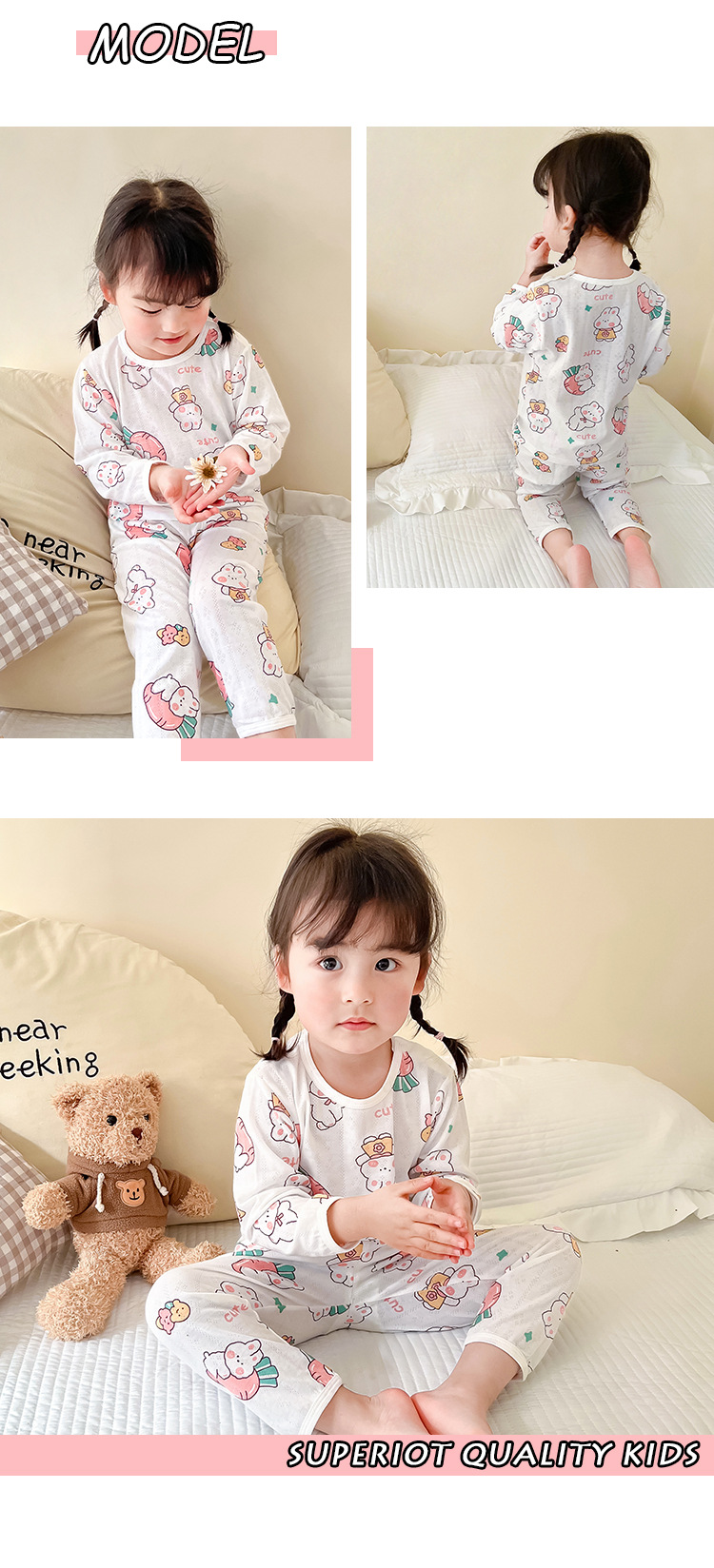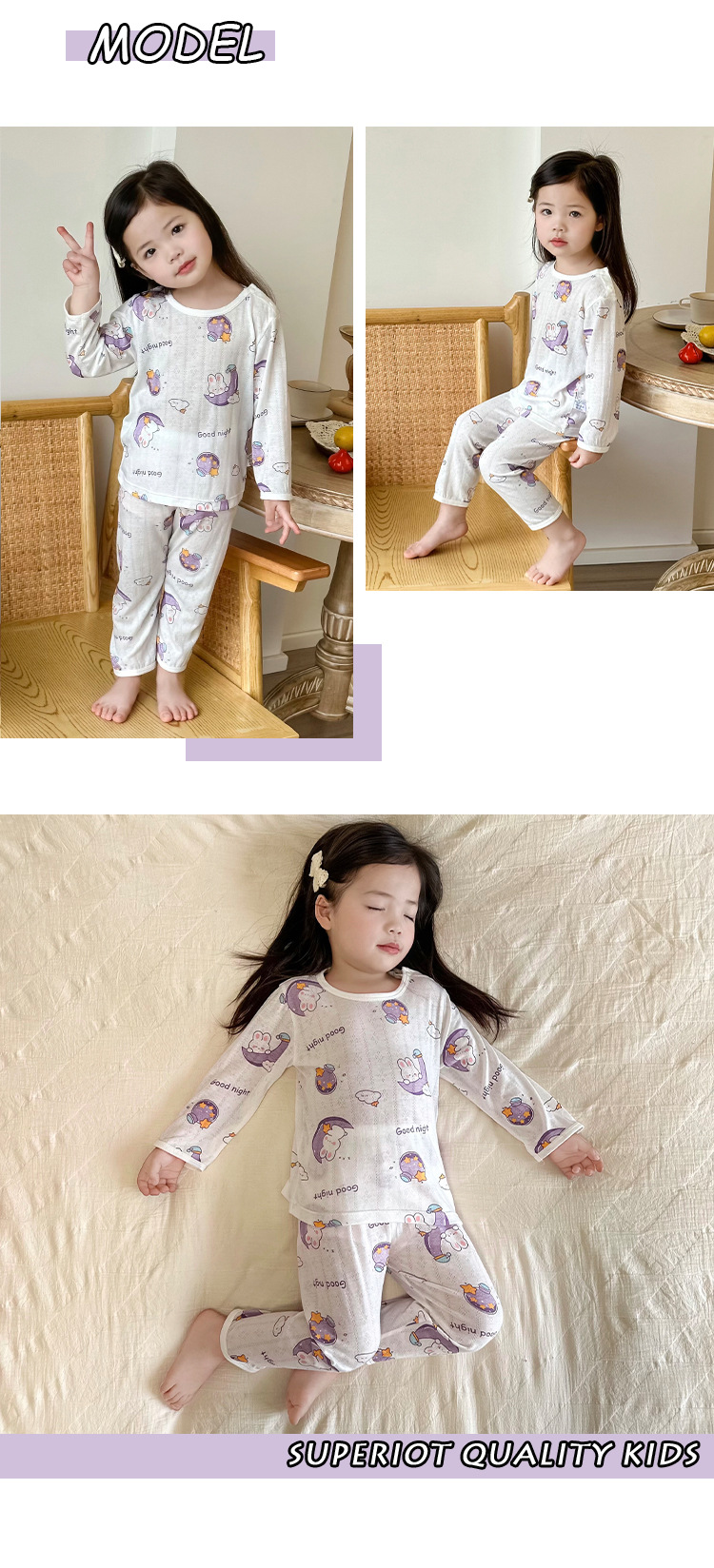 3-16 세 소녀 여름 대나무 섬유 빛 통기성 잠옷 80-150cm 긴 소매 바지 에어컨 룸 세트스토어 가기