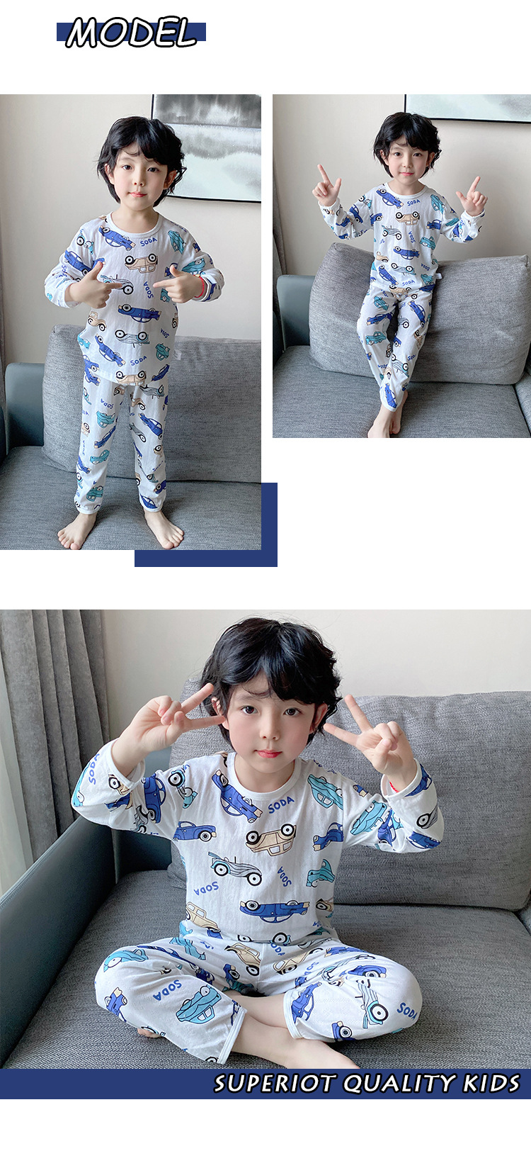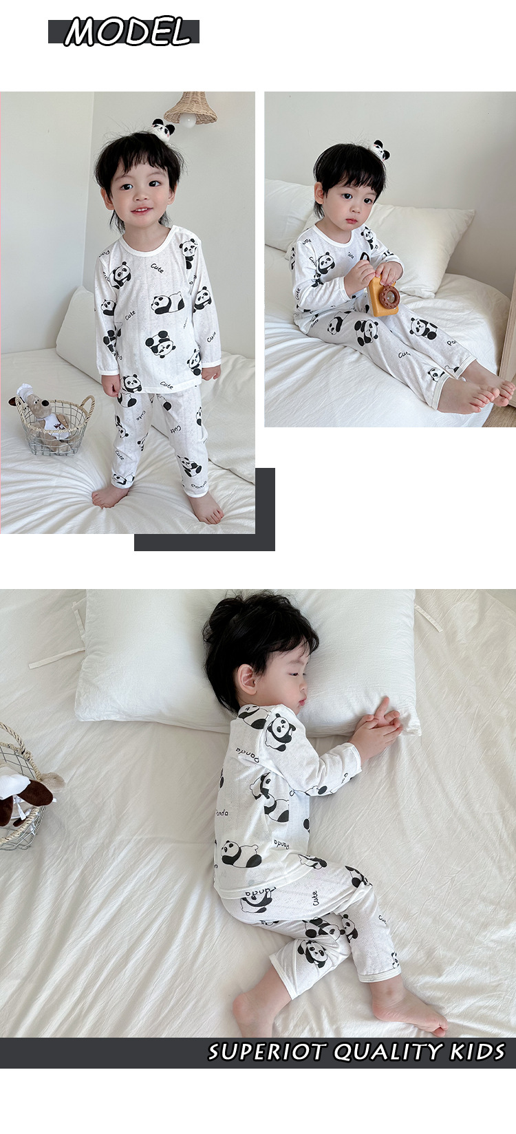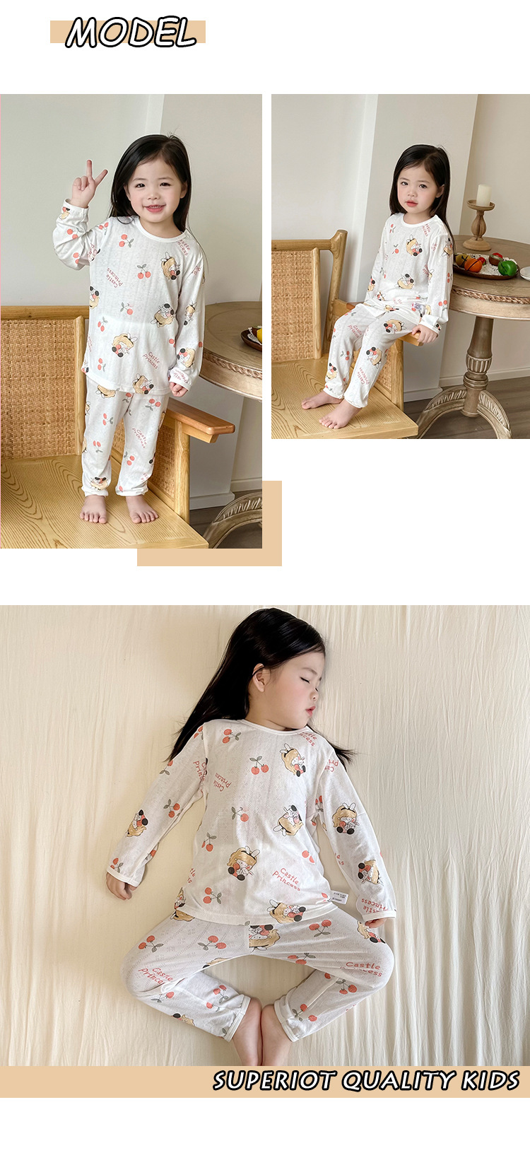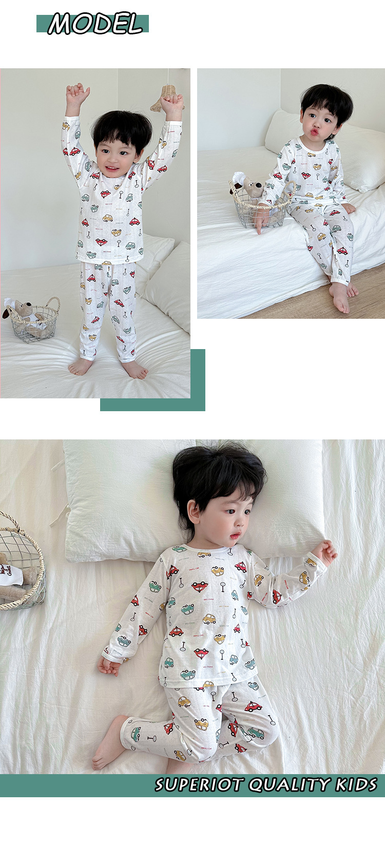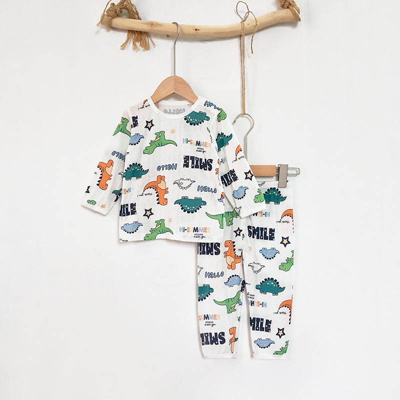 3-16 세 소녀 여름 대나무 섬유 빛 통기성 잠옷 80-150cm 긴 소매 바지 에어컨 룸 세트스토어 가기