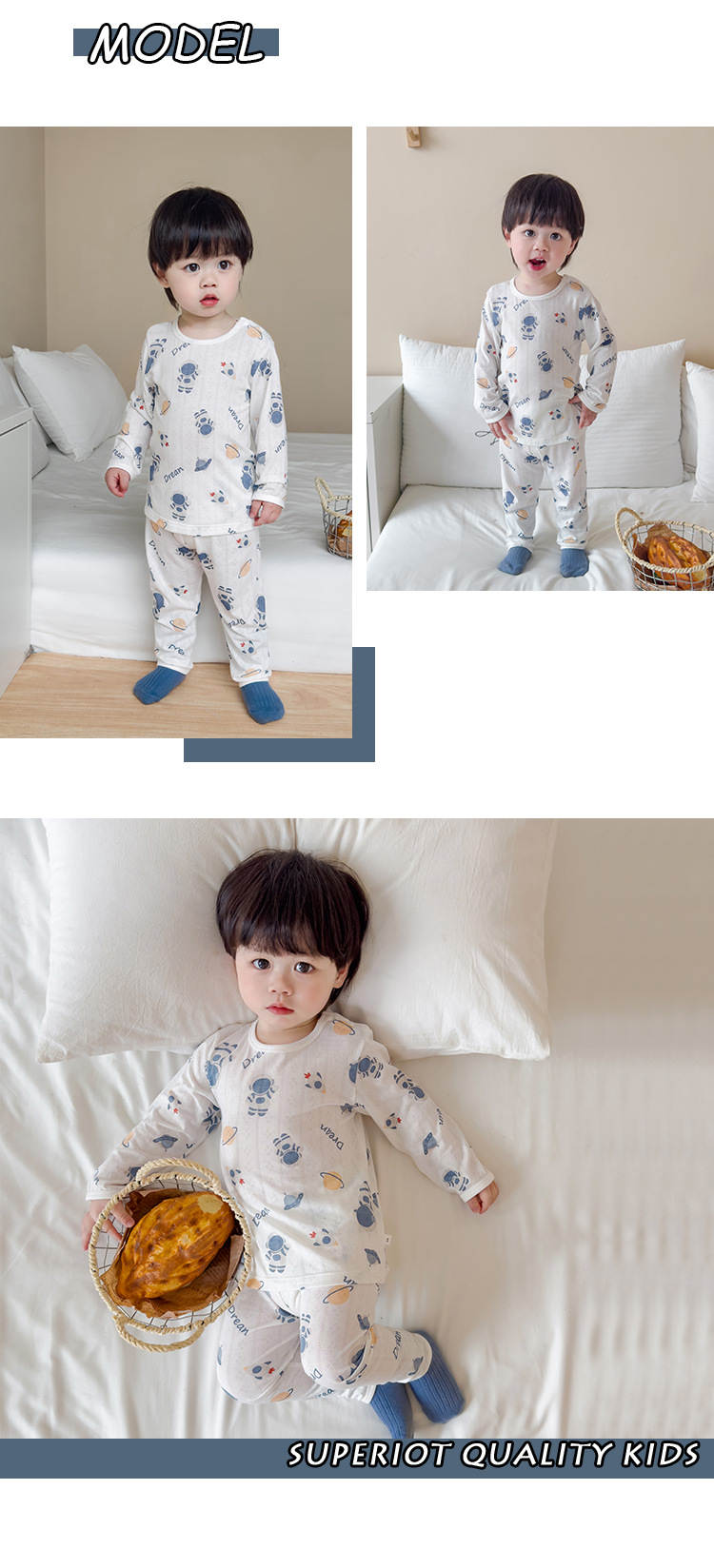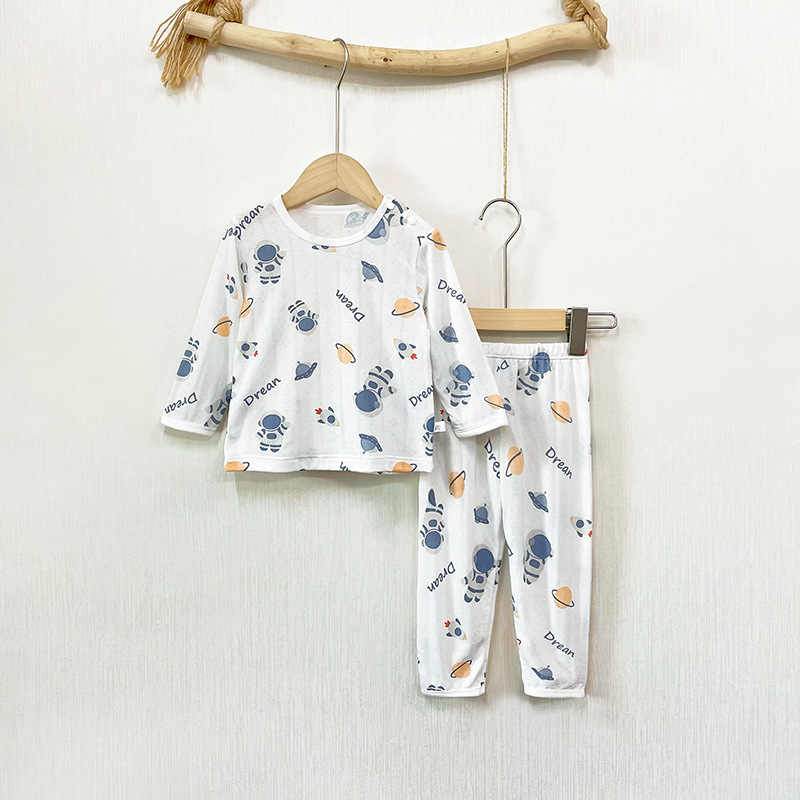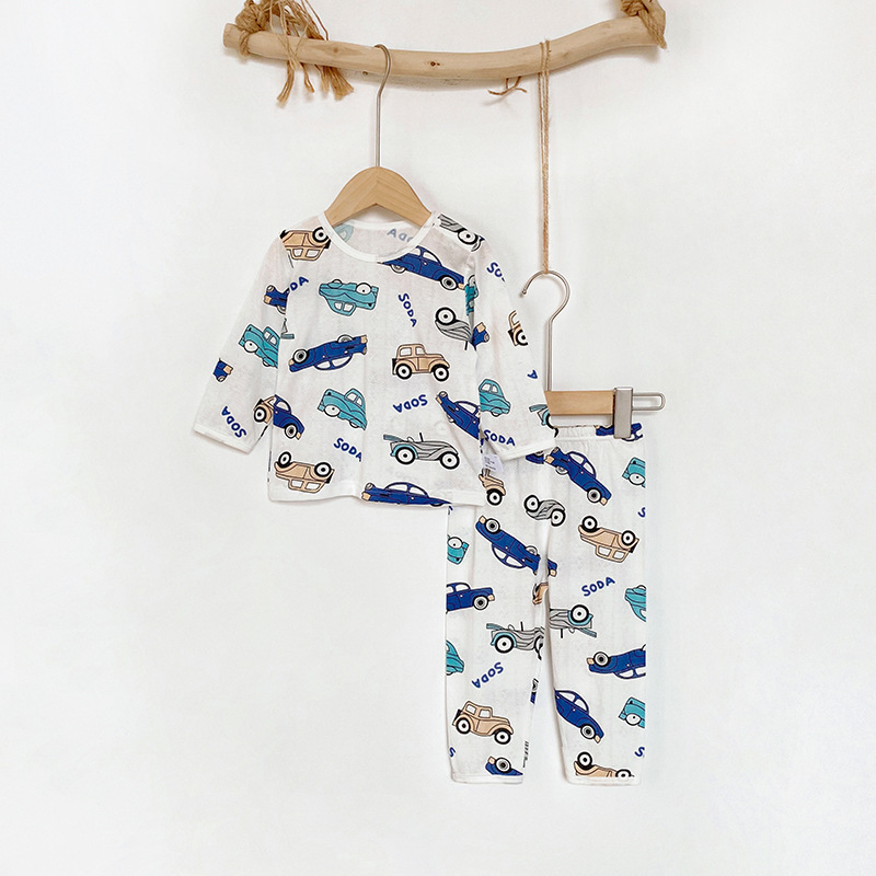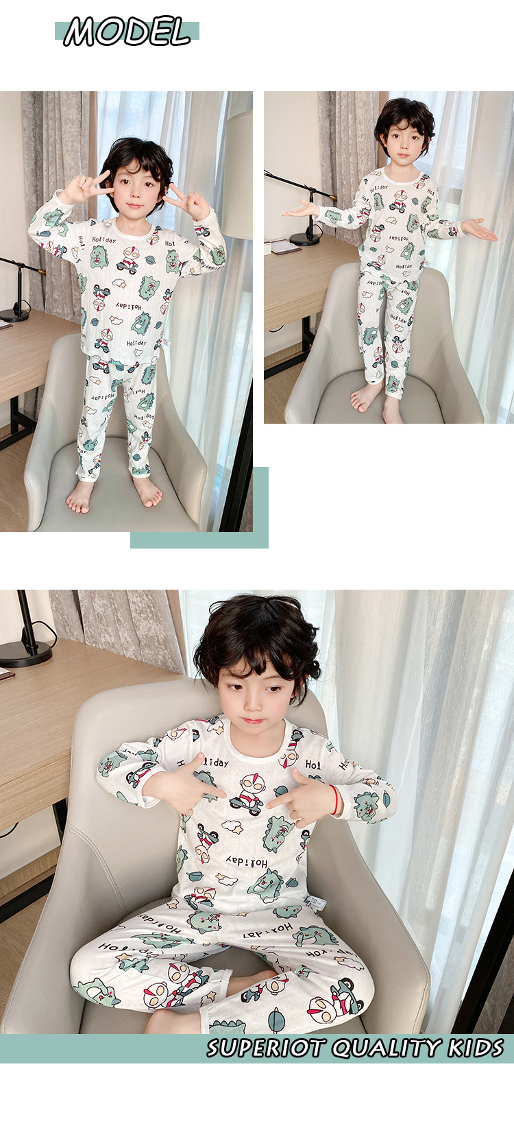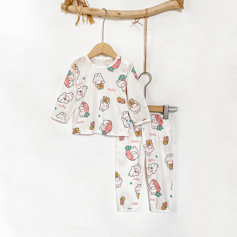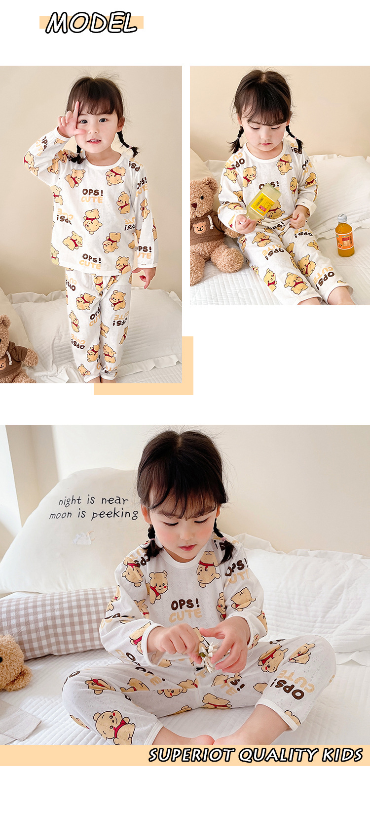 3-16 세 소녀 여름 대나무 섬유 빛 통기성 잠옷 80-150cm 긴 소매 바지 에어컨 룸 세트스토어 가기