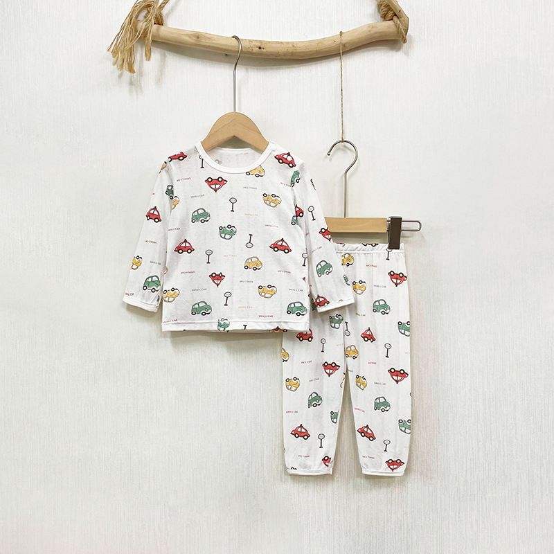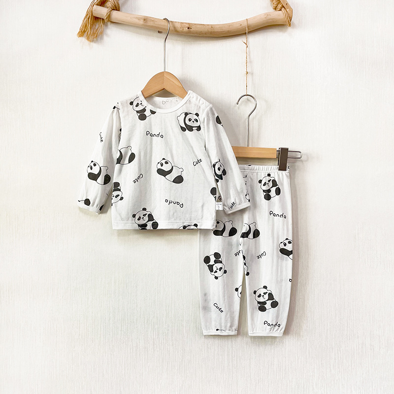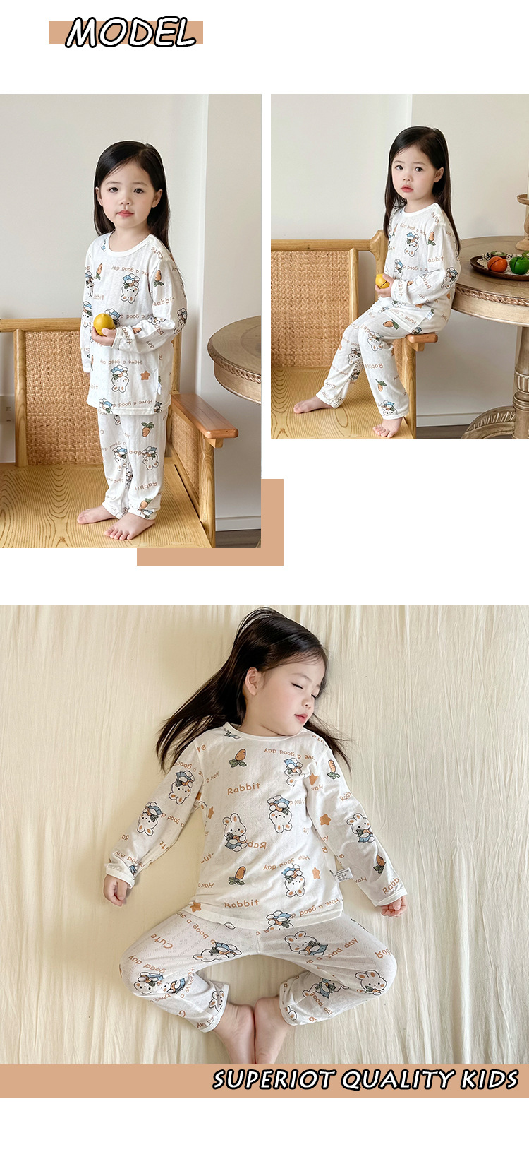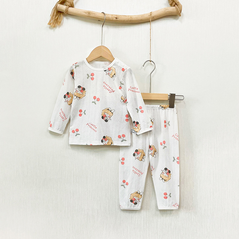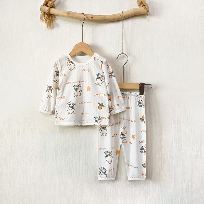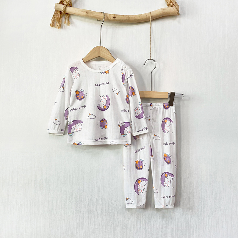 3-16 세 소녀 여름 대나무 섬유 빛 통기성 잠옷 80-150cm 긴 소매 바지 에어컨 룸 세트스토어 가기
