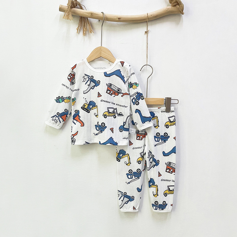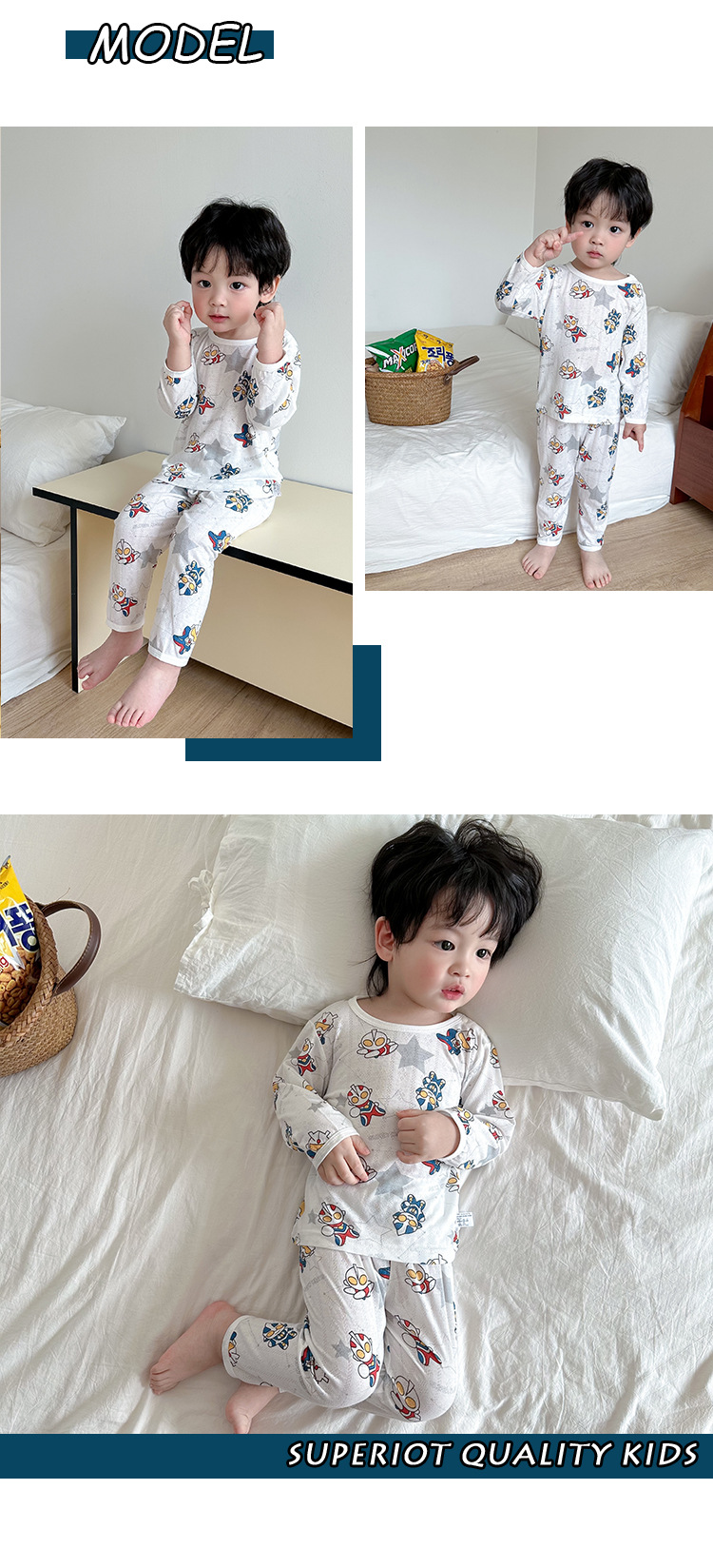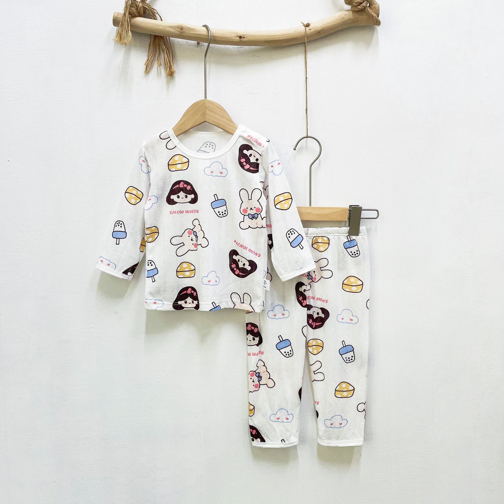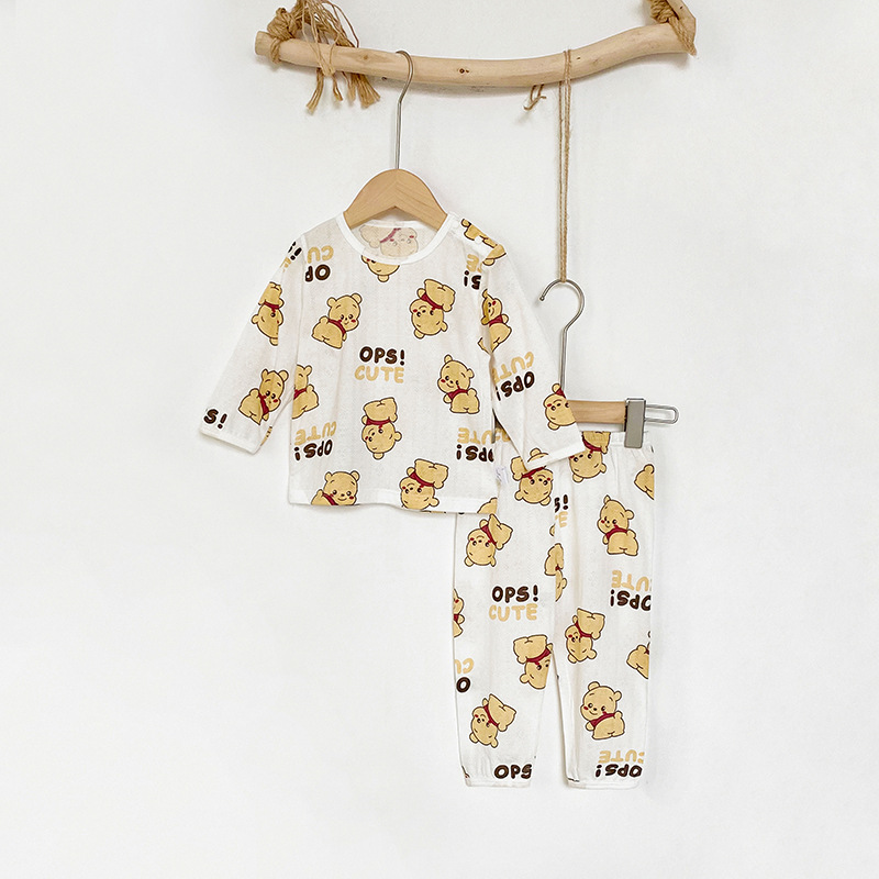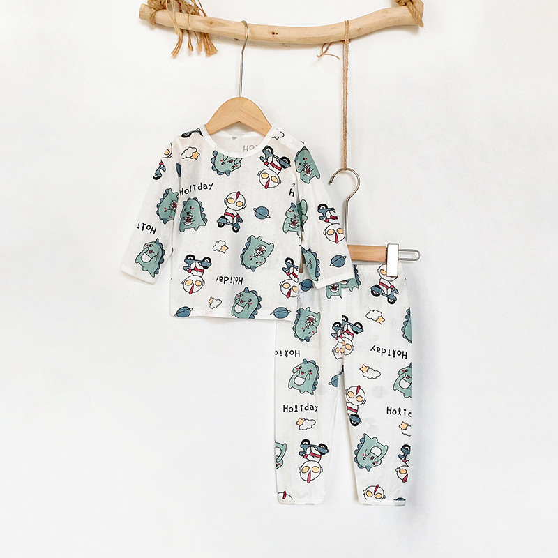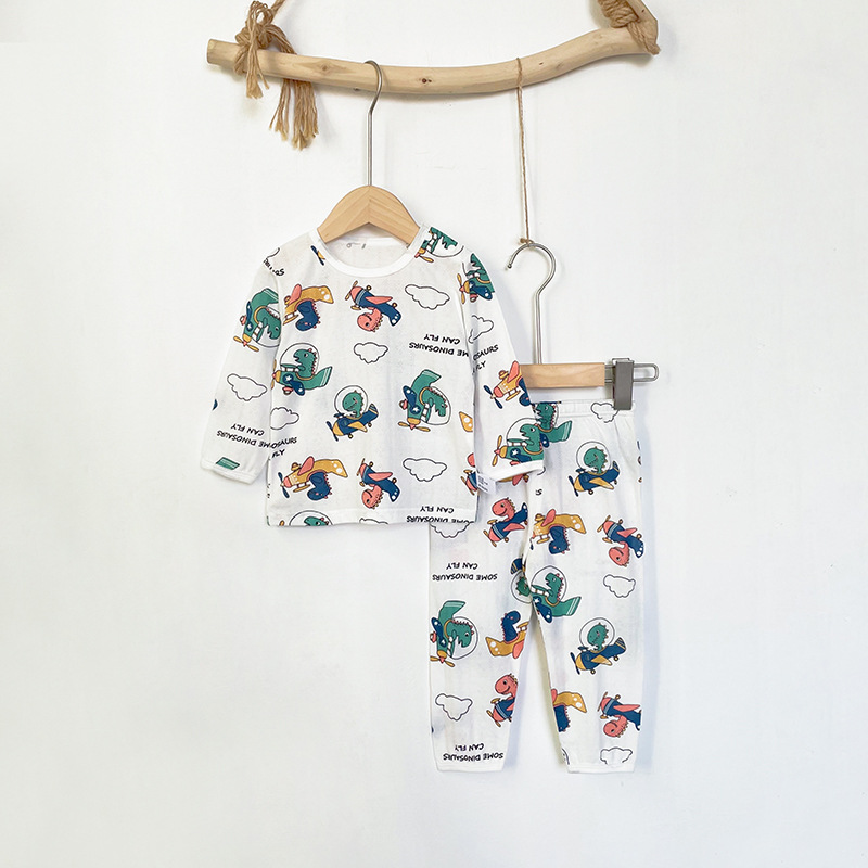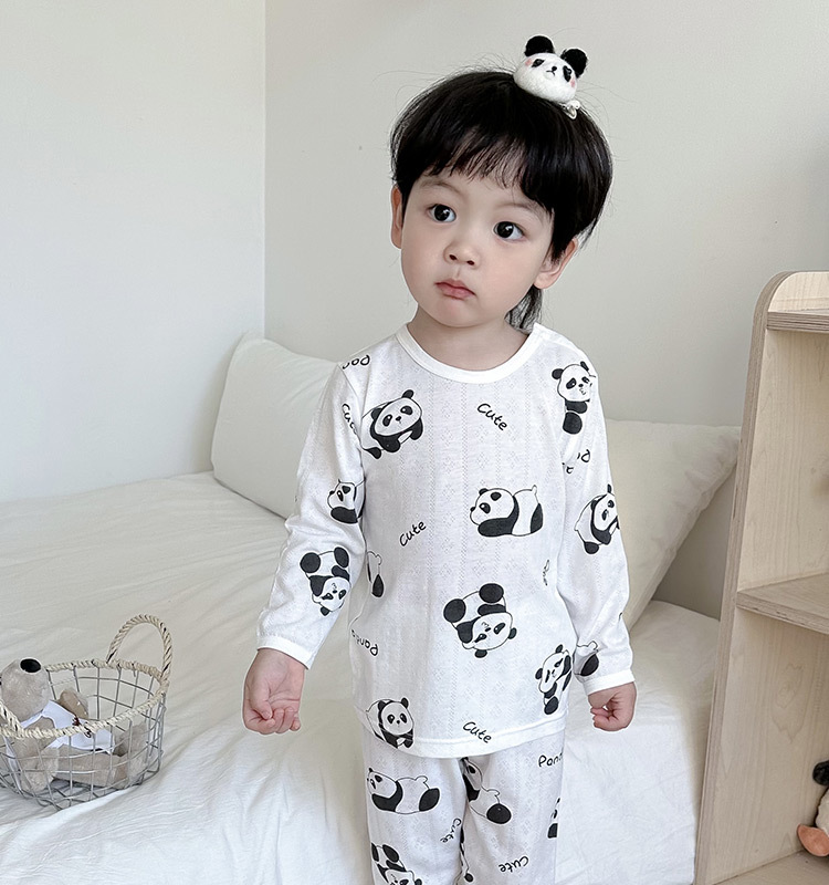 3-16 세 소녀 여름 대나무 섬유 빛 통기성 잠옷 80-150cm 긴 소매 바지 에어컨 룸 세트스토어 가기
