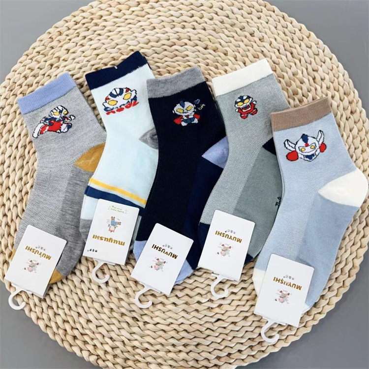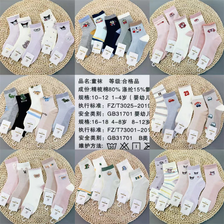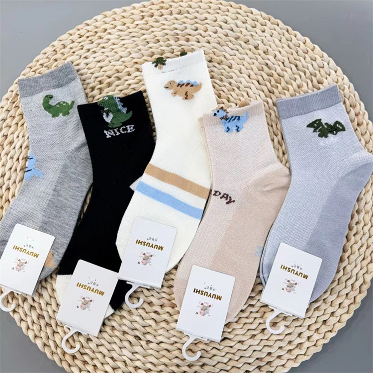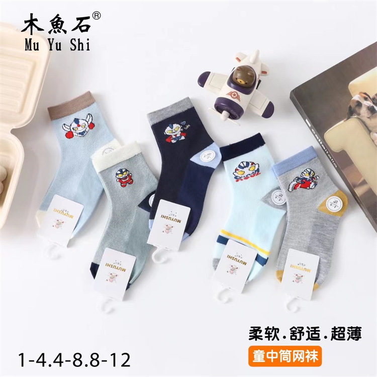 무윤희스톤 어린이용 봄여름 신상품 중목 얇은 메쉬면 양말, 귀여운 만화 캐릭터 디자인, 1-4-8-12세용, 대량 도매스토어 가기