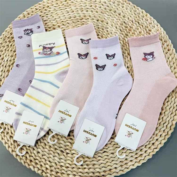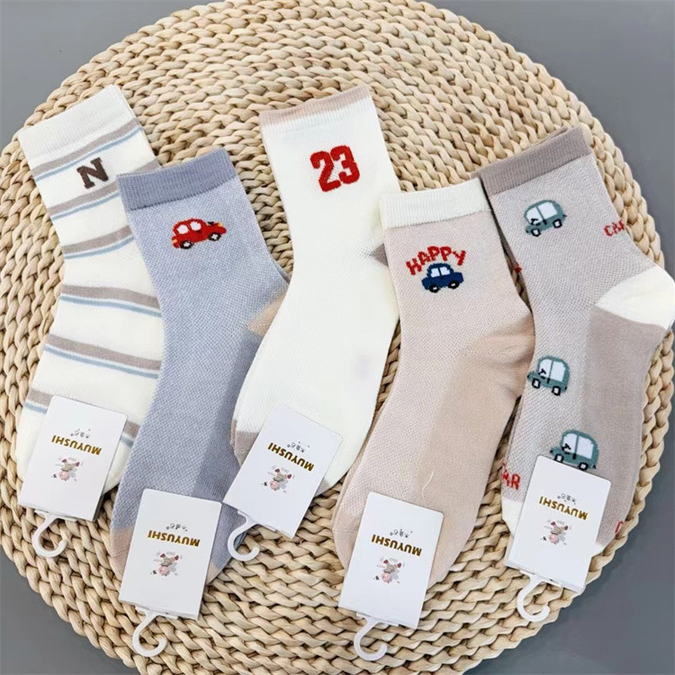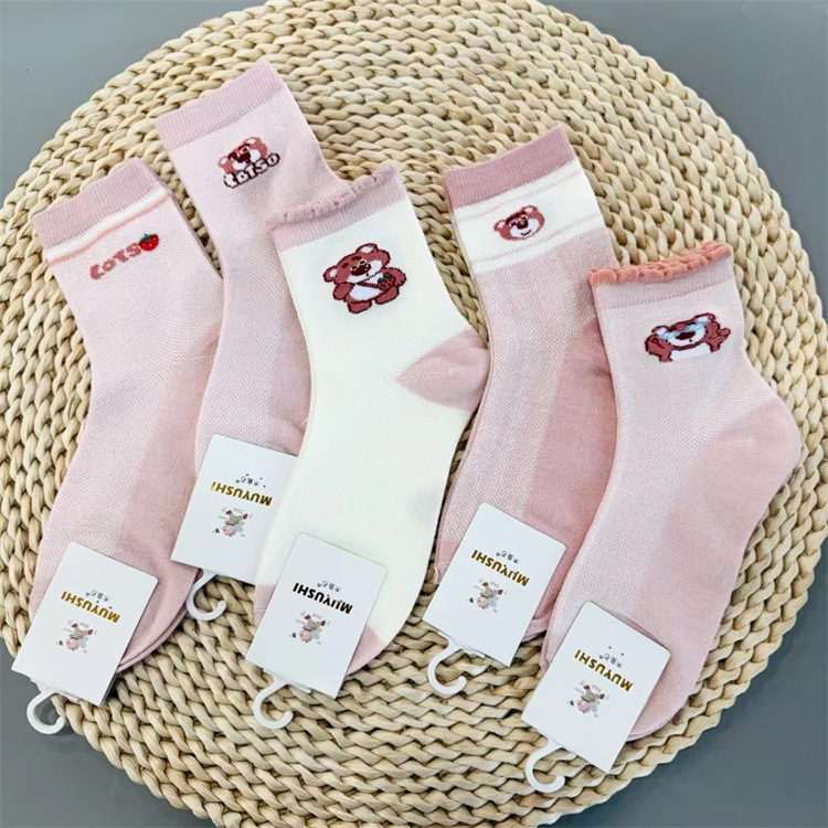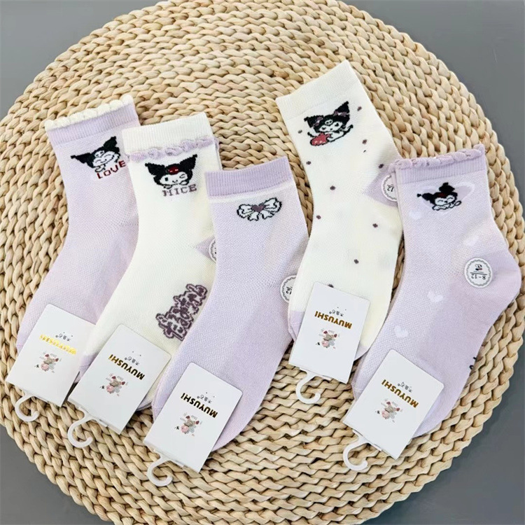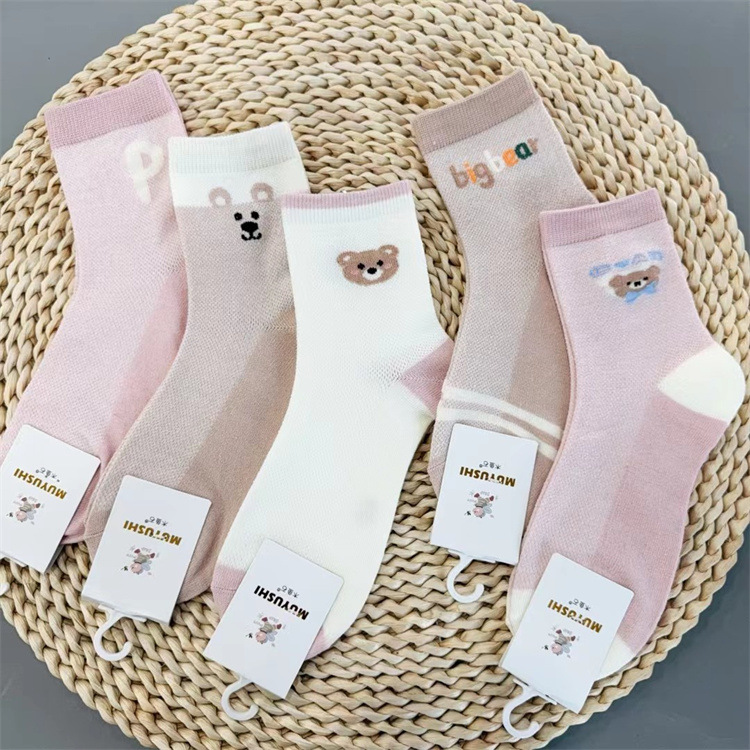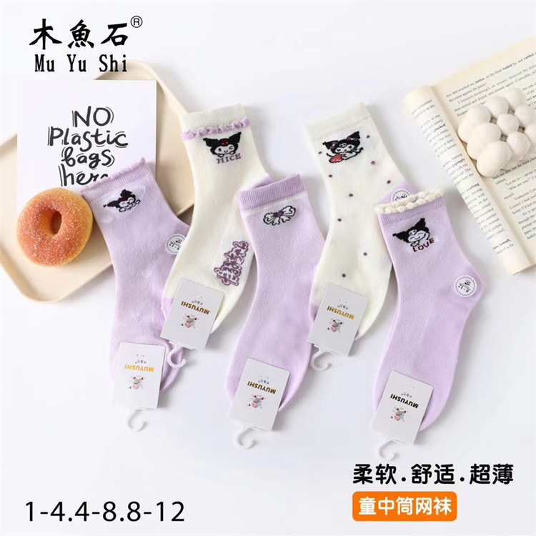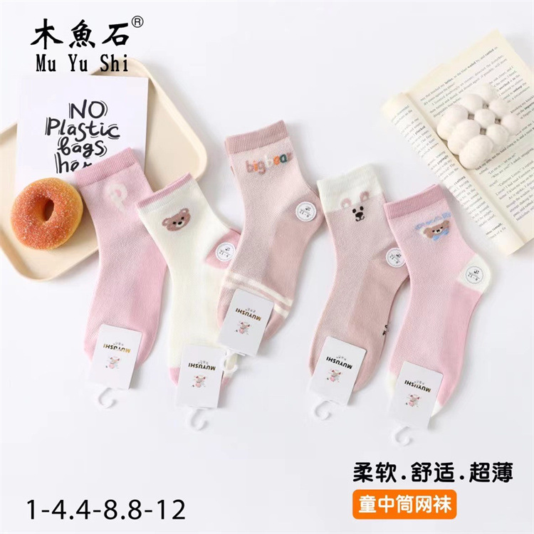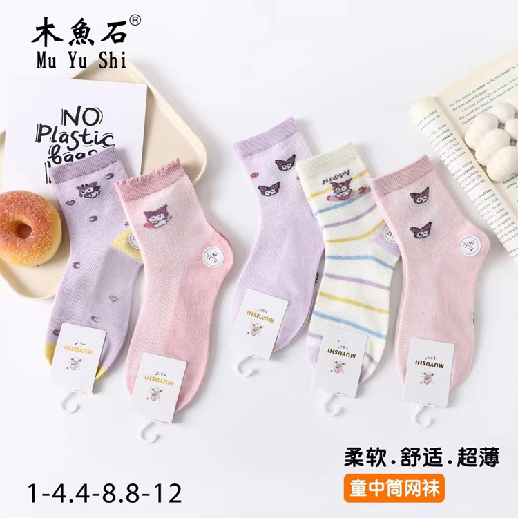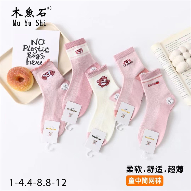 무윤희스톤 어린이용 봄여름 신상품 중목 얇은 메쉬면 양말, 귀여운 만화 캐릭터 디자인, 1-4-8-12세용, 대량 도매