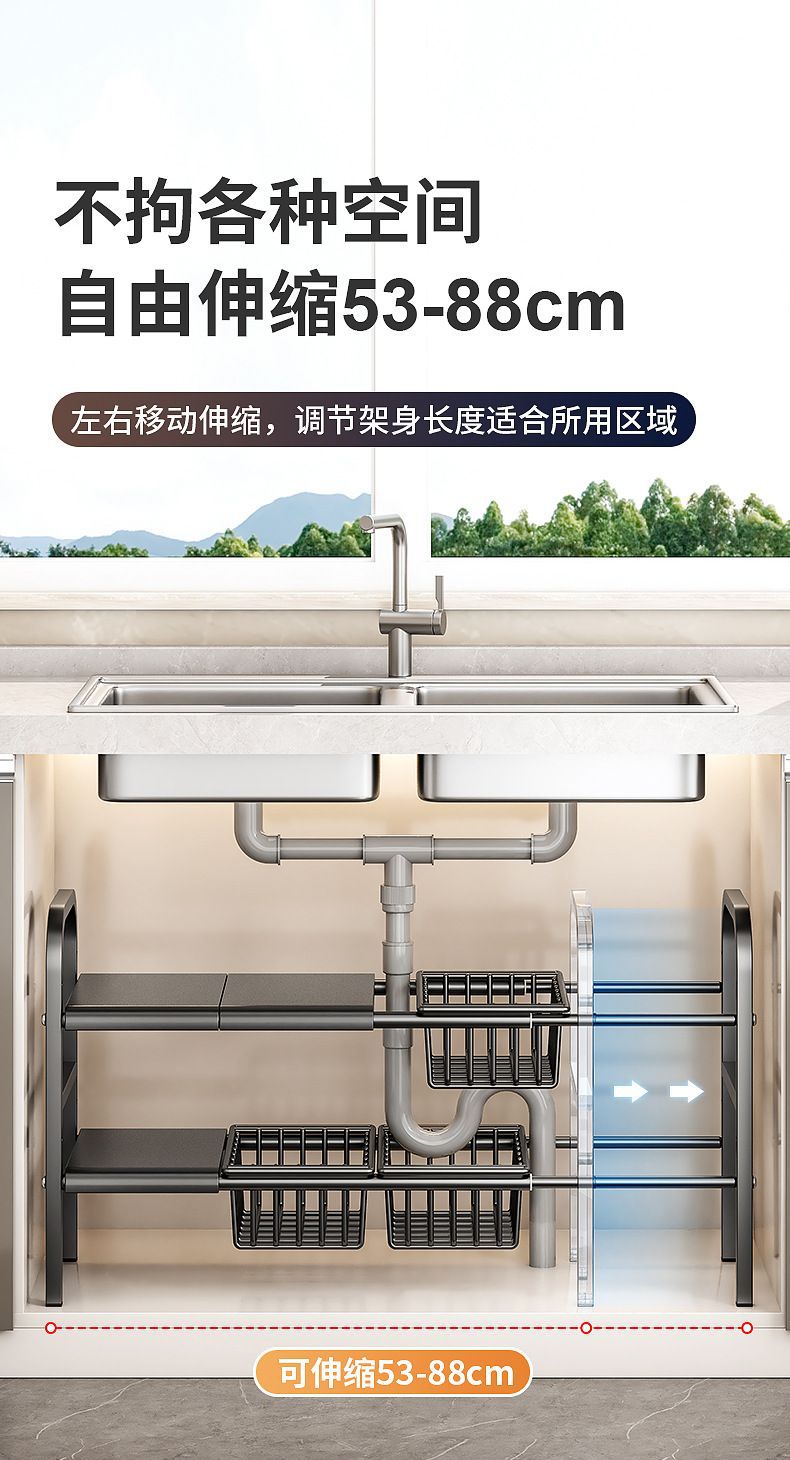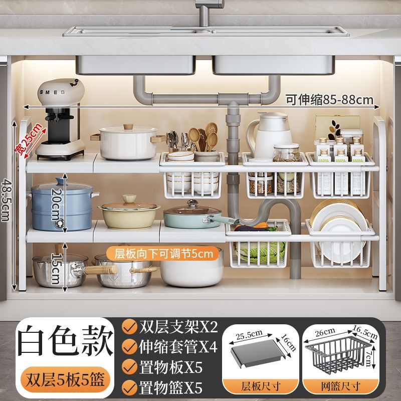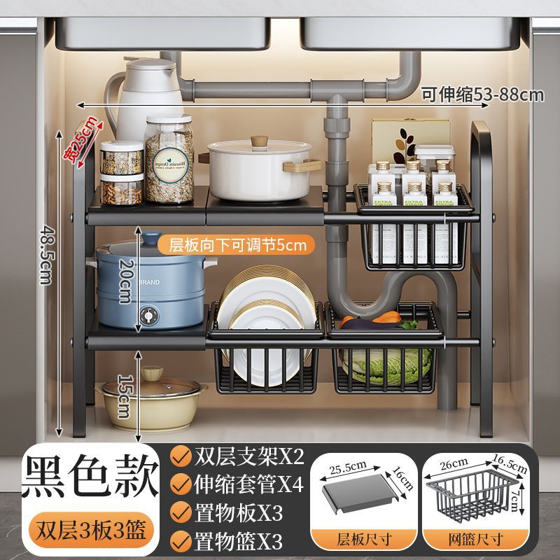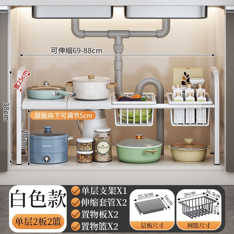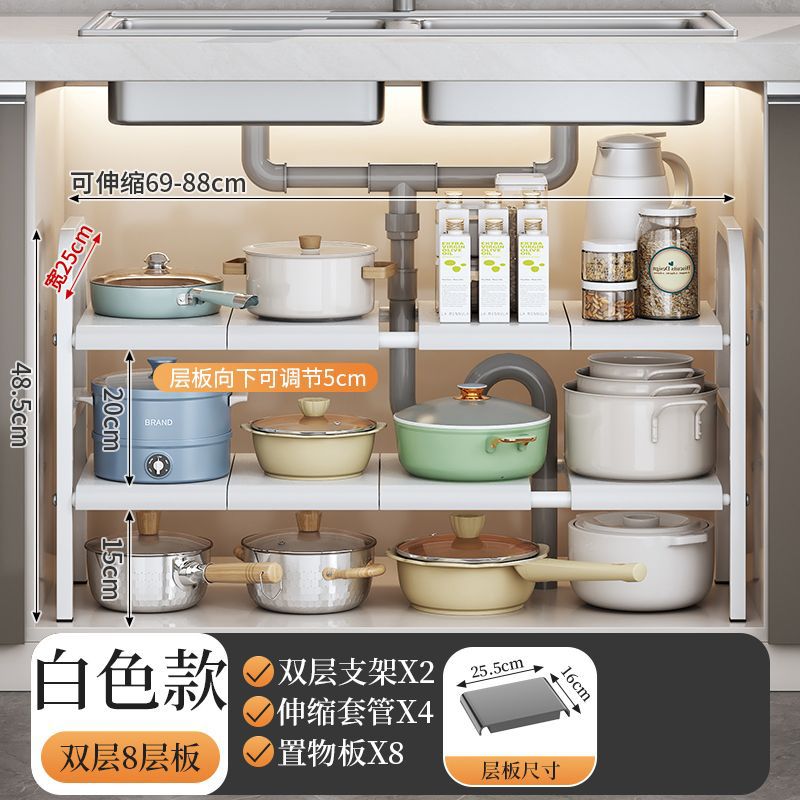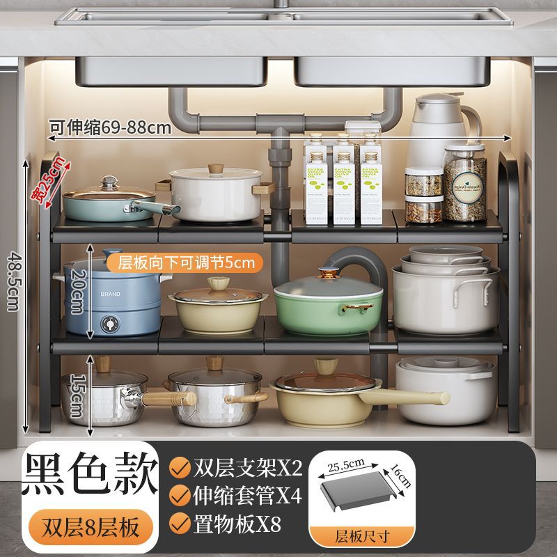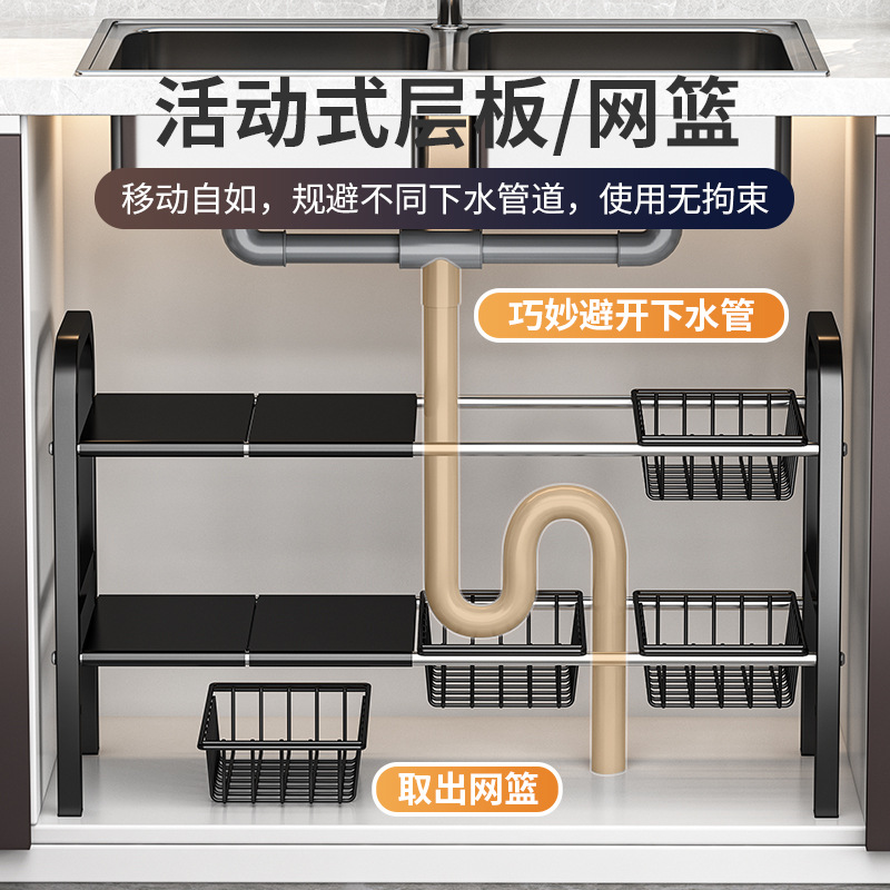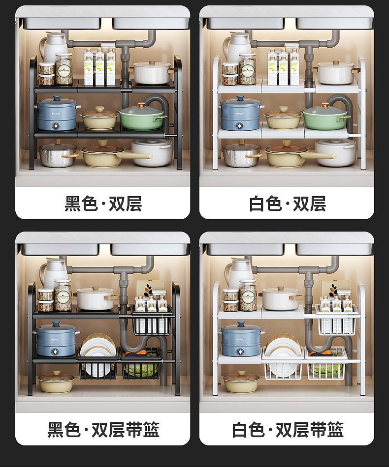 개폐식 주방 싱크 스토리지 랙 바닥 스토리지 랙 캐비닛 철 냄비 랙 보울 랙 다기능 배수 랙