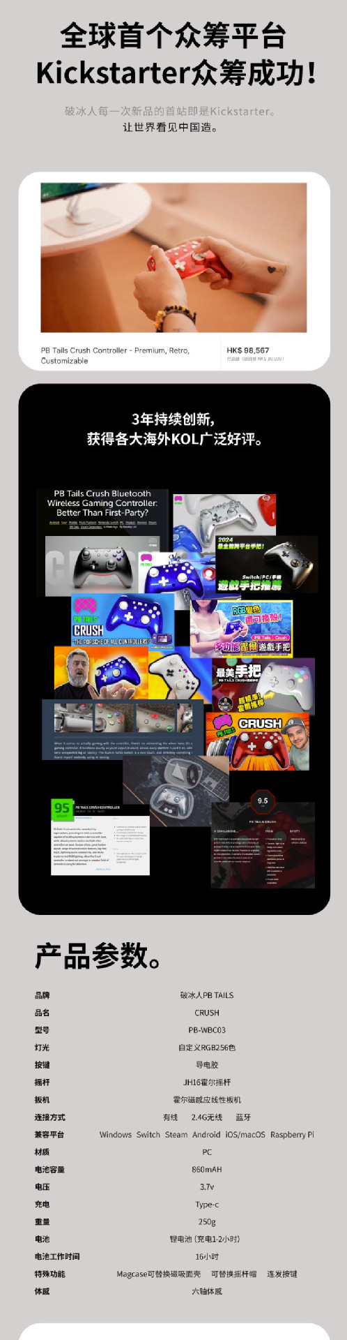 PB 크러쉬 도자기 백색 무선 게임 컨트롤러 PC 컴퓨터 듀얼 홀 블루투스 RGB 조명 NS 블랙 신화