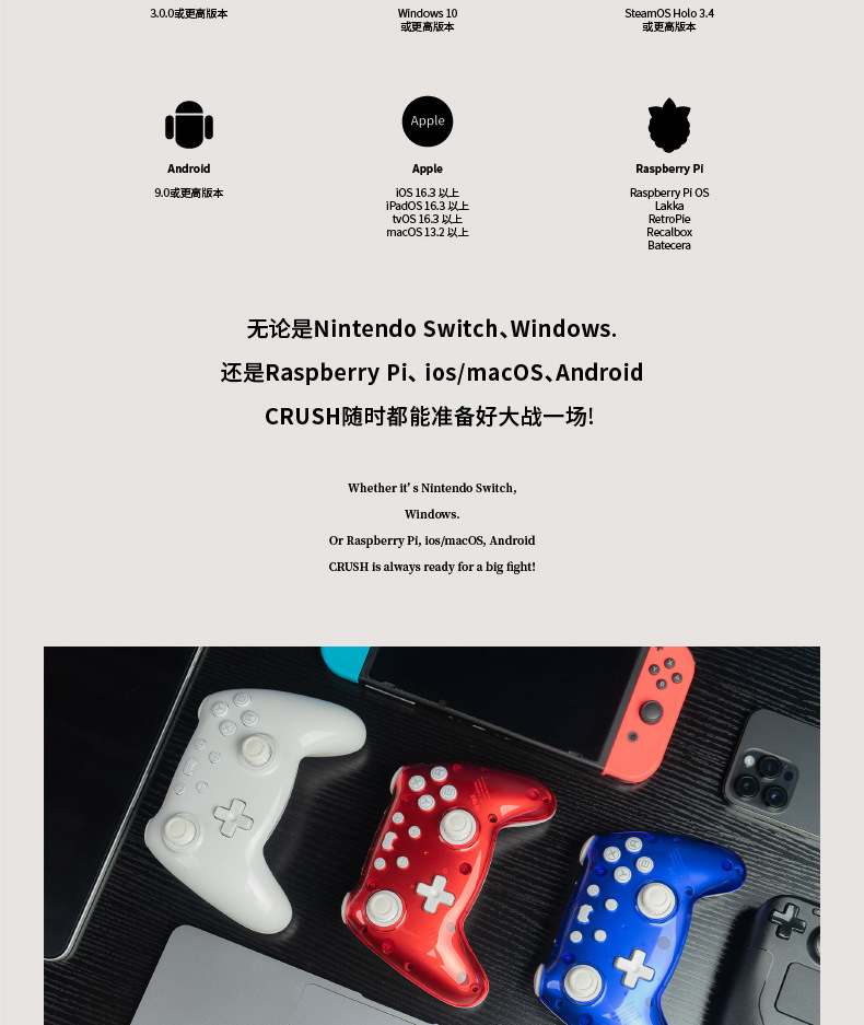 PB 크러쉬 도자기 백색 무선 게임 컨트롤러 PC 컴퓨터 듀얼 홀 블루투스 RGB 조명 NS 블랙 신화스토어 가기