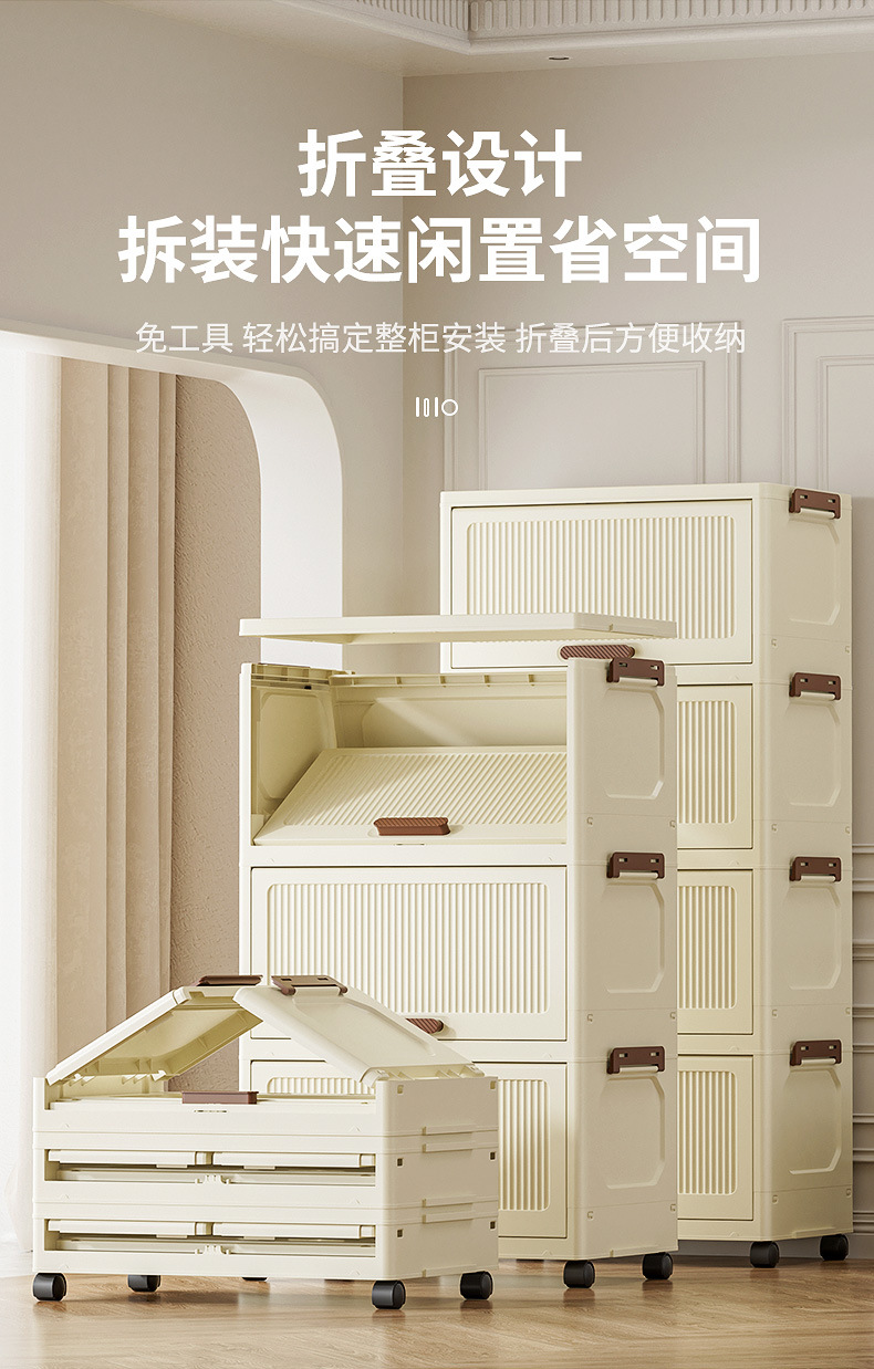 맞춤형 플립탑 적층형 바퀴 달린 옷장 침실 도매 수납함 크로스보더 대형 접이식 무설치 수납함