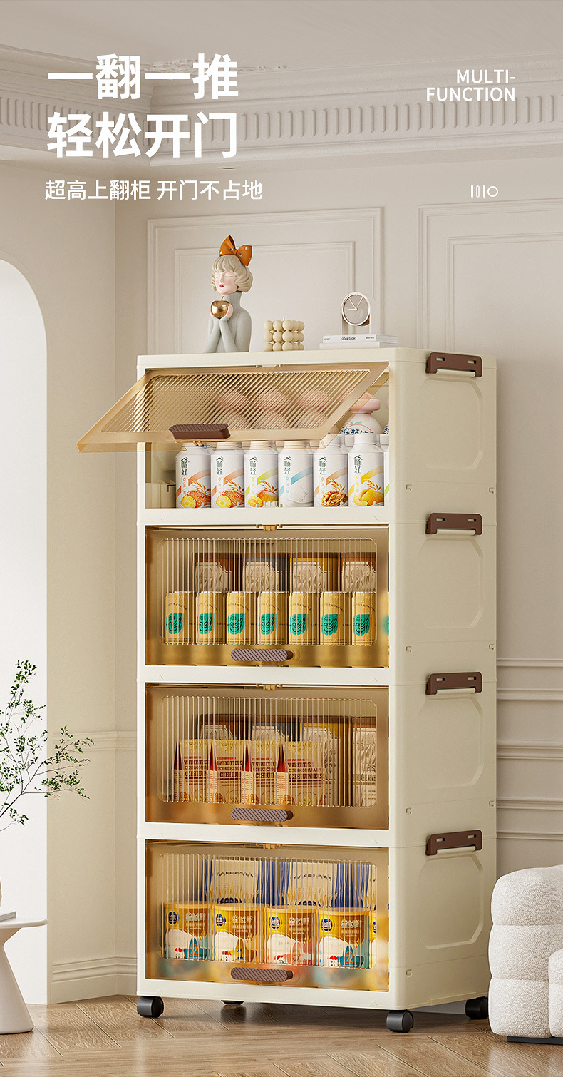 • 48 면 넓은 접이식 플립 캐비닛 유백색 투명 블랙 도어 패널