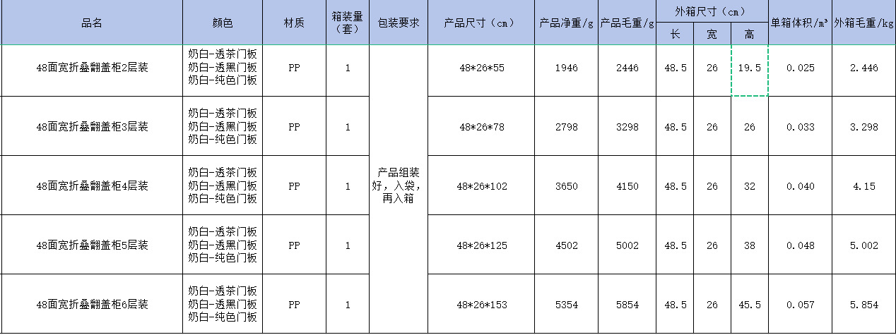 • 48 면 넓은 접이식 플립 캐비닛 유백색-단색 도어 패널