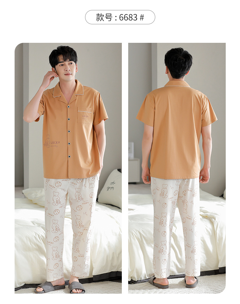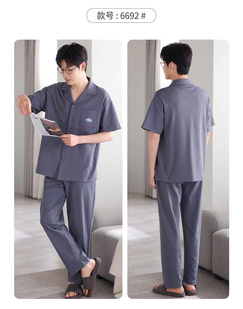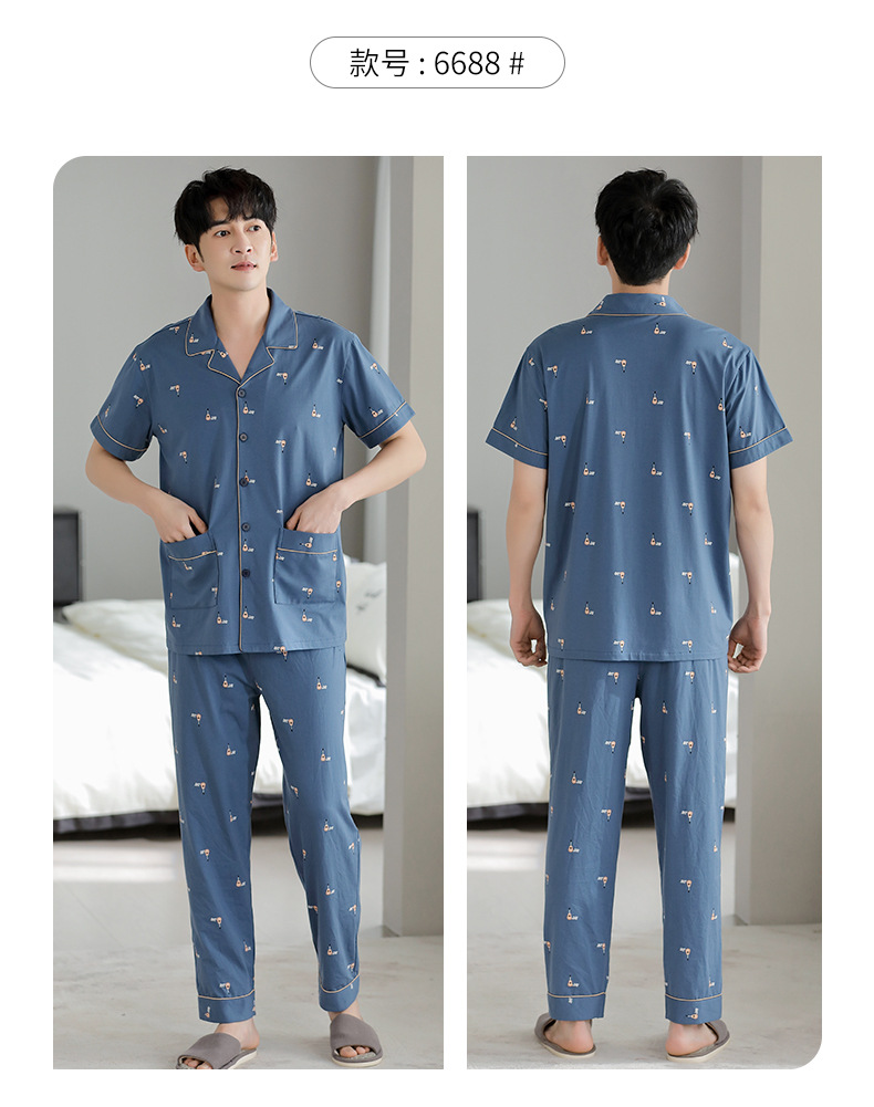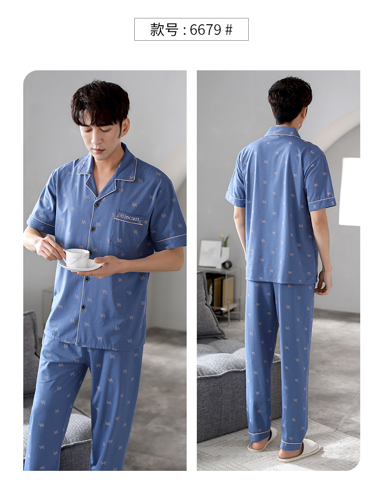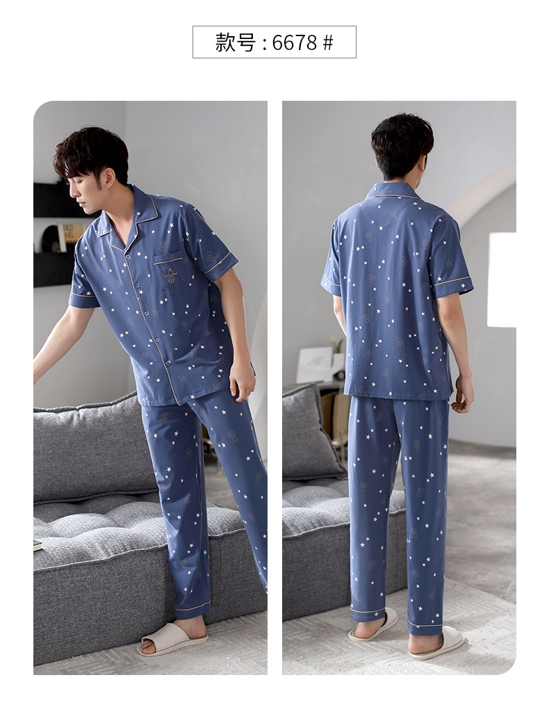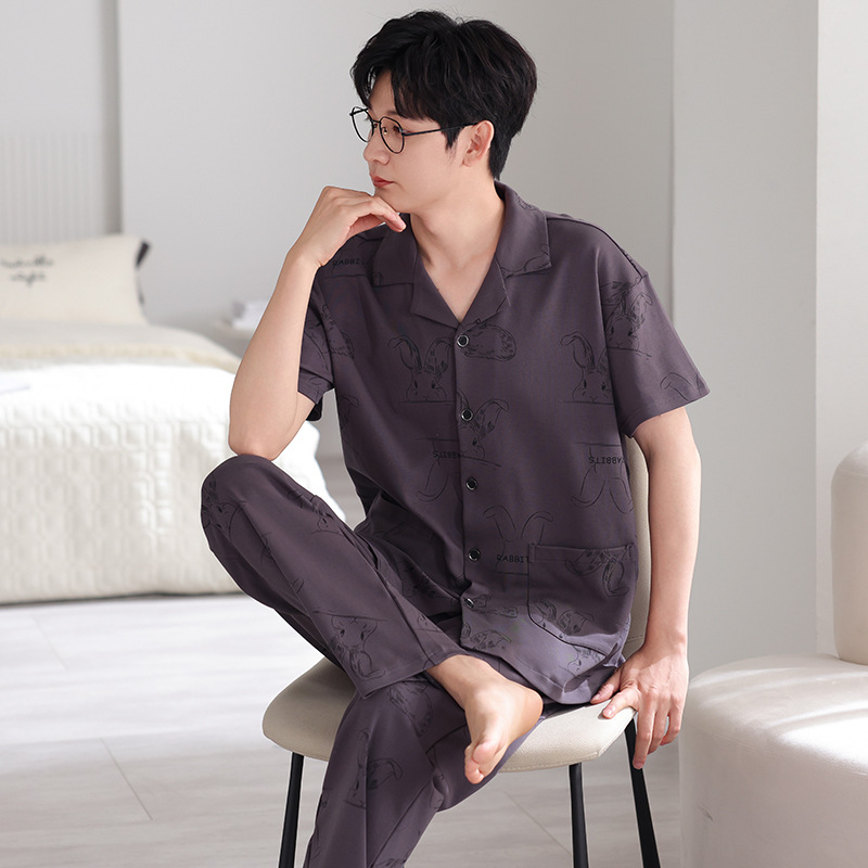 100% 타이트한 면 남성용 옷깃 파자마 한국식 반팔 바지 카디건 플러스 사이즈 10 대 홈웨어 세트스토어 가기
