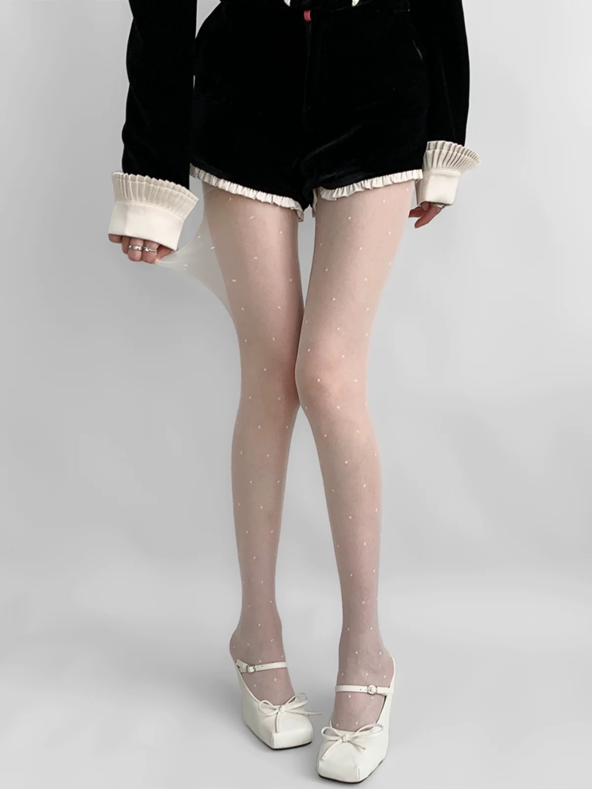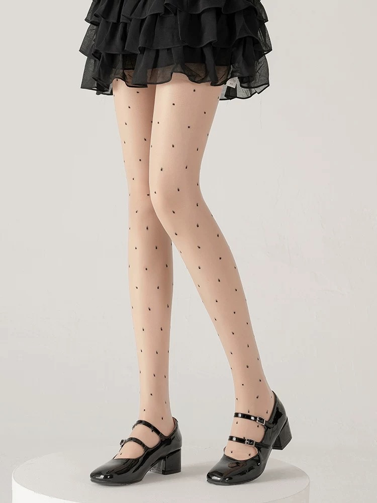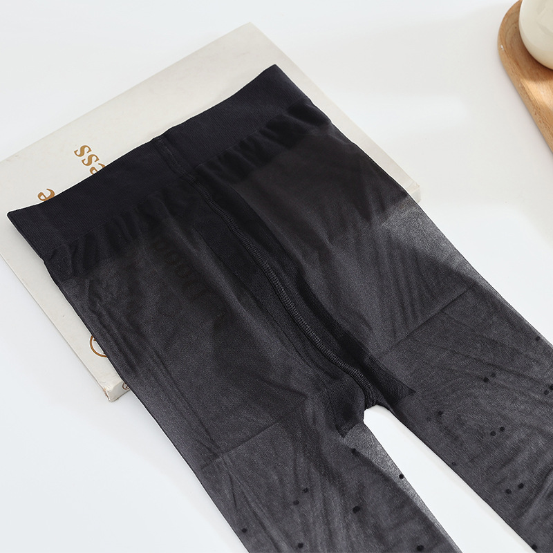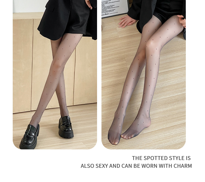 Xi Xuan 새로운 0d 초박형 블랙 실크 섹시한 라이트 레그 아티팩트 폴카 도트 봄과 여름 투명 섹시한 안티 스냅 팬티 스타킹