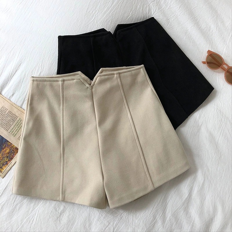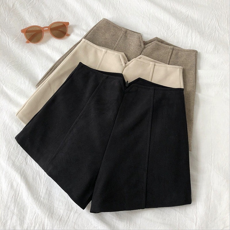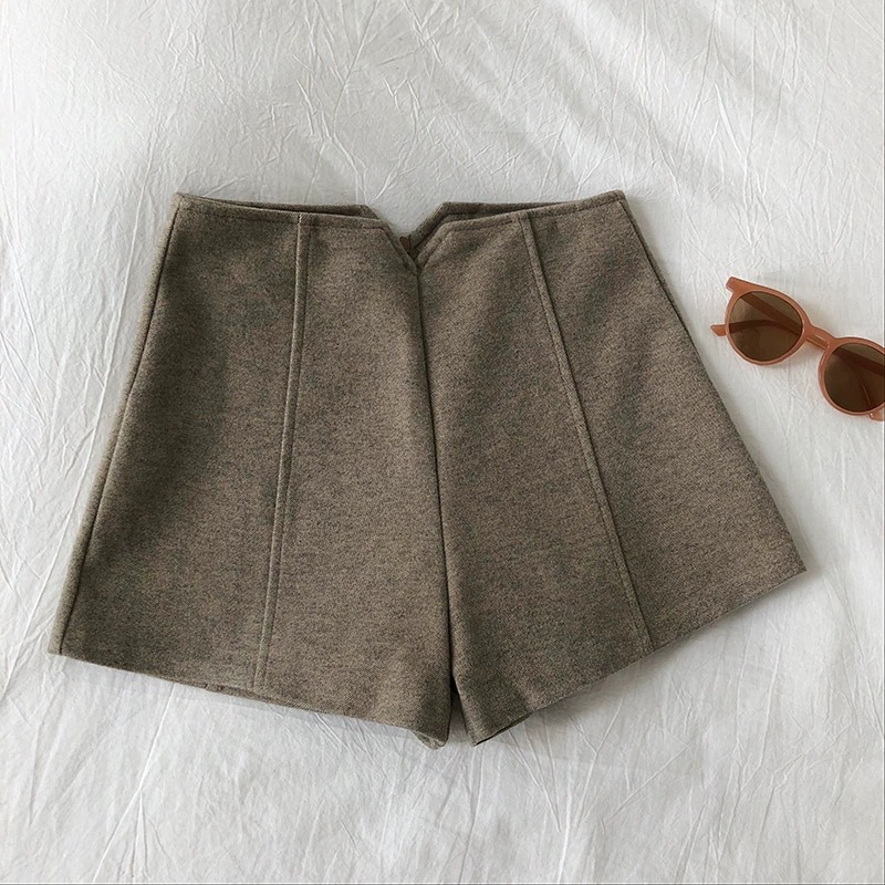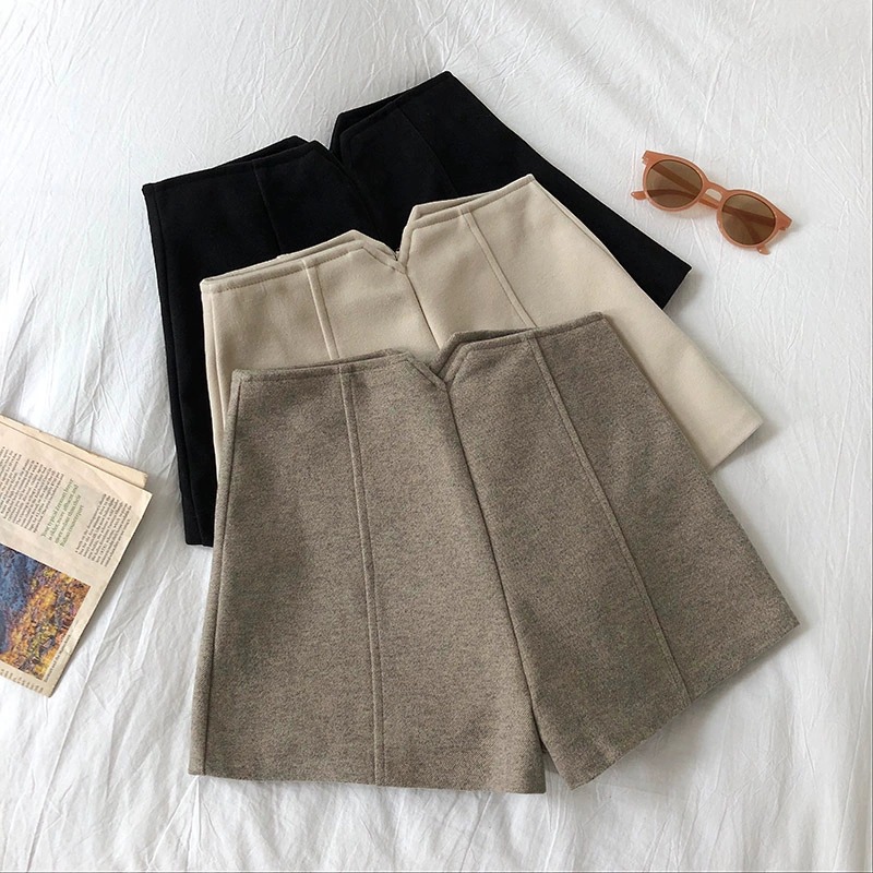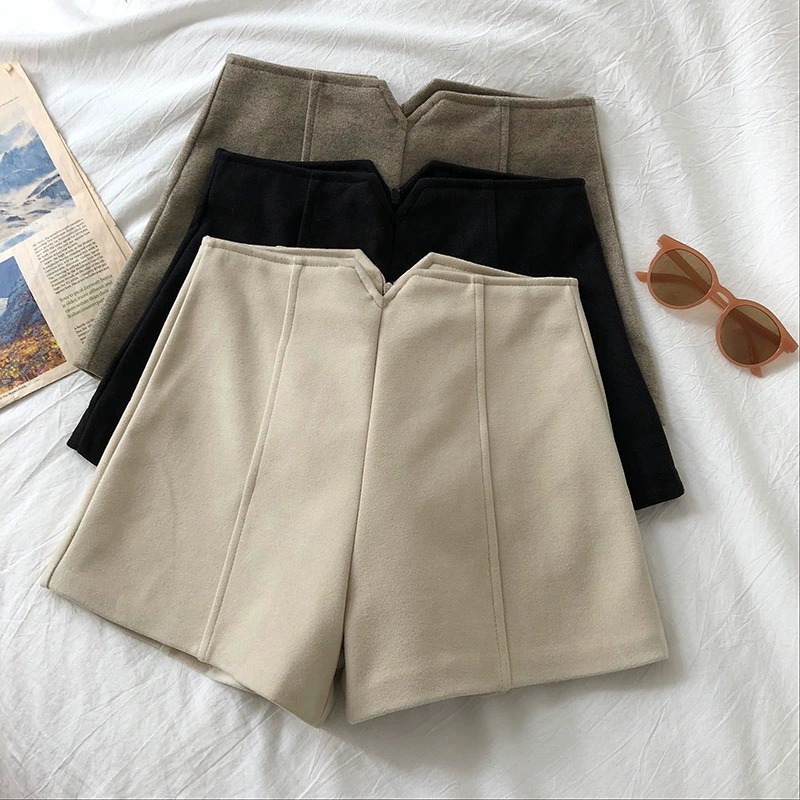 높은 허리 모직 반바지 여성의 가을과 겨울 2023 새로운 한국 스타일 인 학생 캐주얼 슬리밍 다목적 겉옷 A 라인 부츠 바지스토어 가기