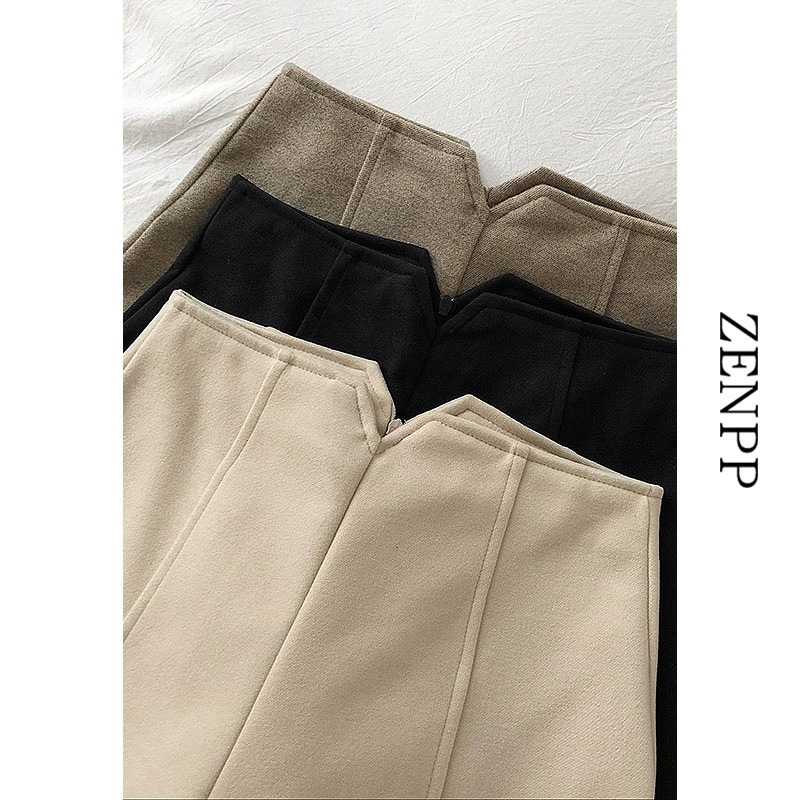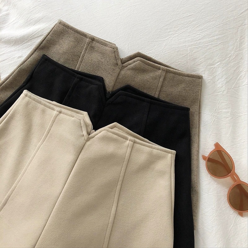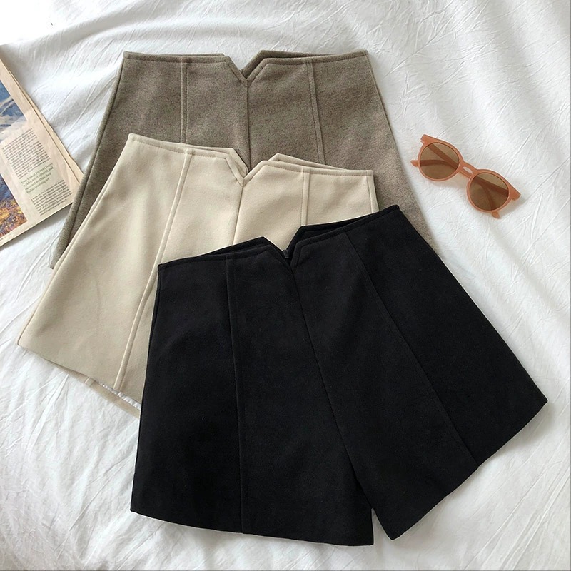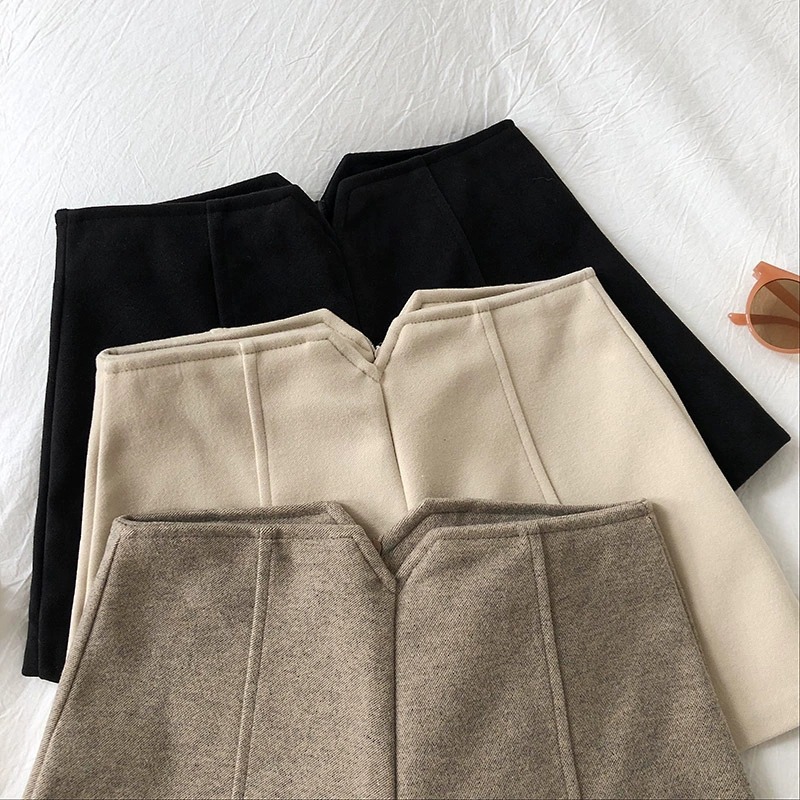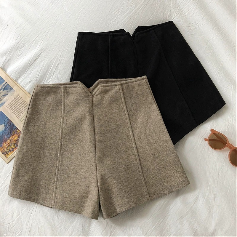 높은 허리 모직 반바지 여성의 가을과 겨울 2023 새로운 한국 스타일 인 학생 캐주얼 슬리밍 다목적 겉옷 A 라인 부츠 바지스토어 가기