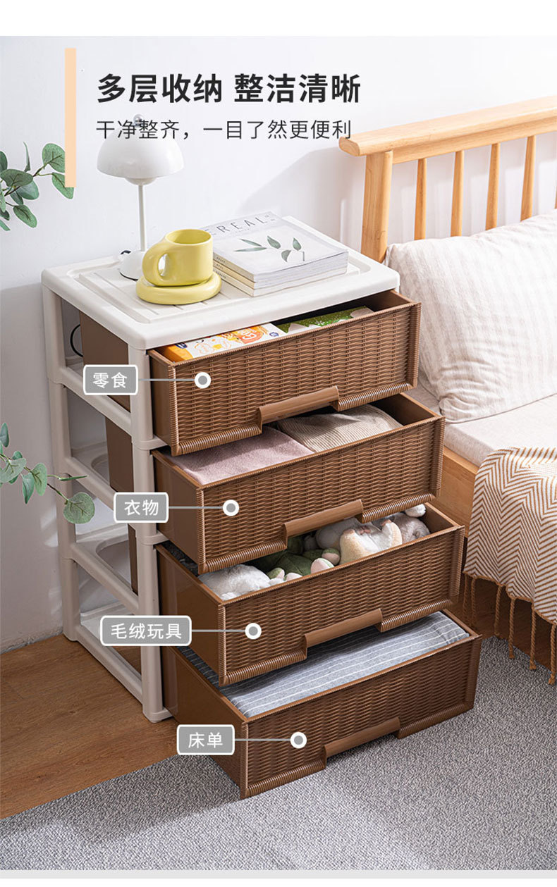 일본식 수납장 가정용 캐비닛 설치 불필요 거실 수납 서랍장 침대 옆장 방진 다층 플라스틱 수납