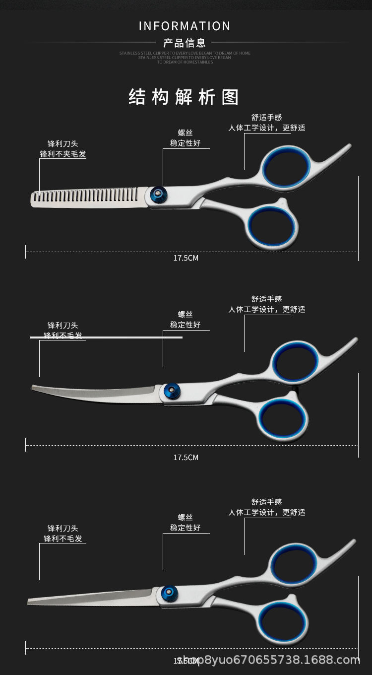 애완동물 가위, 스테인리스 스틸 분할 가위, 개인용 헤어 커팅 도구, 플랫 커팅 치아 가위, 스틸 빗 이발 가위 세트스토어 가기
