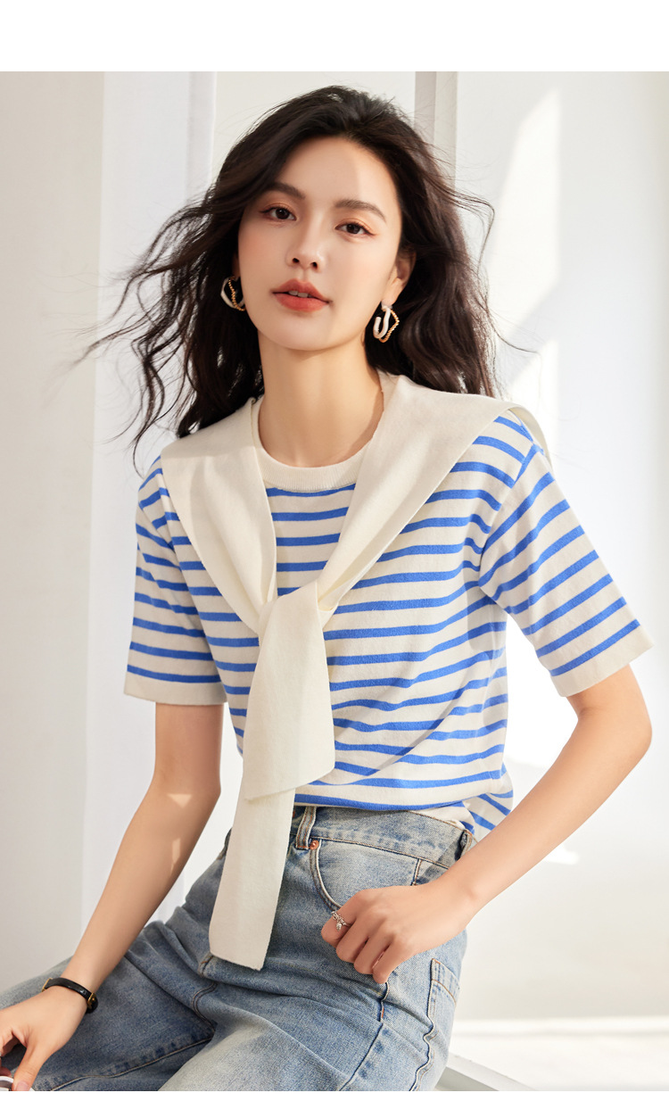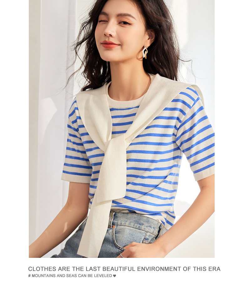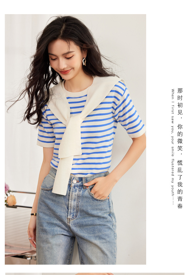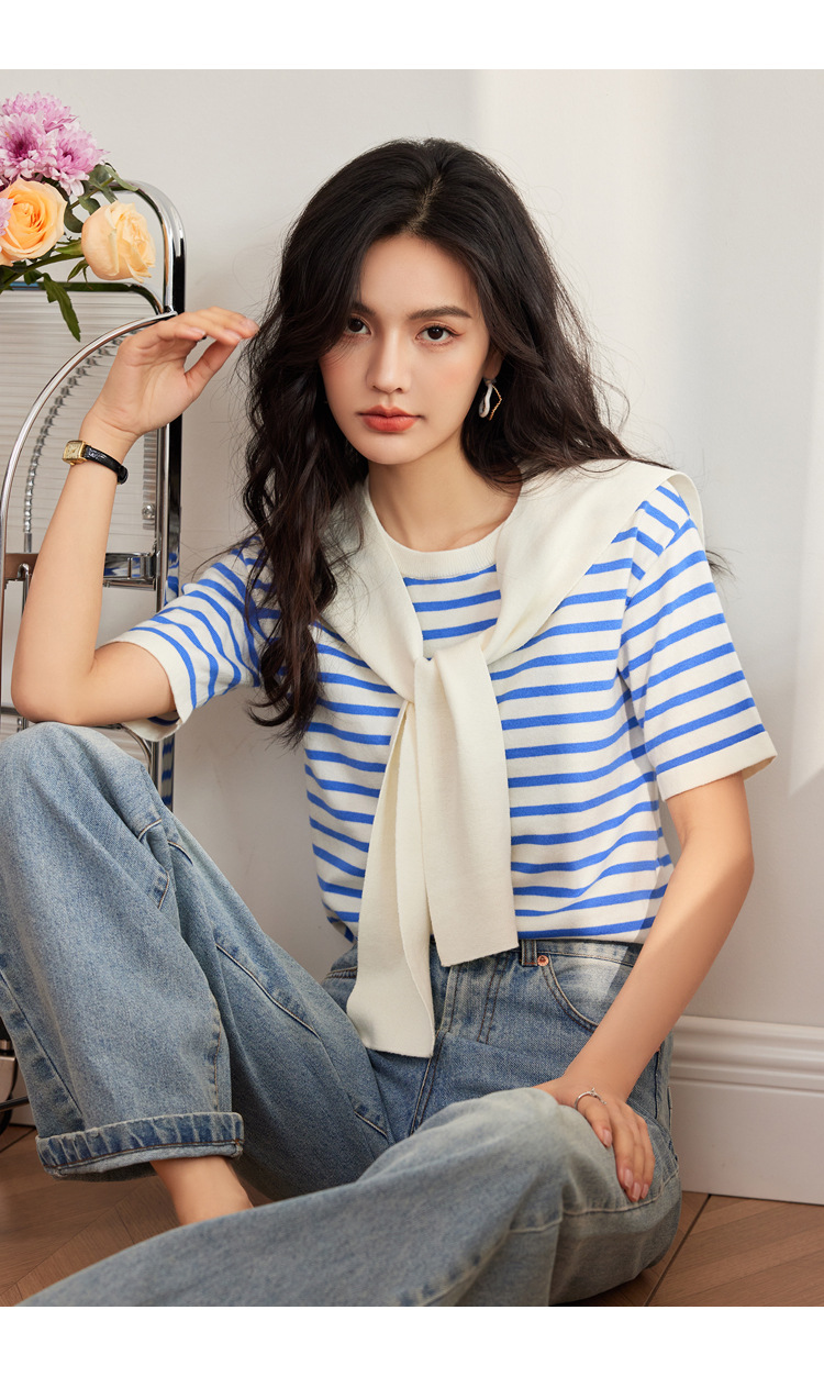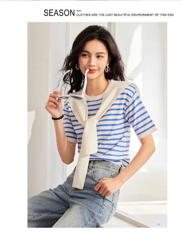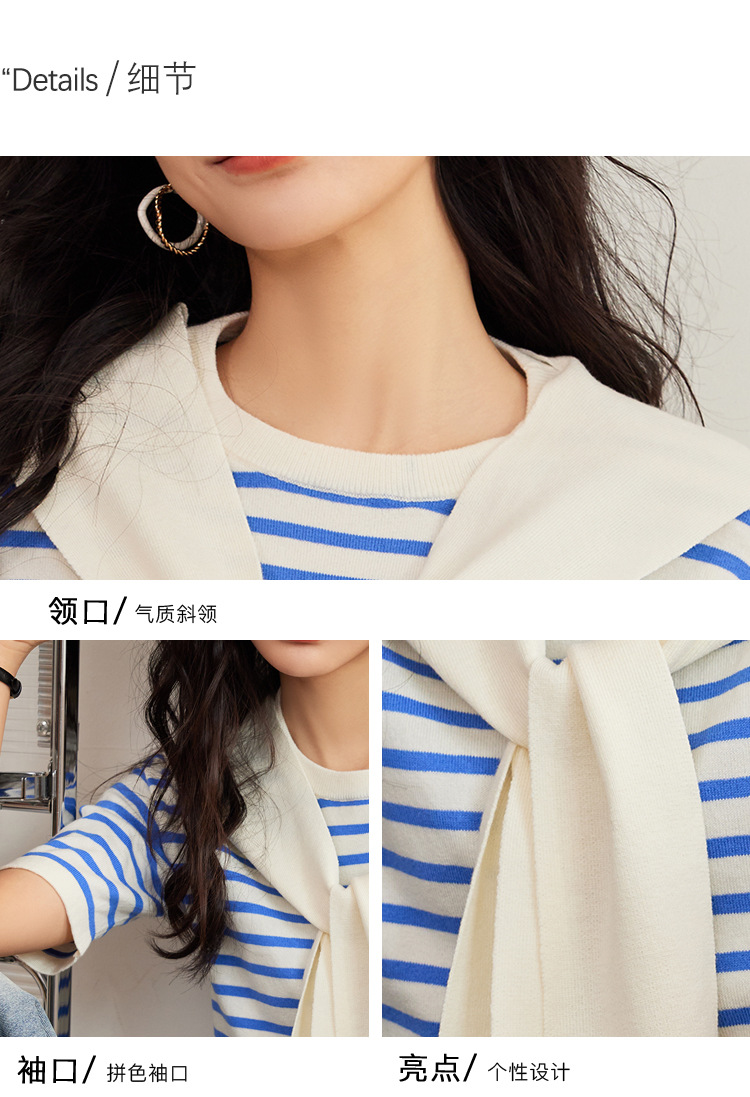 G8503 연령을 줄이는 대학 스트라이프 스웨터 여성 Sea Spirit 셔츠 프랑스 티셔츠 해군 스타일 목도리 투피스 여름복스토어 가기