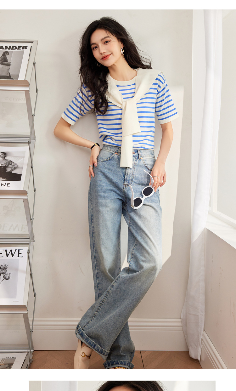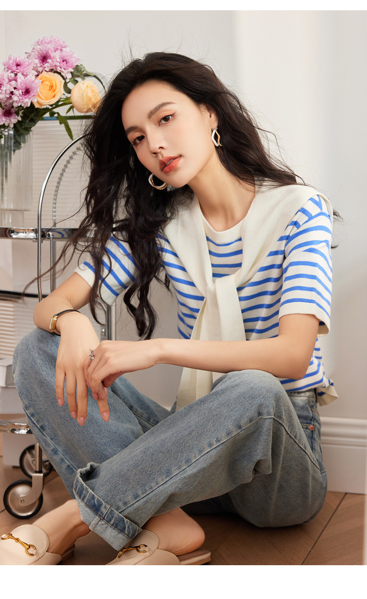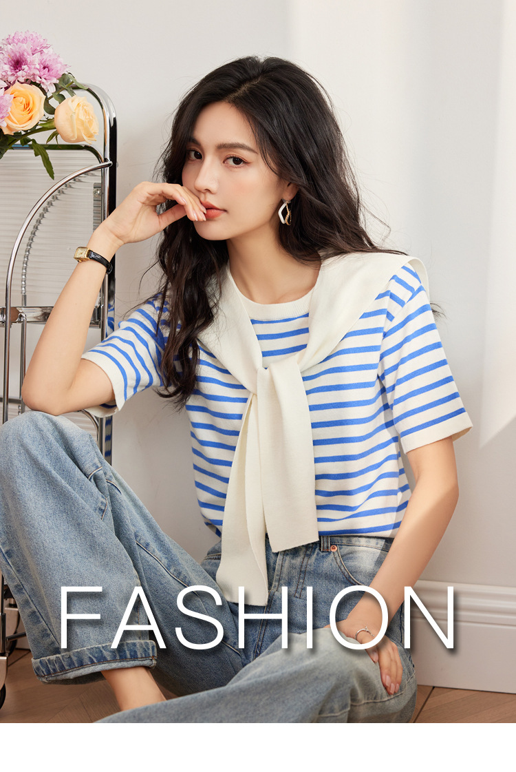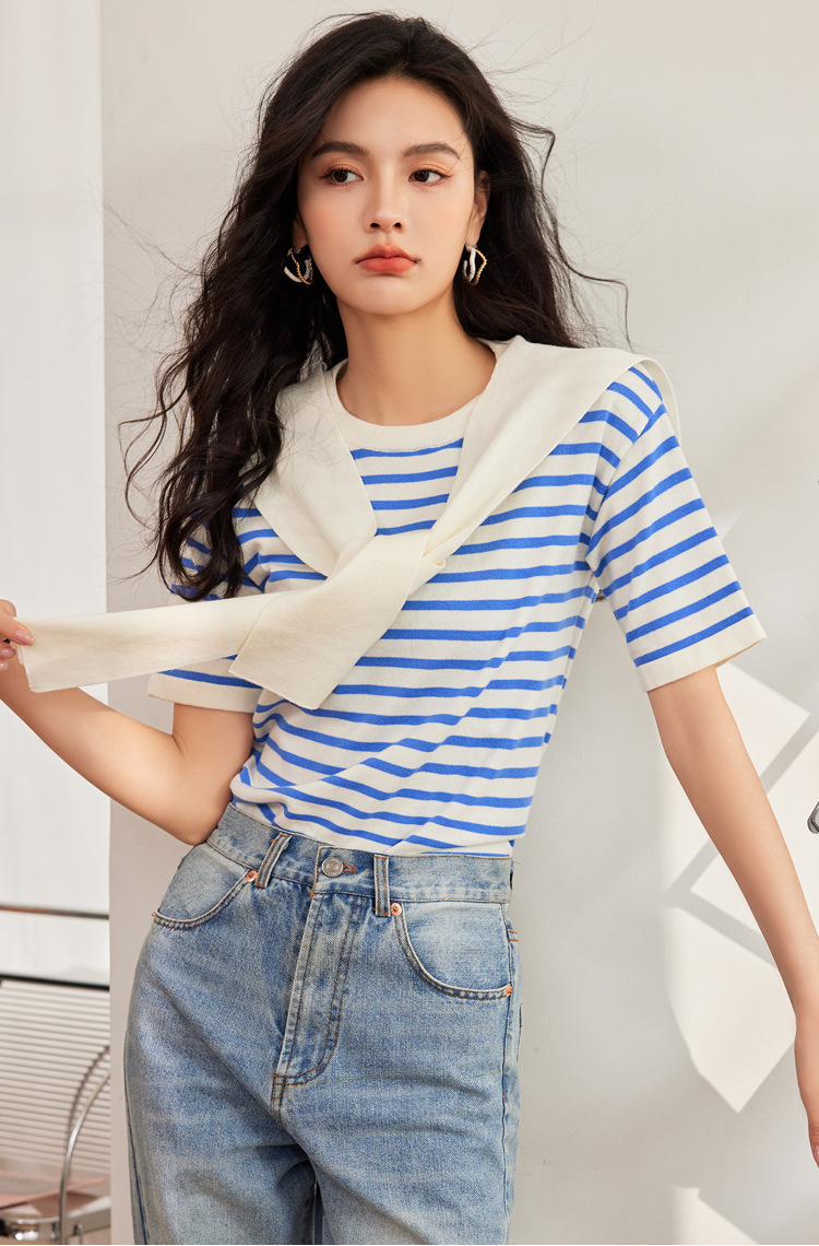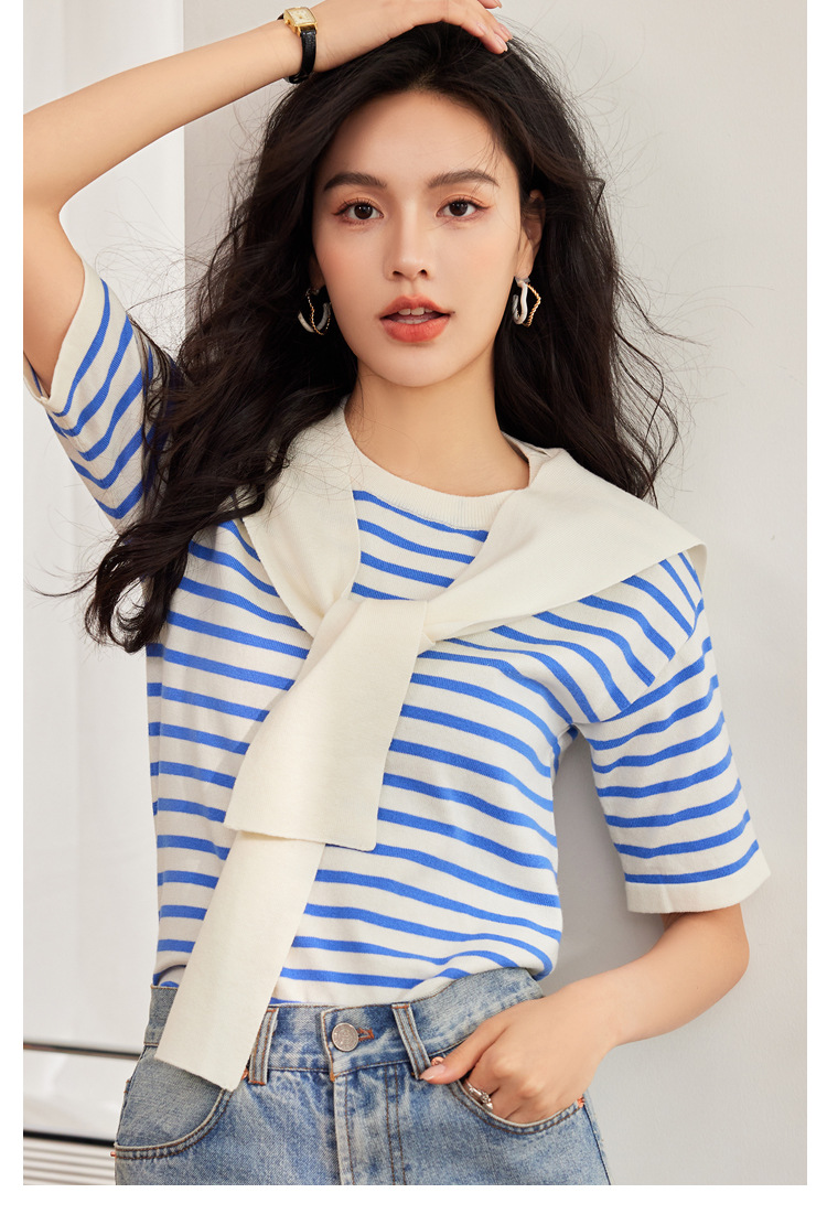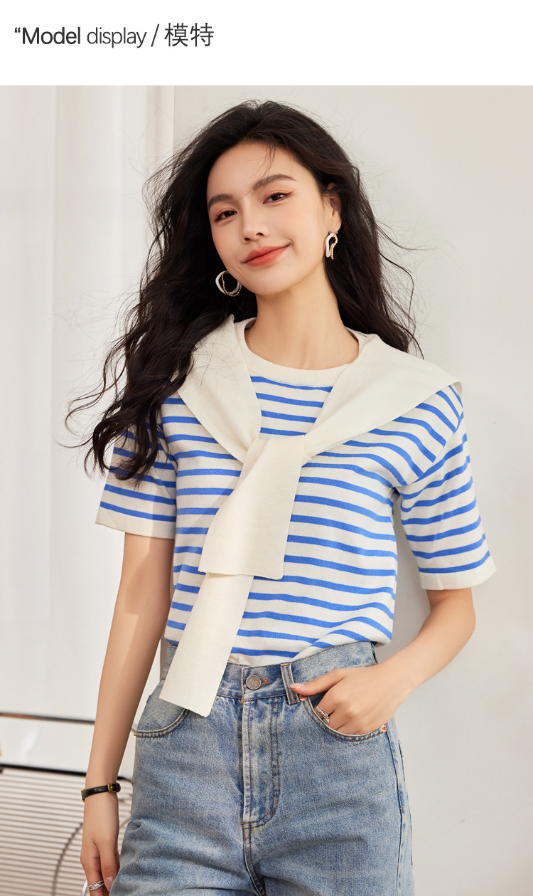G8503 연령을 줄이는 대학 스트라이프 스웨터 여성 Sea Spirit 셔츠 프랑스 티셔츠 해군 스타일 목도리 투피스 여름복스토어 가기