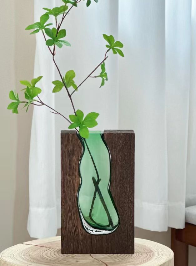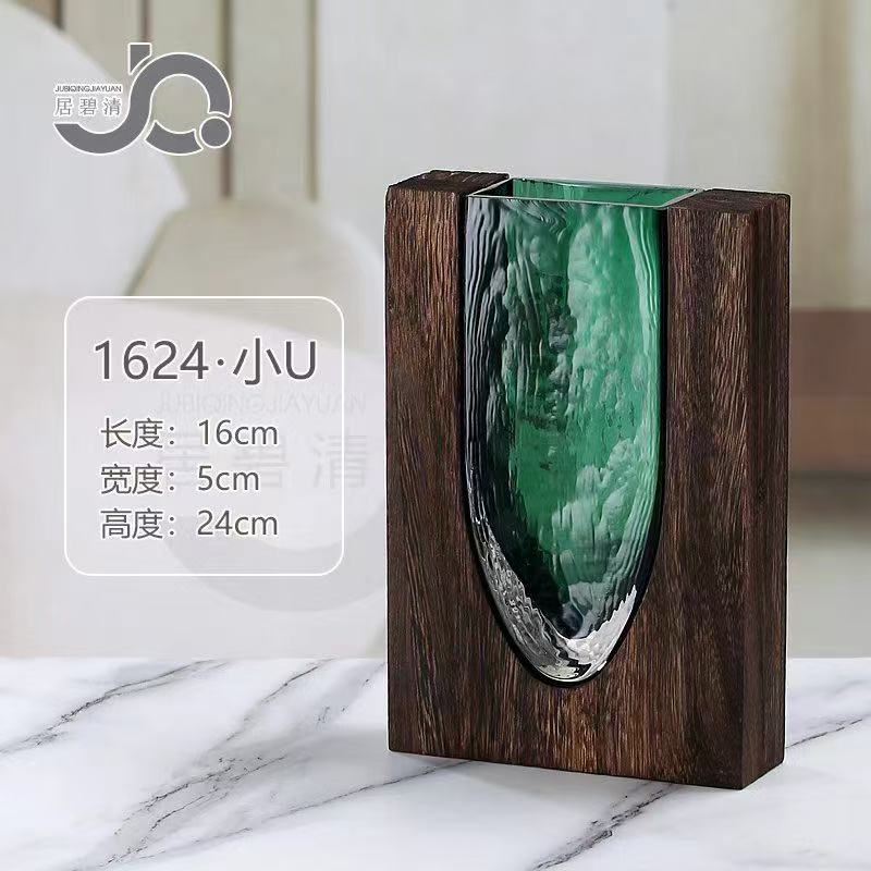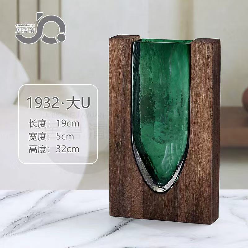 새로운 중국 스타일의 단단한 나무 유리 꽃병 도매 홈 디자이너 장식 홈 호텔 장식 고급 부드러운 장식스토어 가기