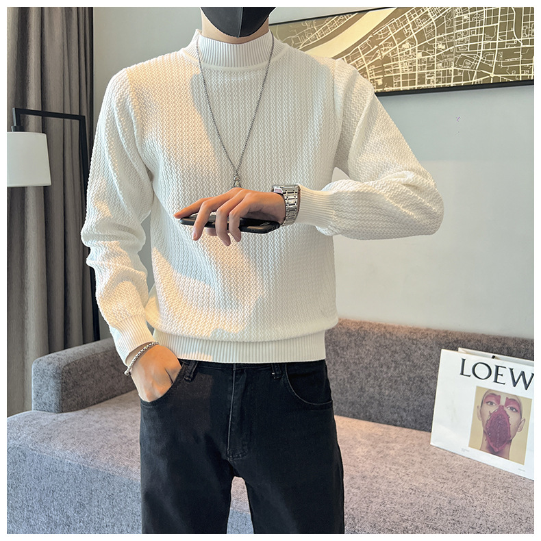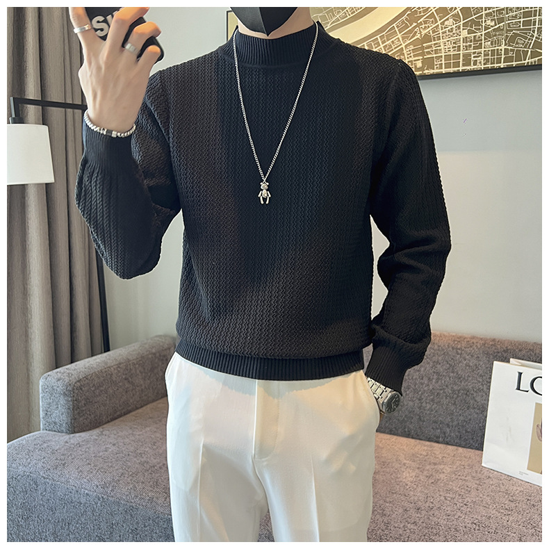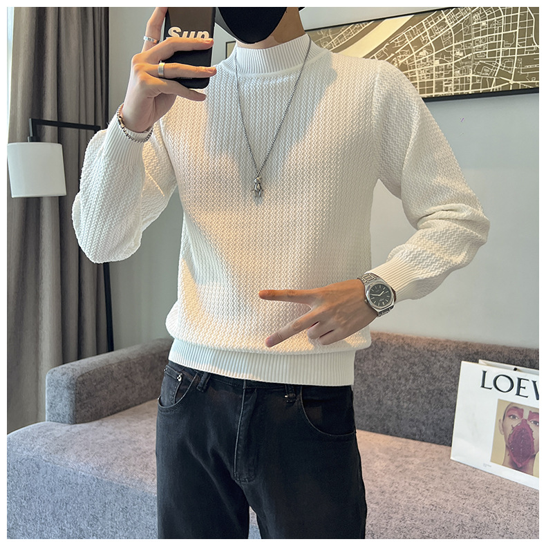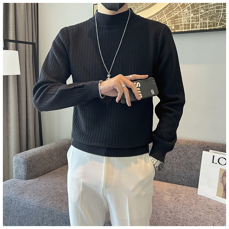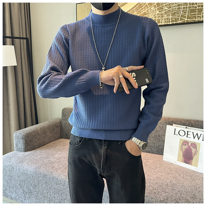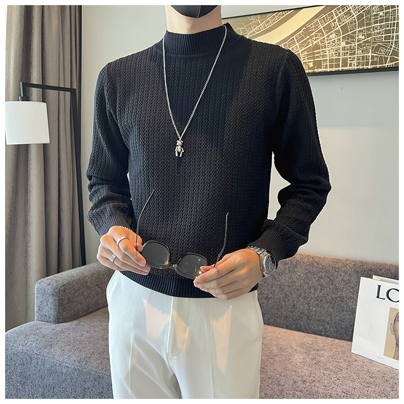 하프 터틀넥 스웨터 남성 가을과 겨울 단색 캐주얼 바닥 스웨터 일본 유행 간단한 잘 생긴 풀오버 스웨터