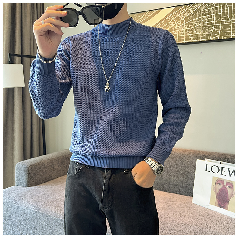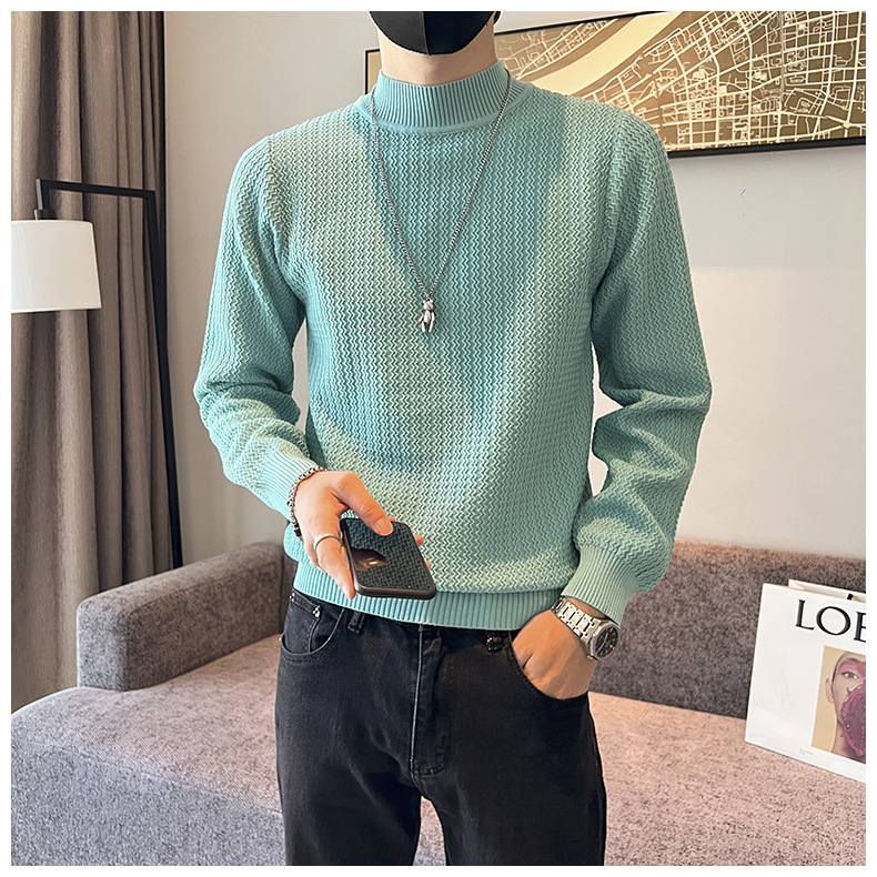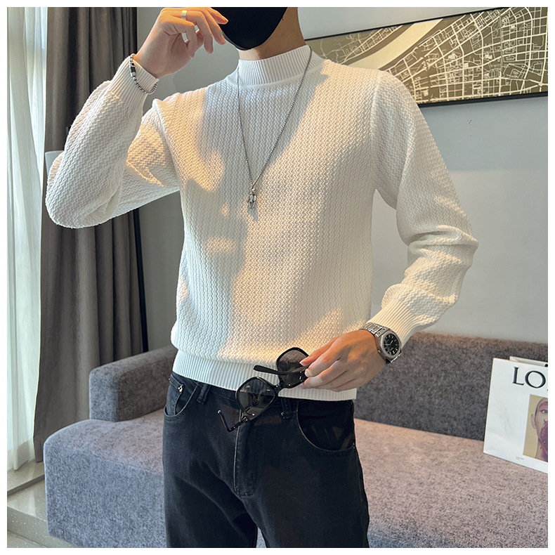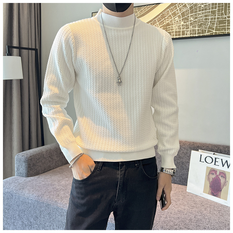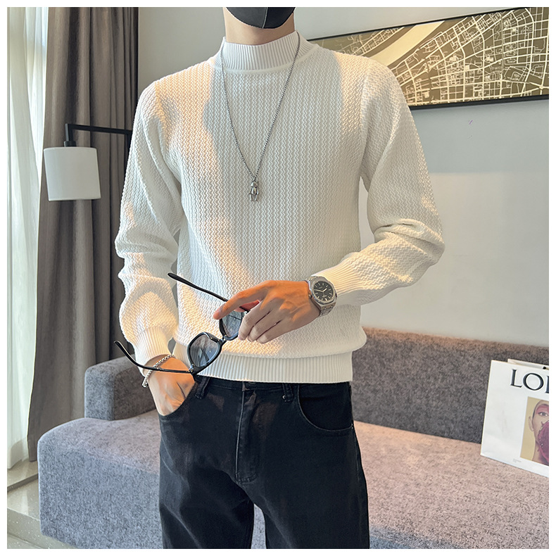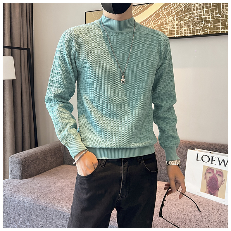 하프 터틀넥 스웨터 남성 가을과 겨울 단색 캐주얼 바닥 스웨터 일본 유행 간단한 잘 생긴 풀오버 스웨터