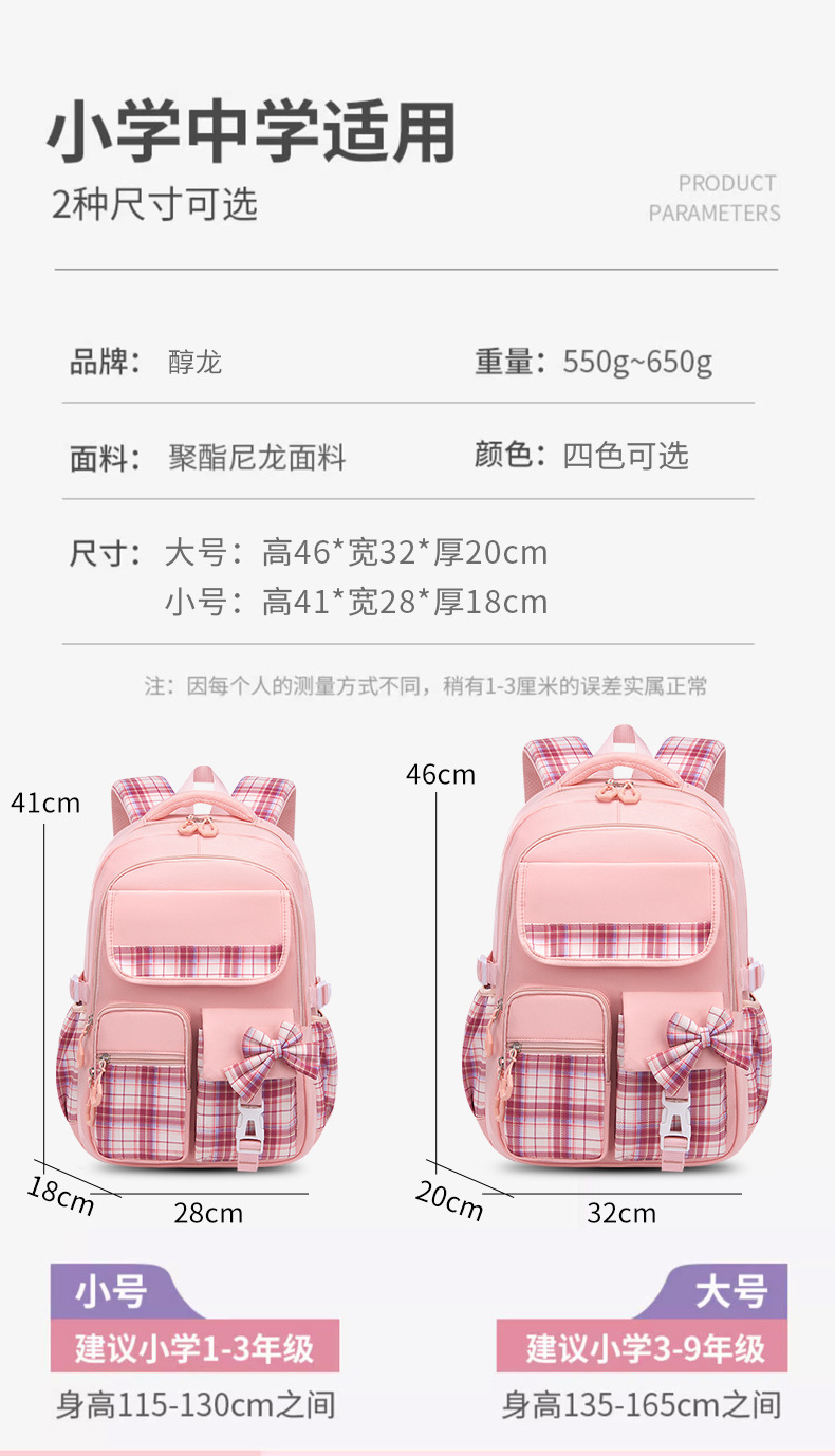초등학생 책가방 여아 1-3-4-5-6학년 어린이 백팩 경량 척추보호 경량화 대용량 재고 도매